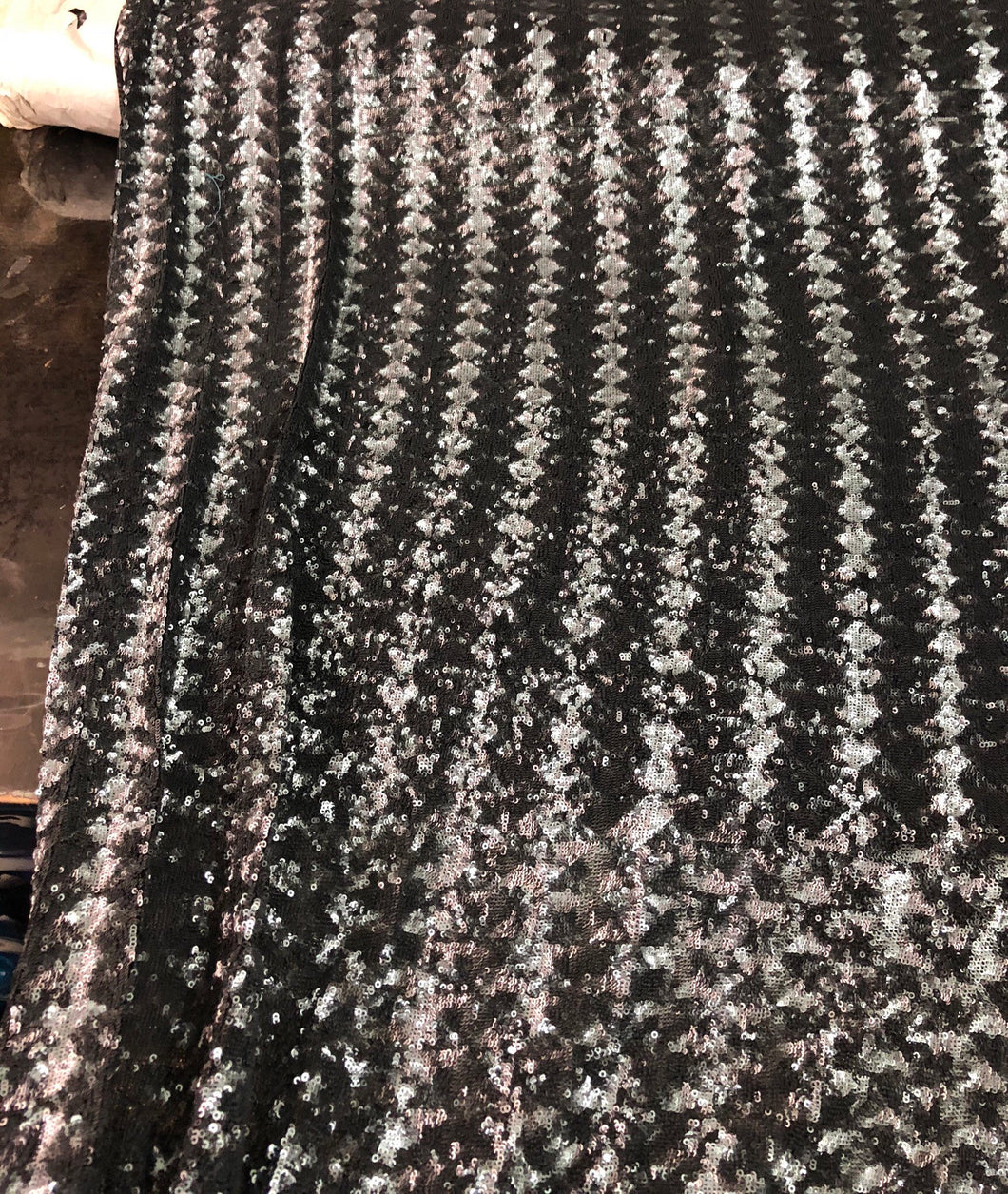 Chevron pattern sequins on stretch mesh fabric 52" wide Beautiful grey sequins fabric sold by the yard