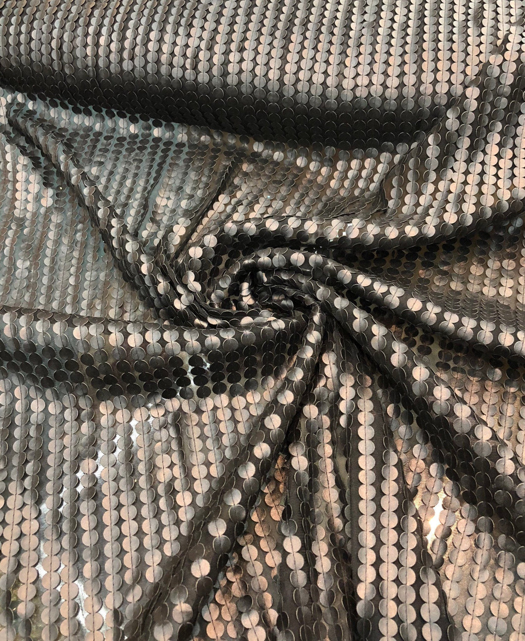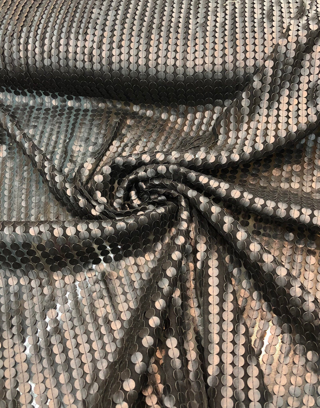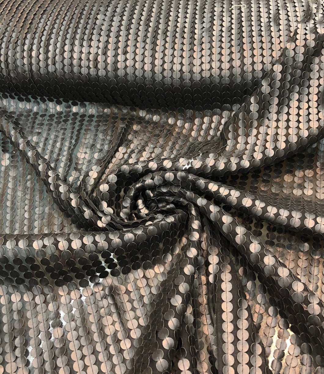 Circle striped pv embilished on mesh fabric beautiful black color 3D pv stripes embroidered on mesh fabric sold by the yard
