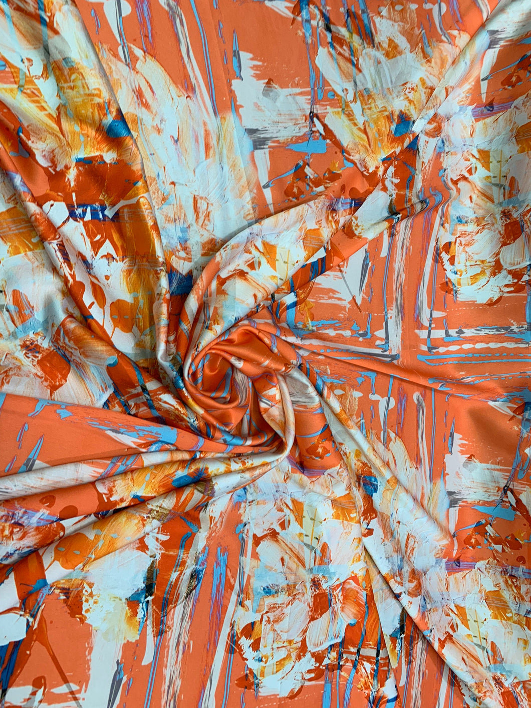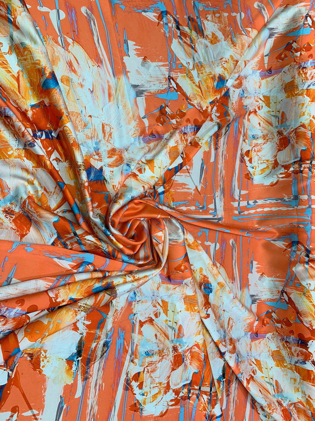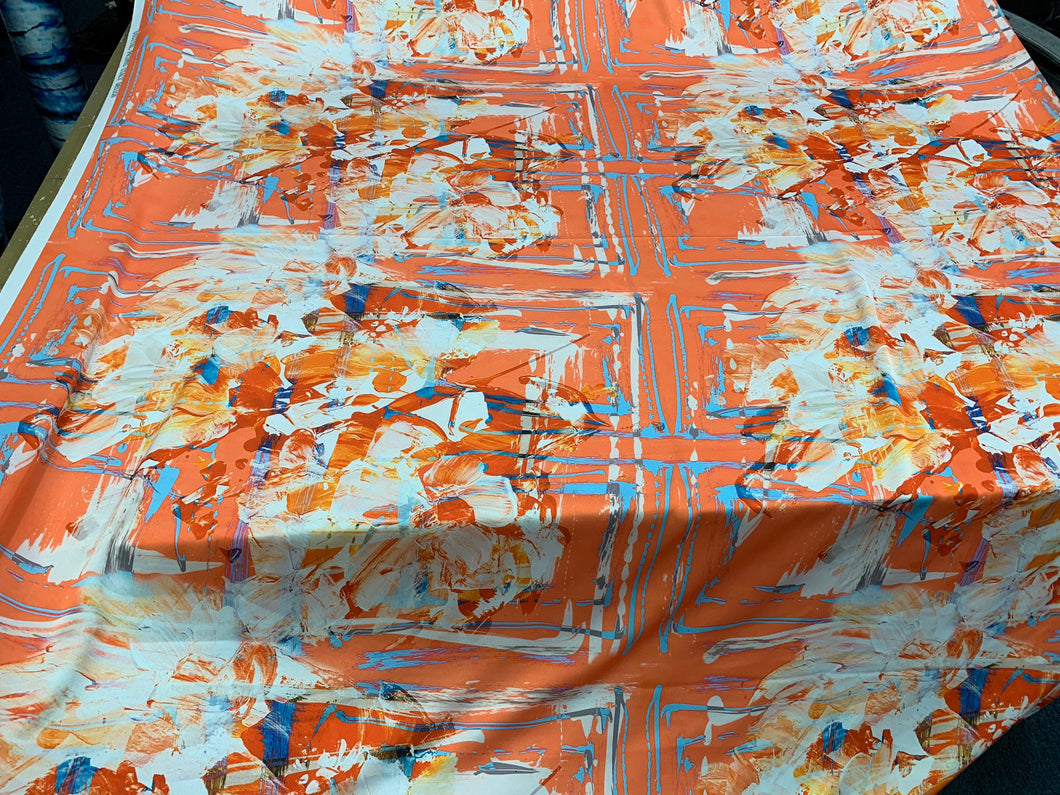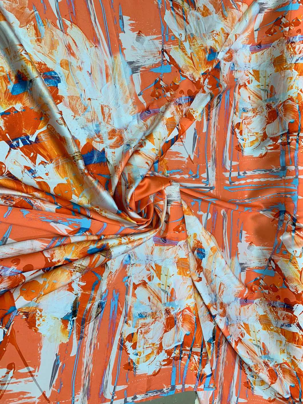 Designer digital printed Charmouse fabric 54â wide. Beautiful coral ivory shades printed fabric sold by the yard. Best use for apparel
