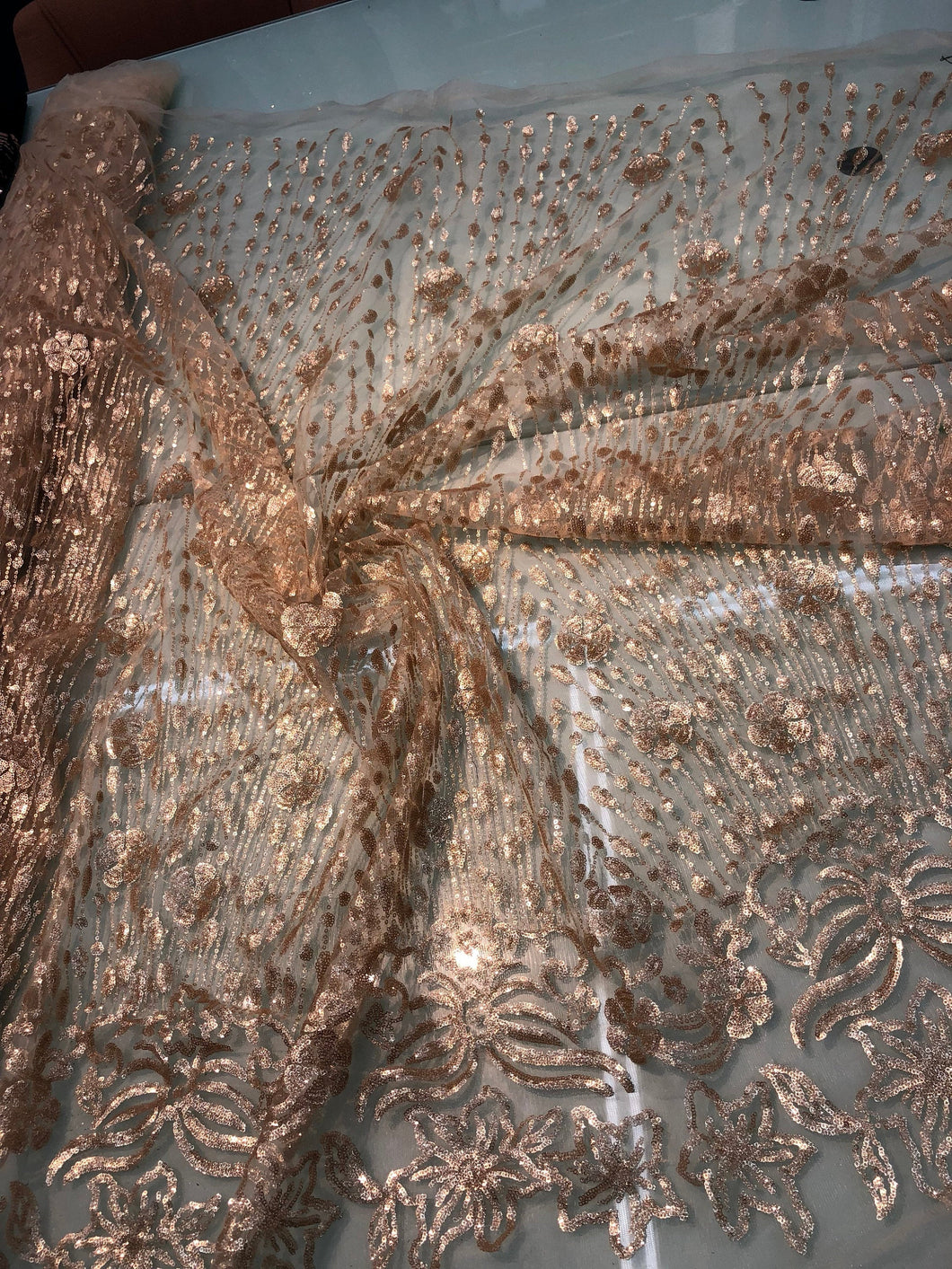 Floral abstract design sequins embroidered on mesh fabric sold by the yard
