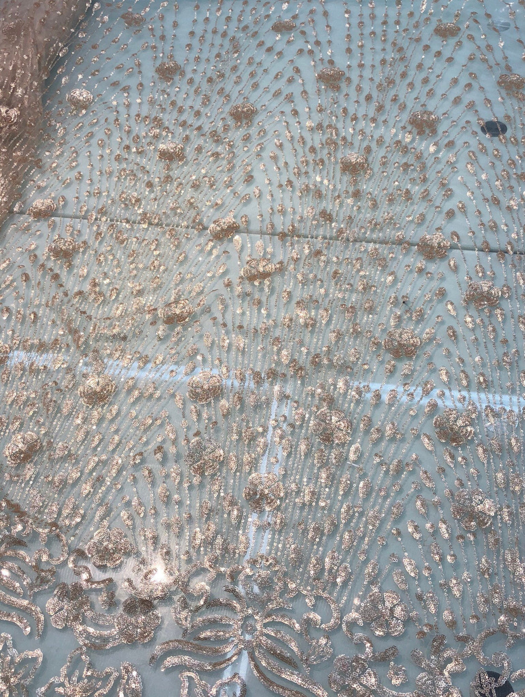 It is super elegant and classy embroidered Sequins on a mesh can be use for dresses, tablecloths, gowns, Skirt, prom dresses, wedding dresses.