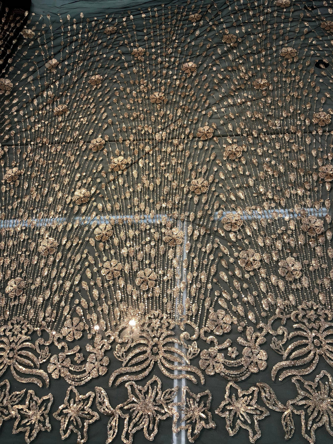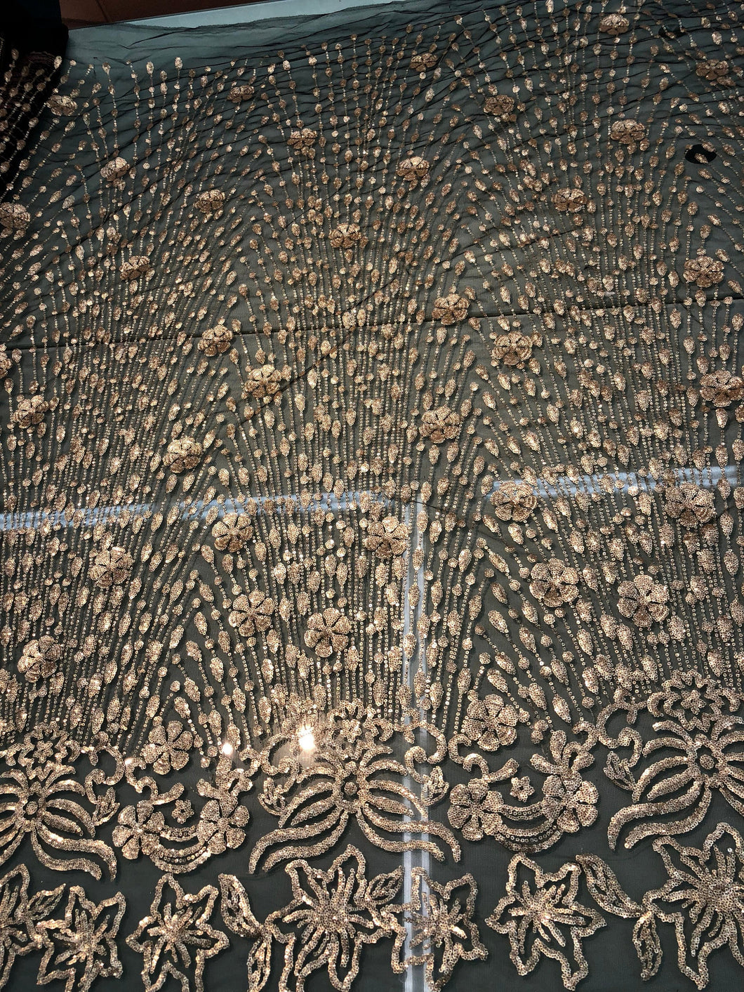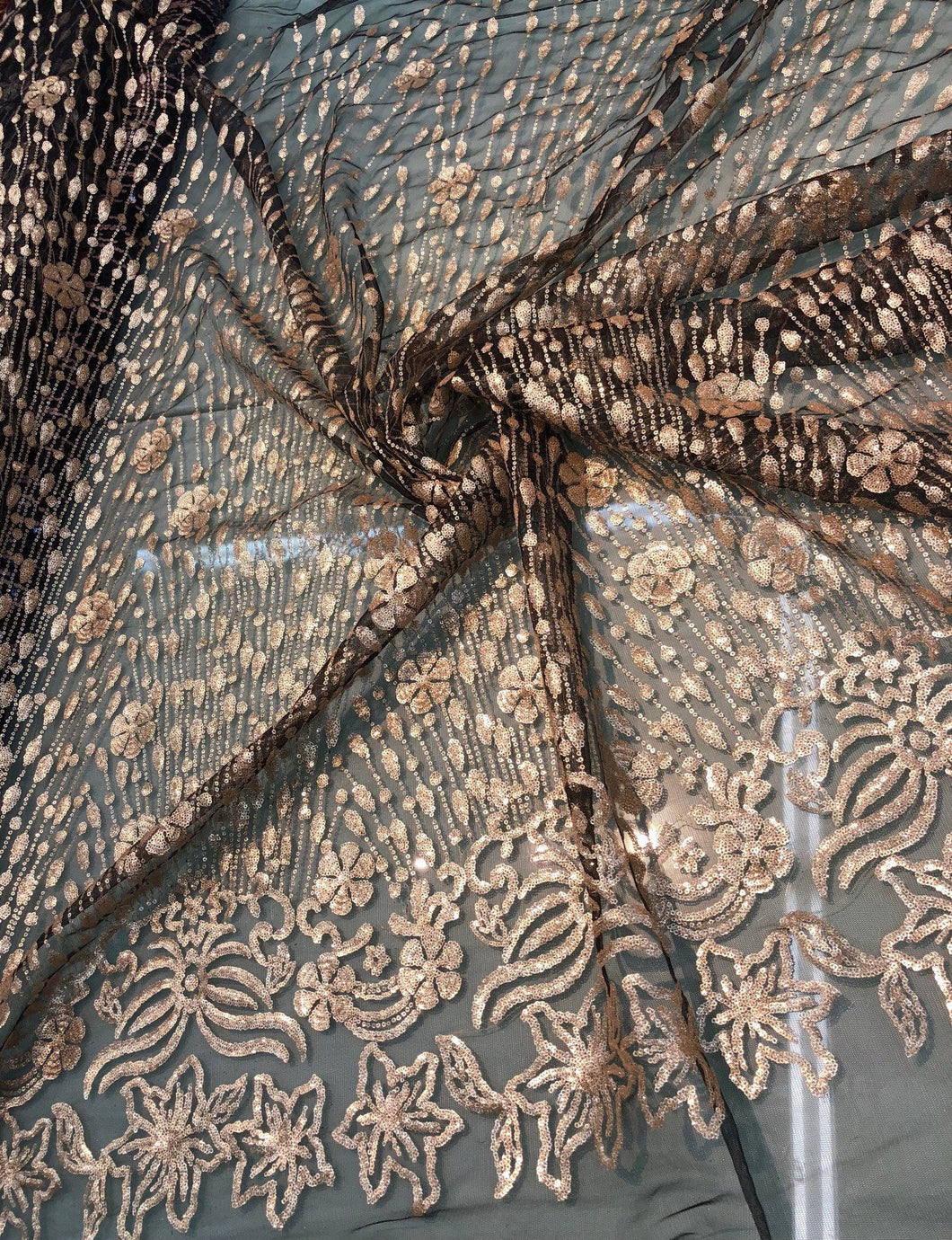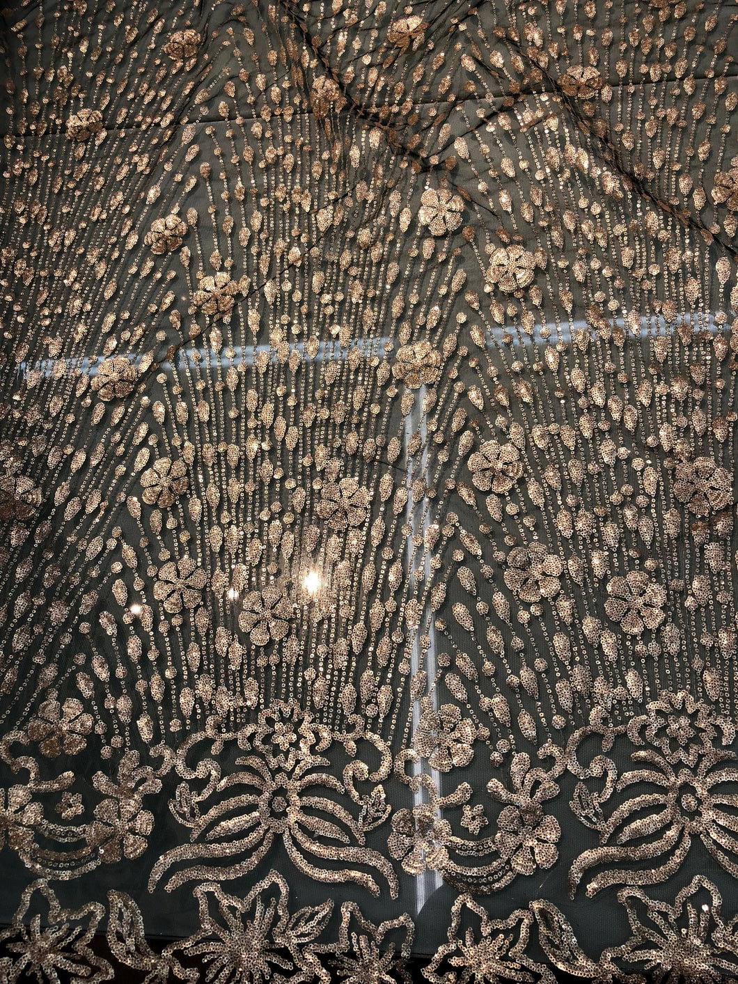 Floral abstract design sequins embroidered on mesh fabric sold by the yard