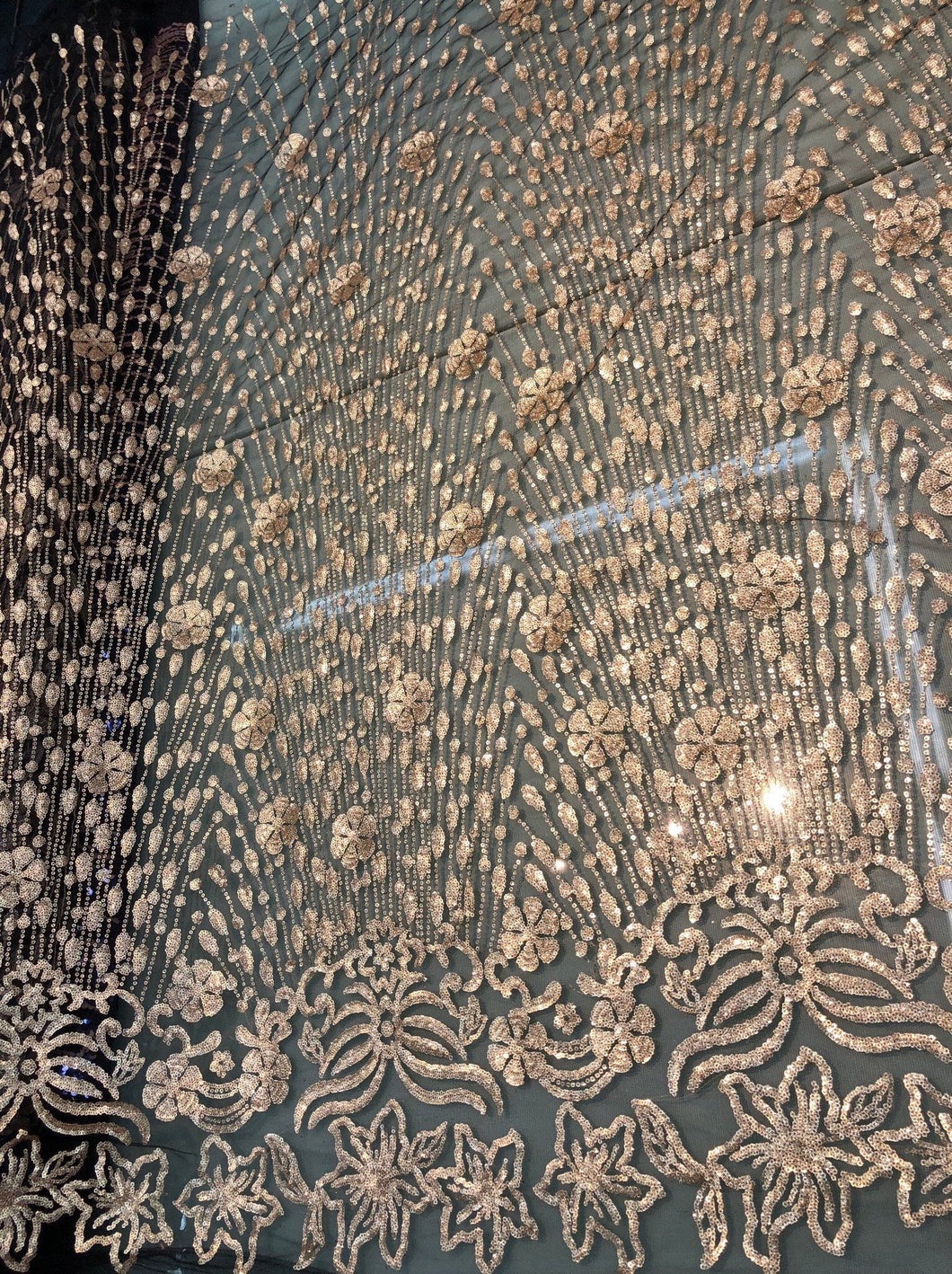 It is super elegant and classy embroidered Sequins on a mesh can be use for dresses, tablecloths, gowns, Skirt, prom dresses, wedding dresses.