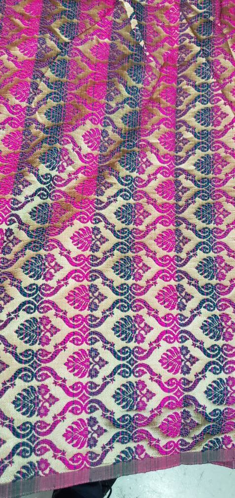 Jaquard brocade 44" wide Beautiful fusia pink abstract design brocade fabric sold by the yard Useable for apparel and interior decore like pillow cases, table runner, curtain or much more..... It is best fabric for theatrical costumes.
