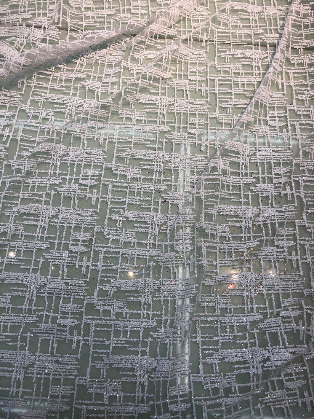 Glitter Metallic tule fabric useable for apparel: Mini Dress, long dress, prom dress, brides mates dresses, party decorations etc & much more...... 58”wide sold by the yard Color: White