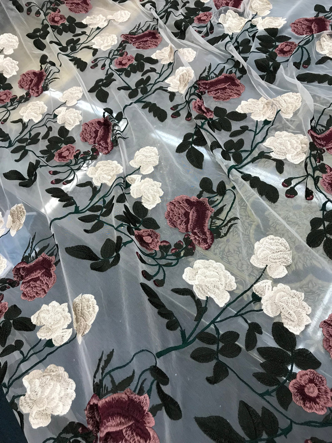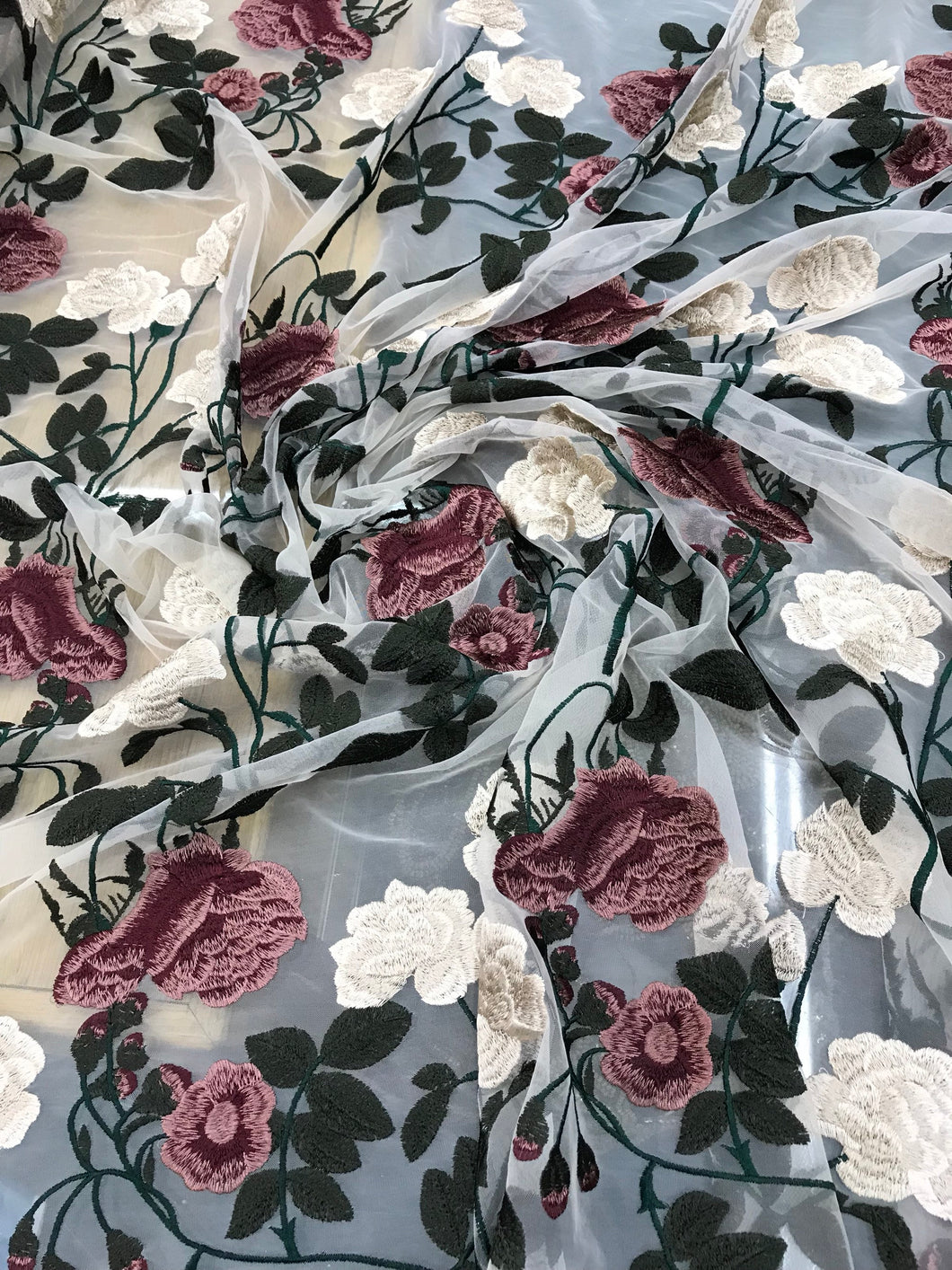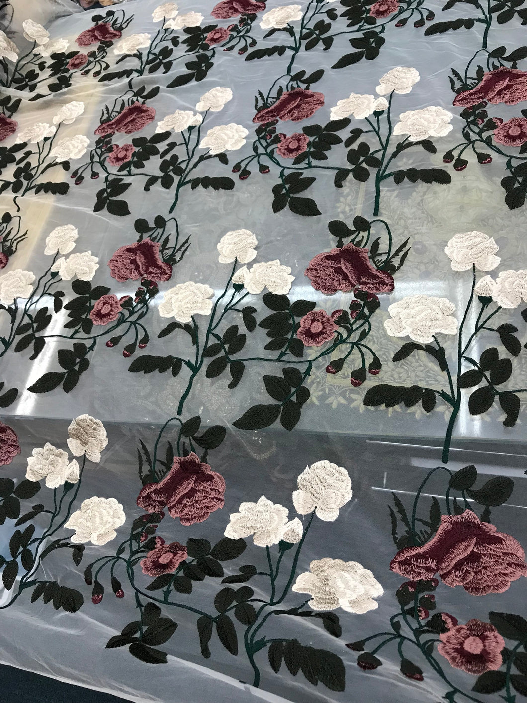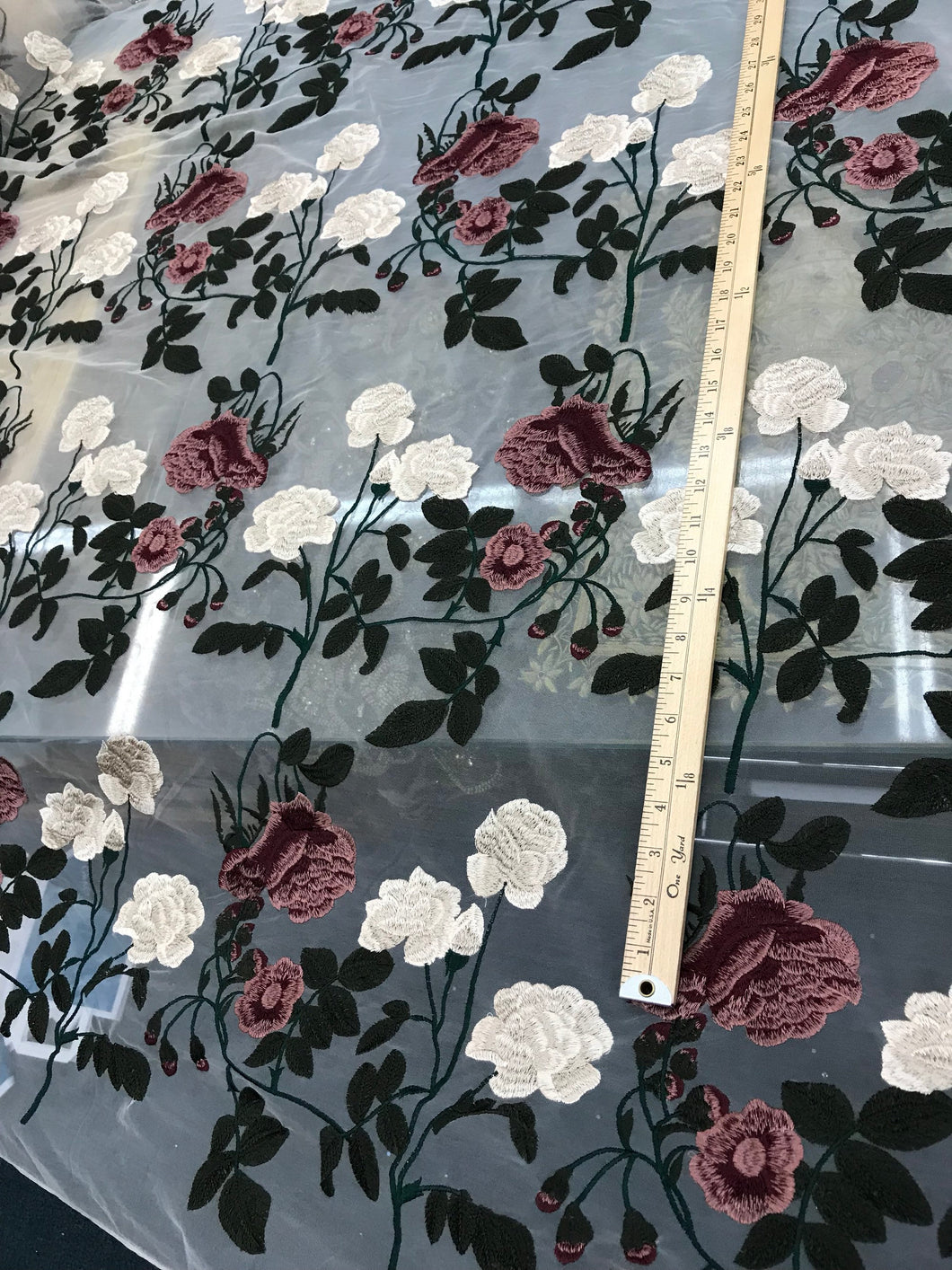 Italian designer fabric Floral embrodery on tulle fabric. Price for One Yard 50" wide. Usable for apparel,accessories and interior designi