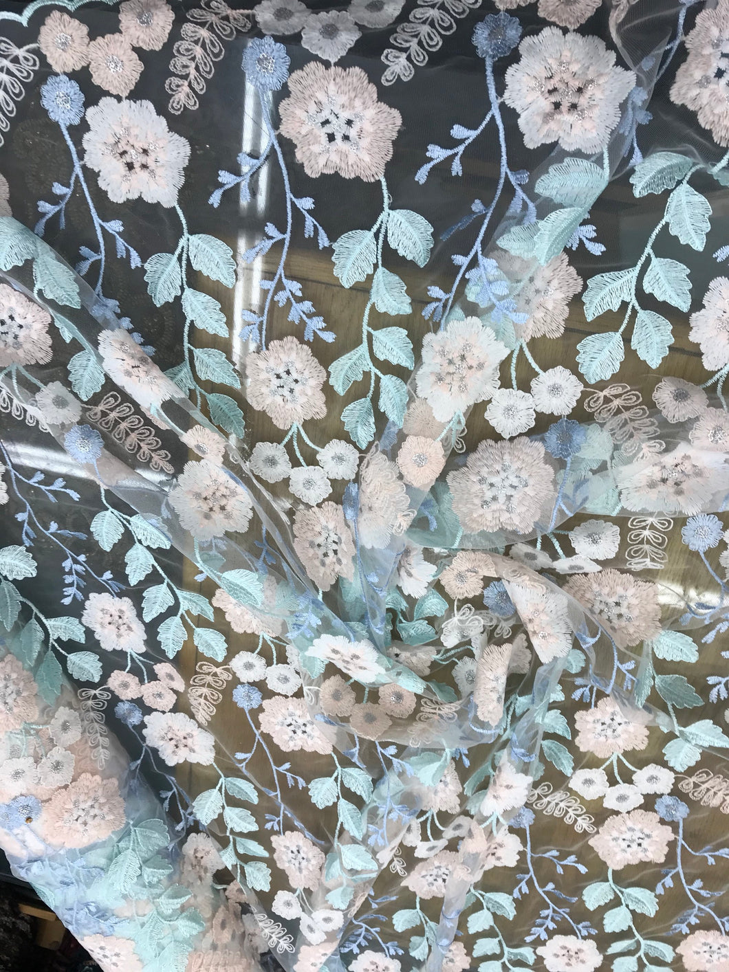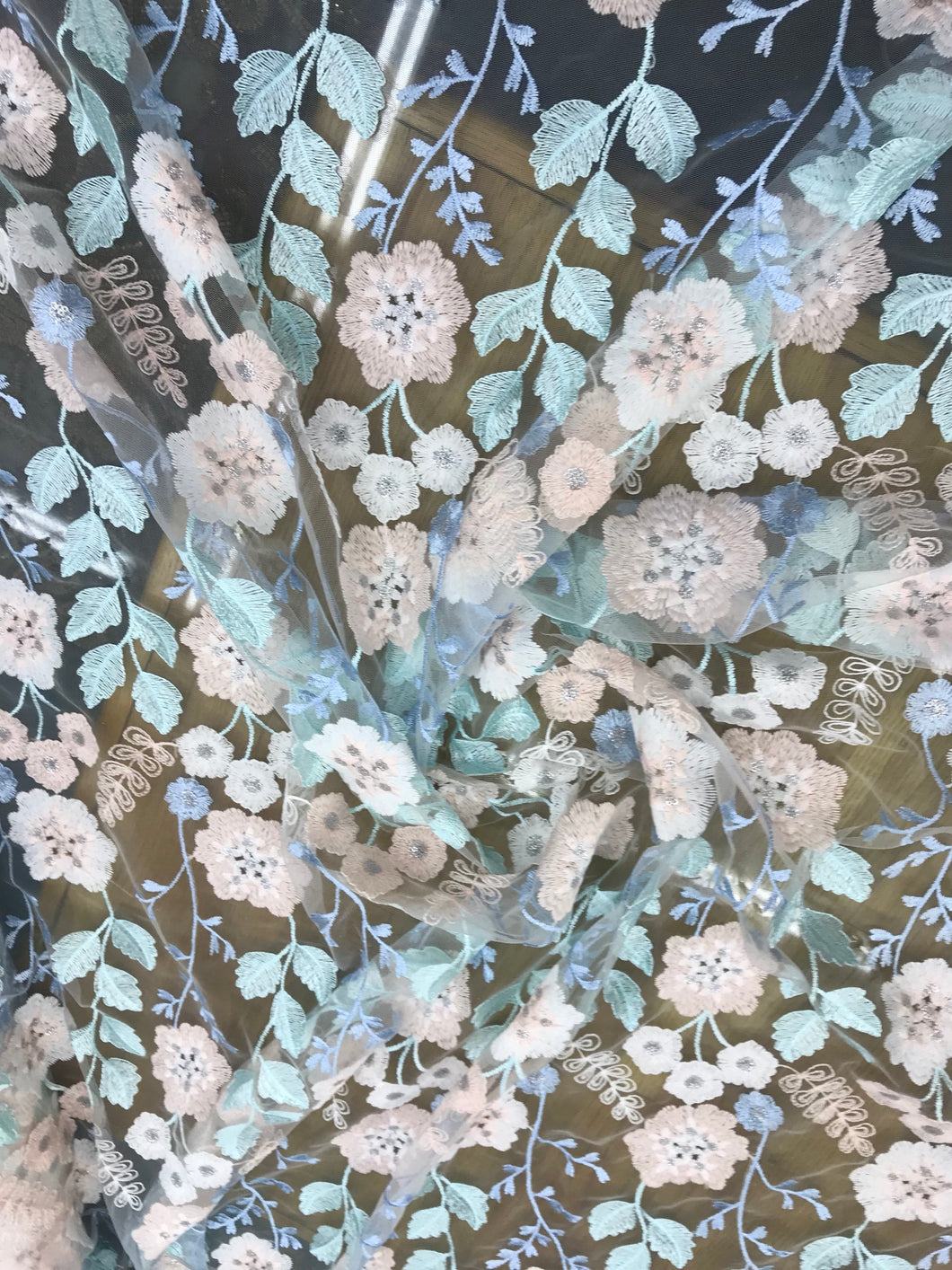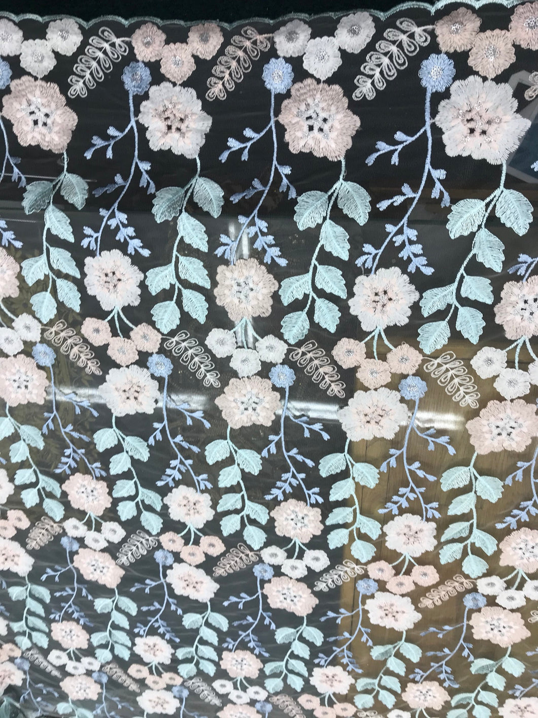 Italian designer  fabric Floral embroidery  on tulle fabric.  Price for One Yard 50" wide. Usable for apparel,accessories and interior desig
