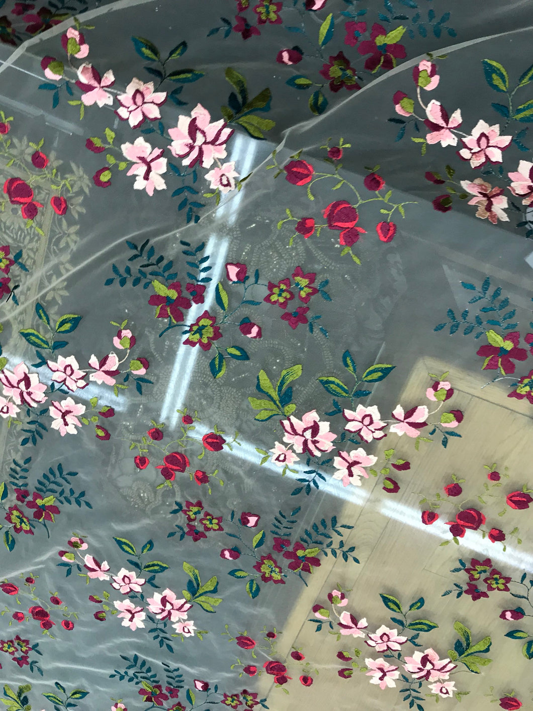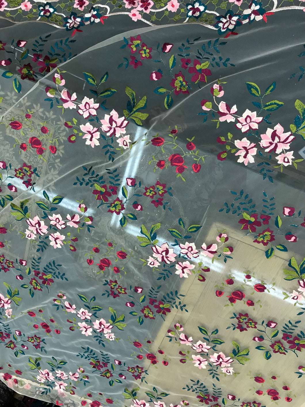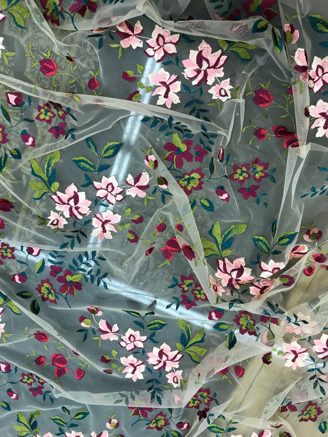 Italian designer fabric Floral embroidery on tulle fabric. Price for One Yard 50" wide. Usable for apparel,accessories and interior design