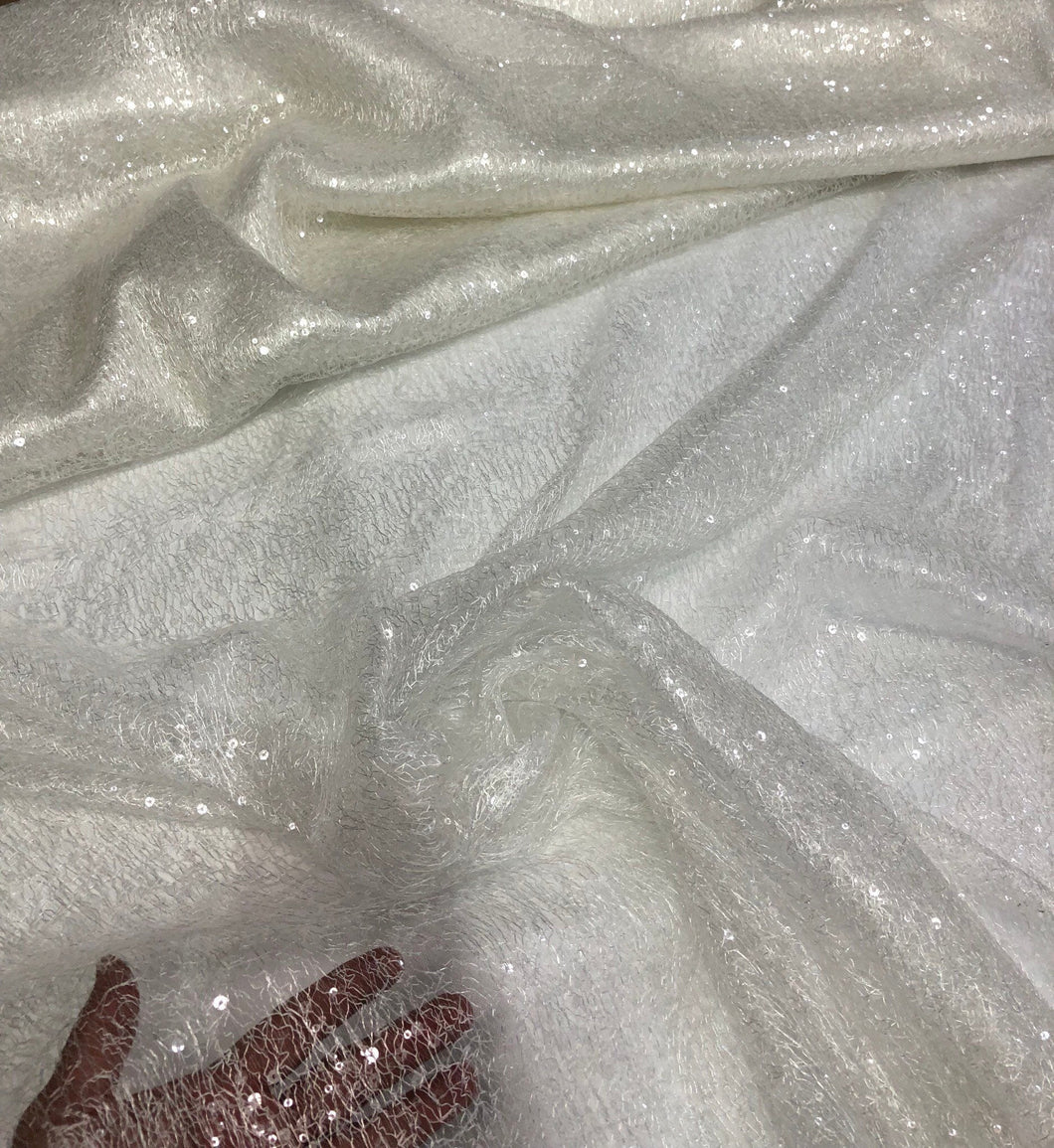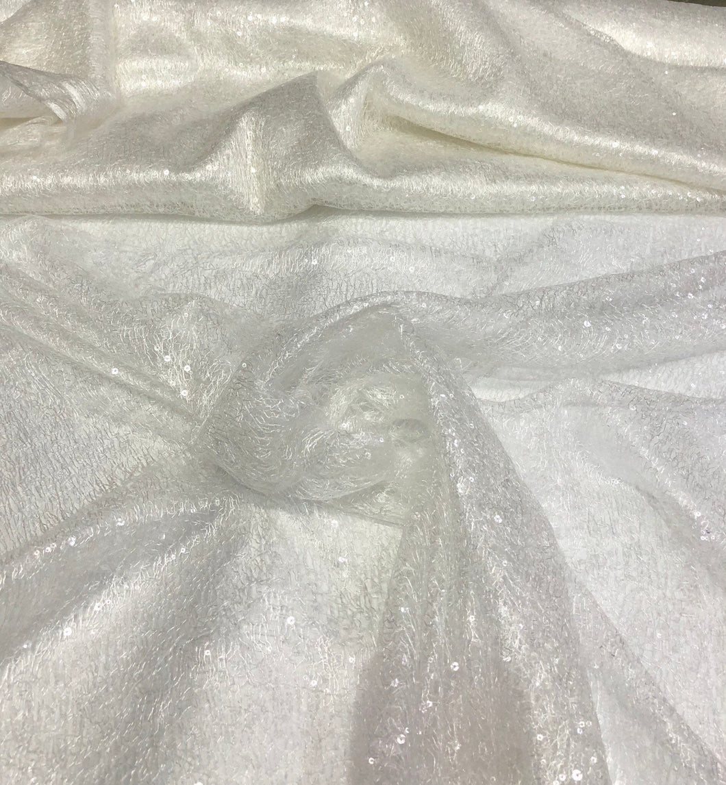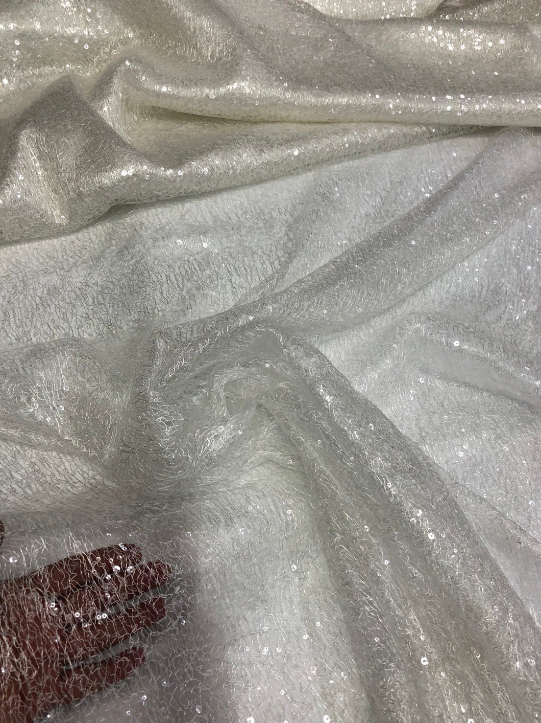 Ivory sequins on swirl mesh fabric 52" wide Fabric sold by the yard