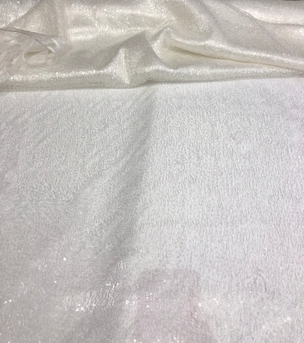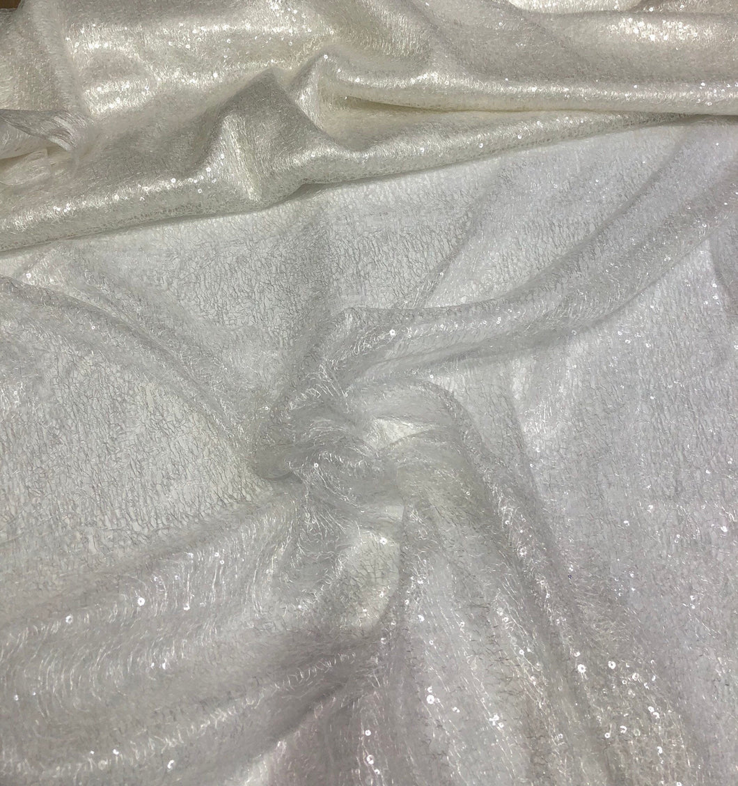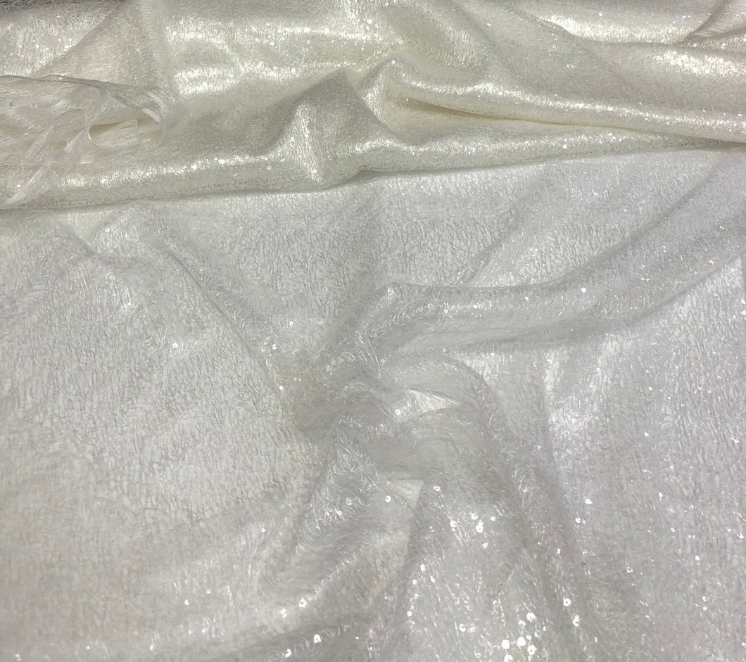 Ivory sequins on swirl mesh fabric 52" wide Fabric sold by the yard