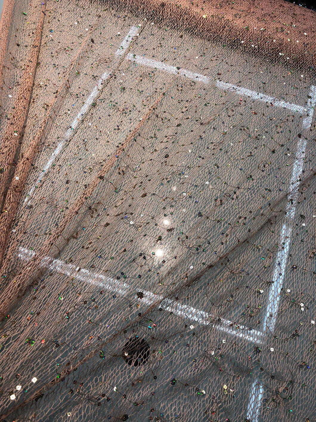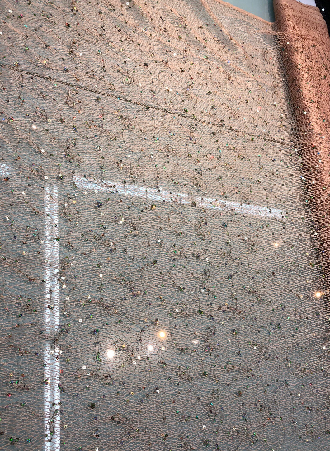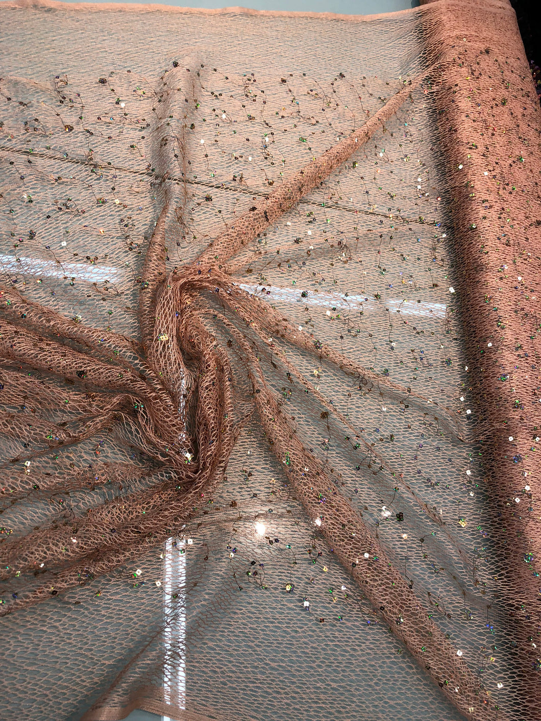 Mesh fabric with sequin embroidery, beautiful champagne color mesh with gold sequin 52" wide fabric sold by the yard