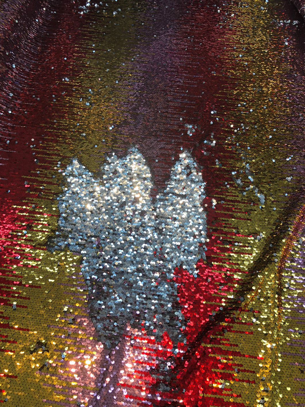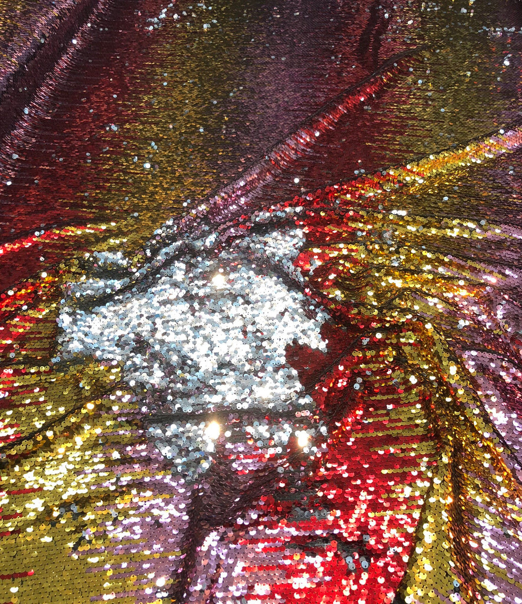 Multi color reversible sequins 54" wide Beautiful red gold silver color Fabric sold by the yard