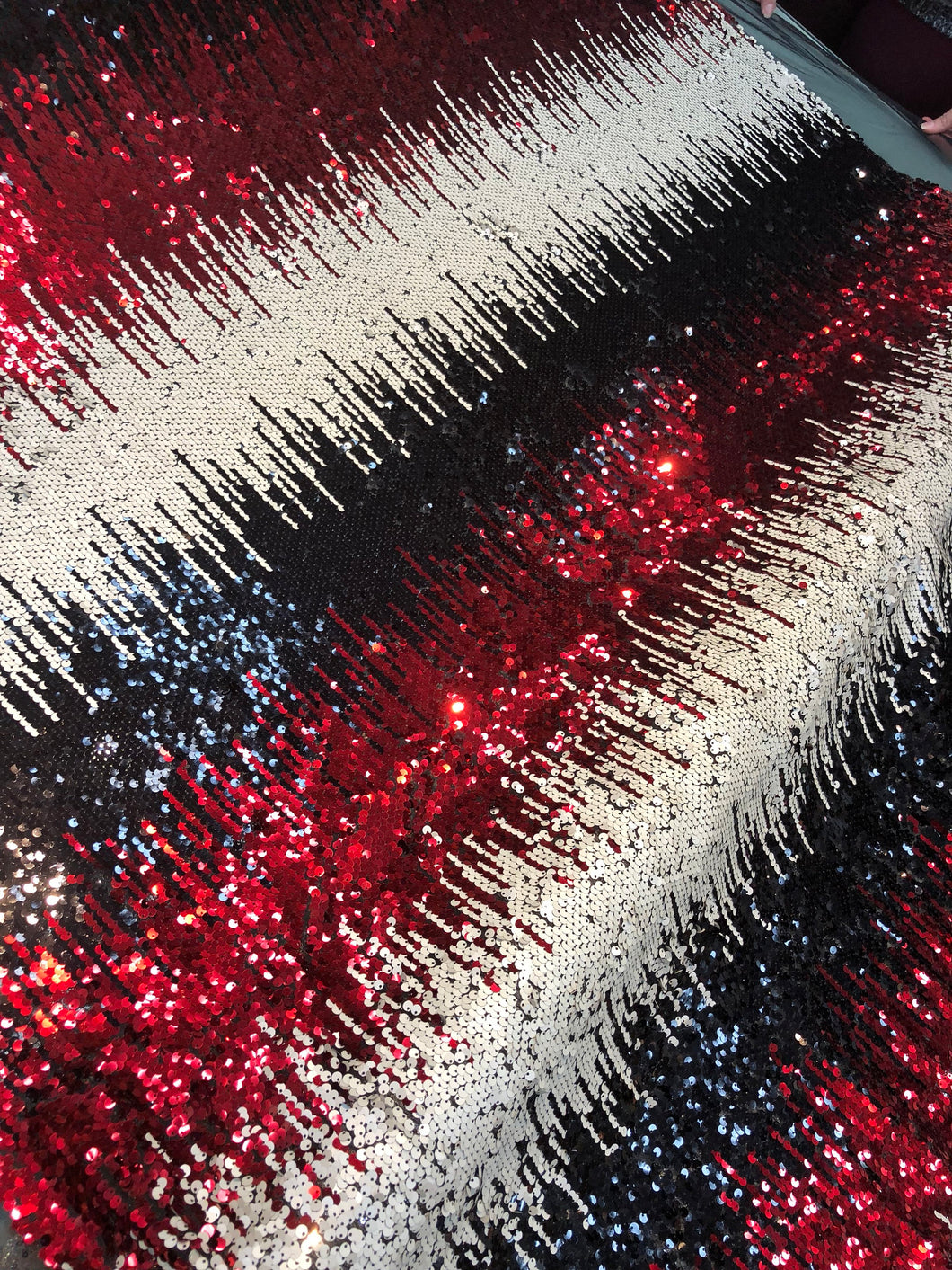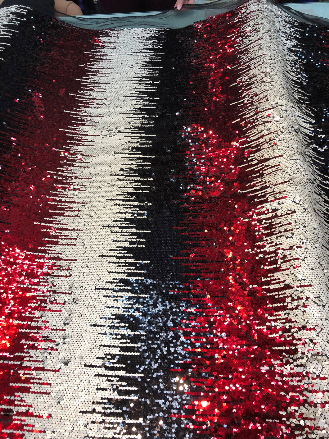 Multi color sequins 54" wide    Beautiful black red cream color combo fabric sold by the yard