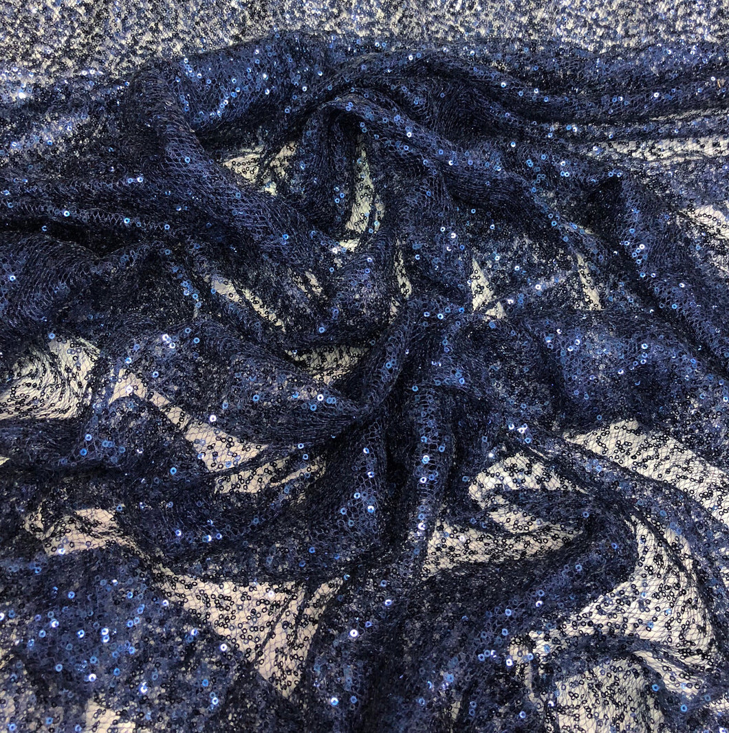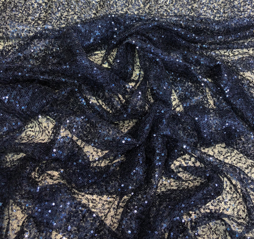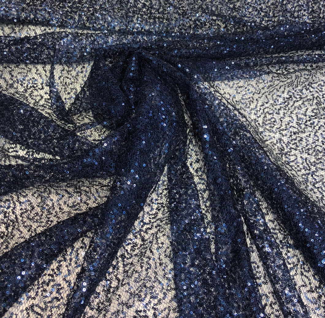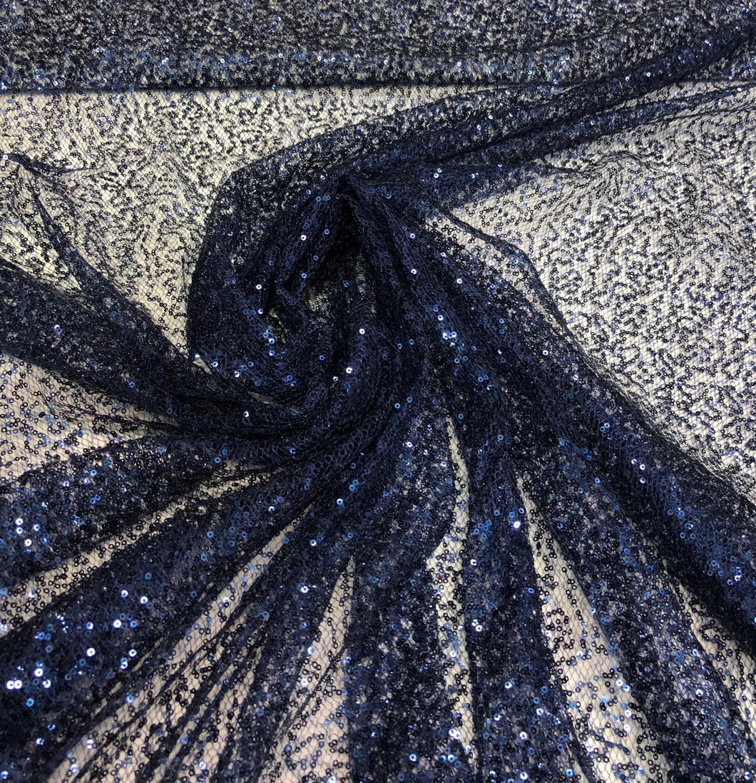 Navy blue sequins on sheer mesh fabric 52" wide Fabric sold by the yard