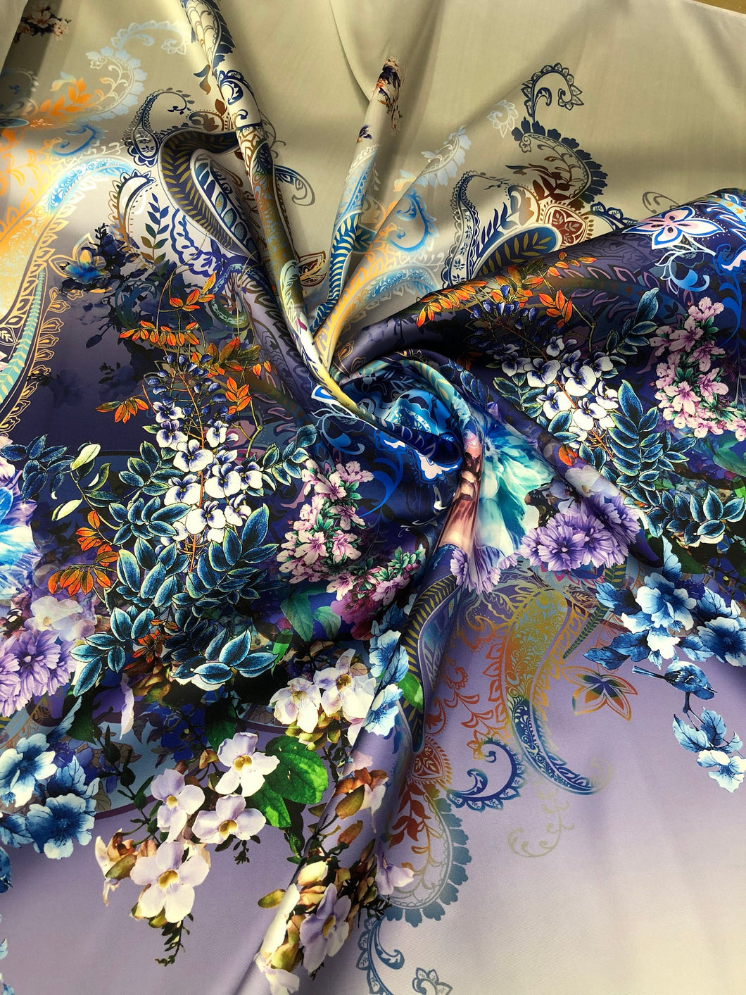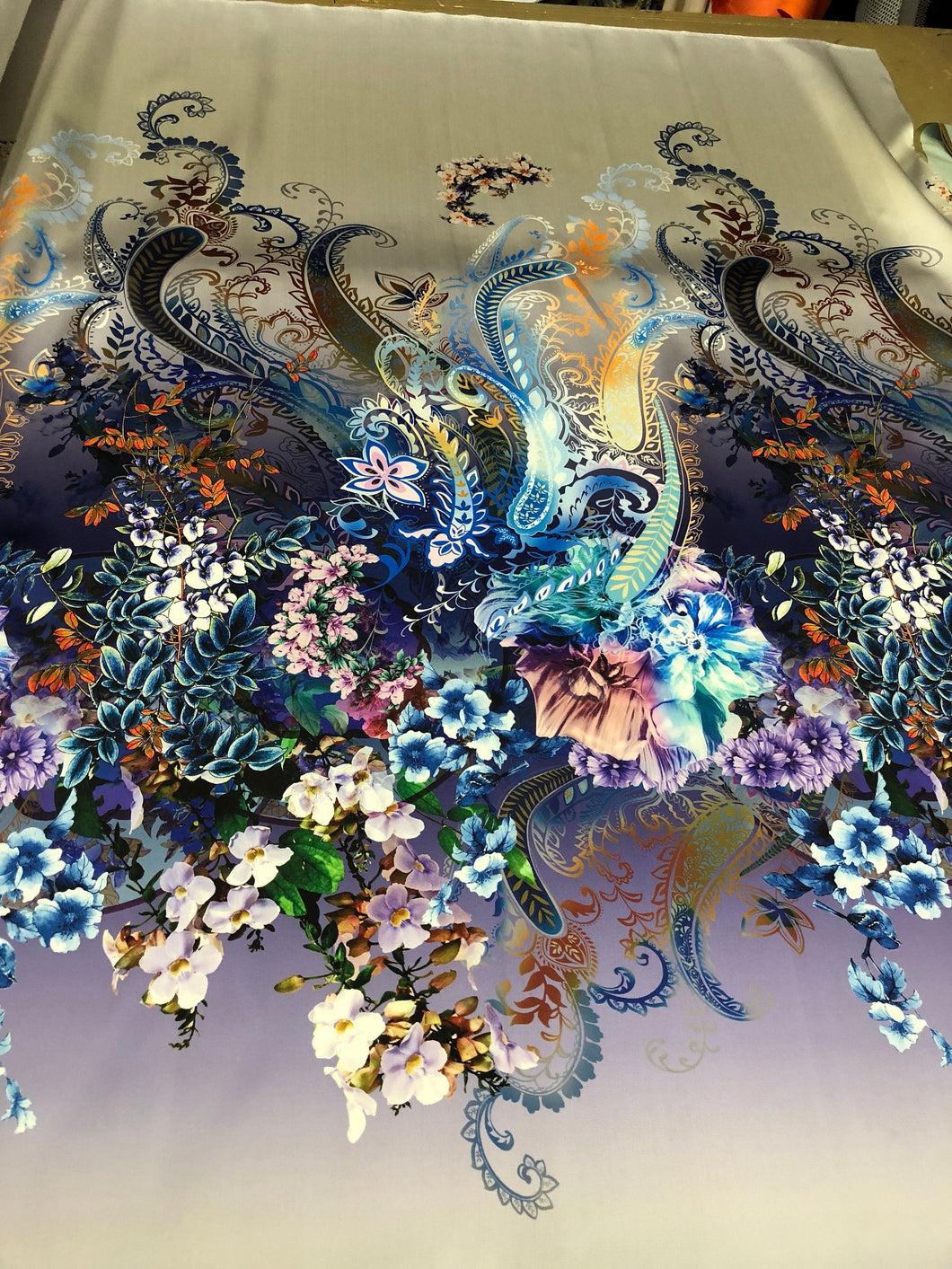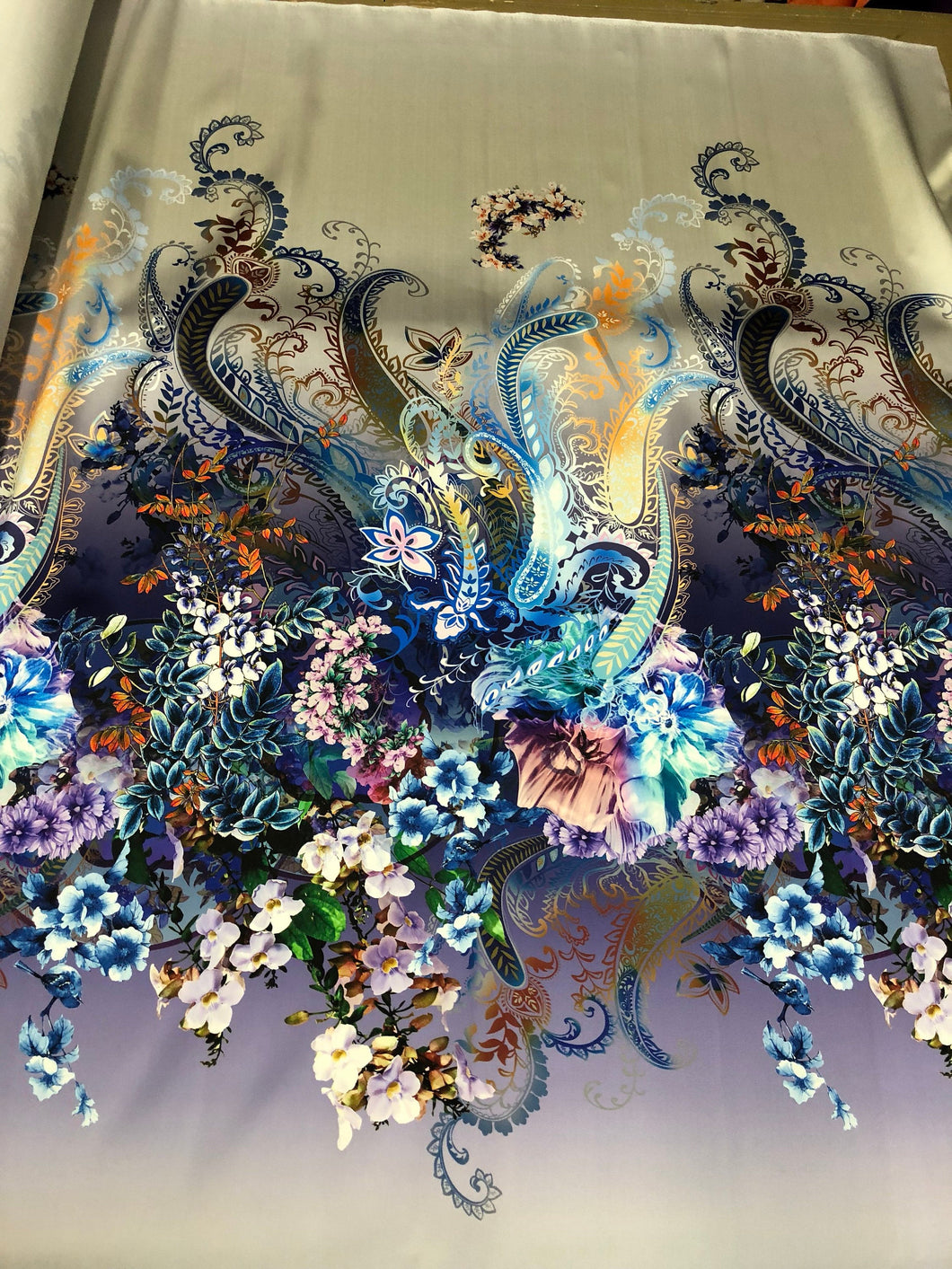 Poly Mikado/Zibelline digitally printed Fabric. 60" Wide Mikado Fabric is a unique blend makes this fabric soft & Gives Structure to Dress.