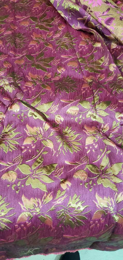 Purplish fusia gold doubke faced brocade 45" wide. Beautiful gold purplish pink brocade sold by the yard. Best use for theatrical costumes