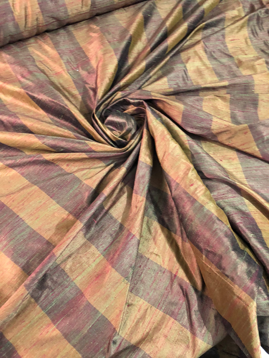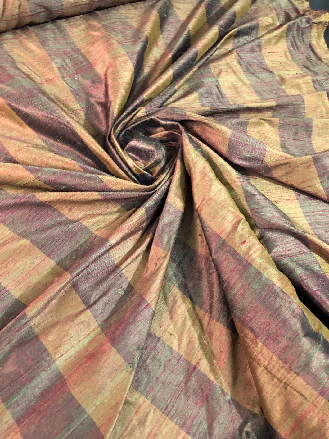 100% Silk Taffetta/Dupion plaid,stripe. fabric by yard 54" wide. Can be used for Clothing and Interior Designing.