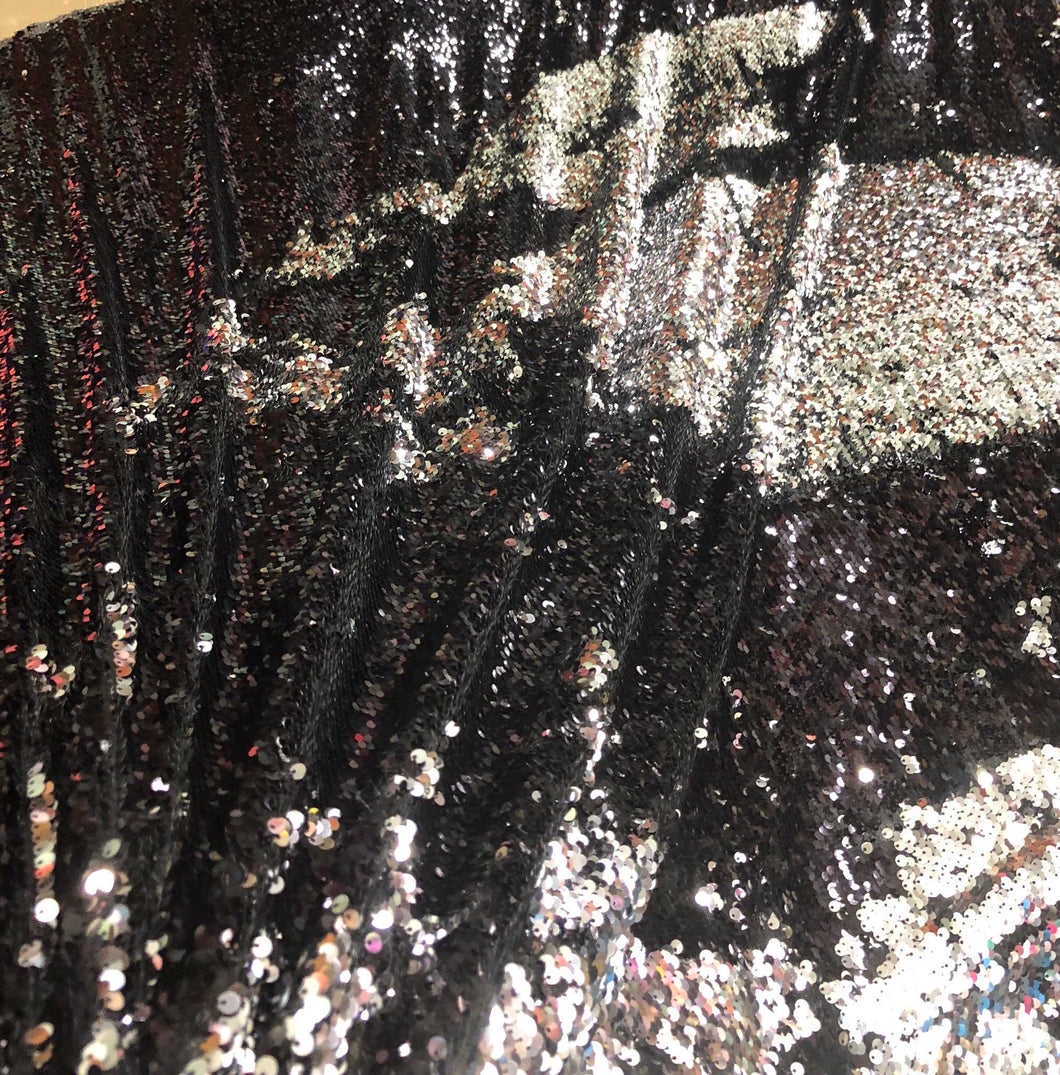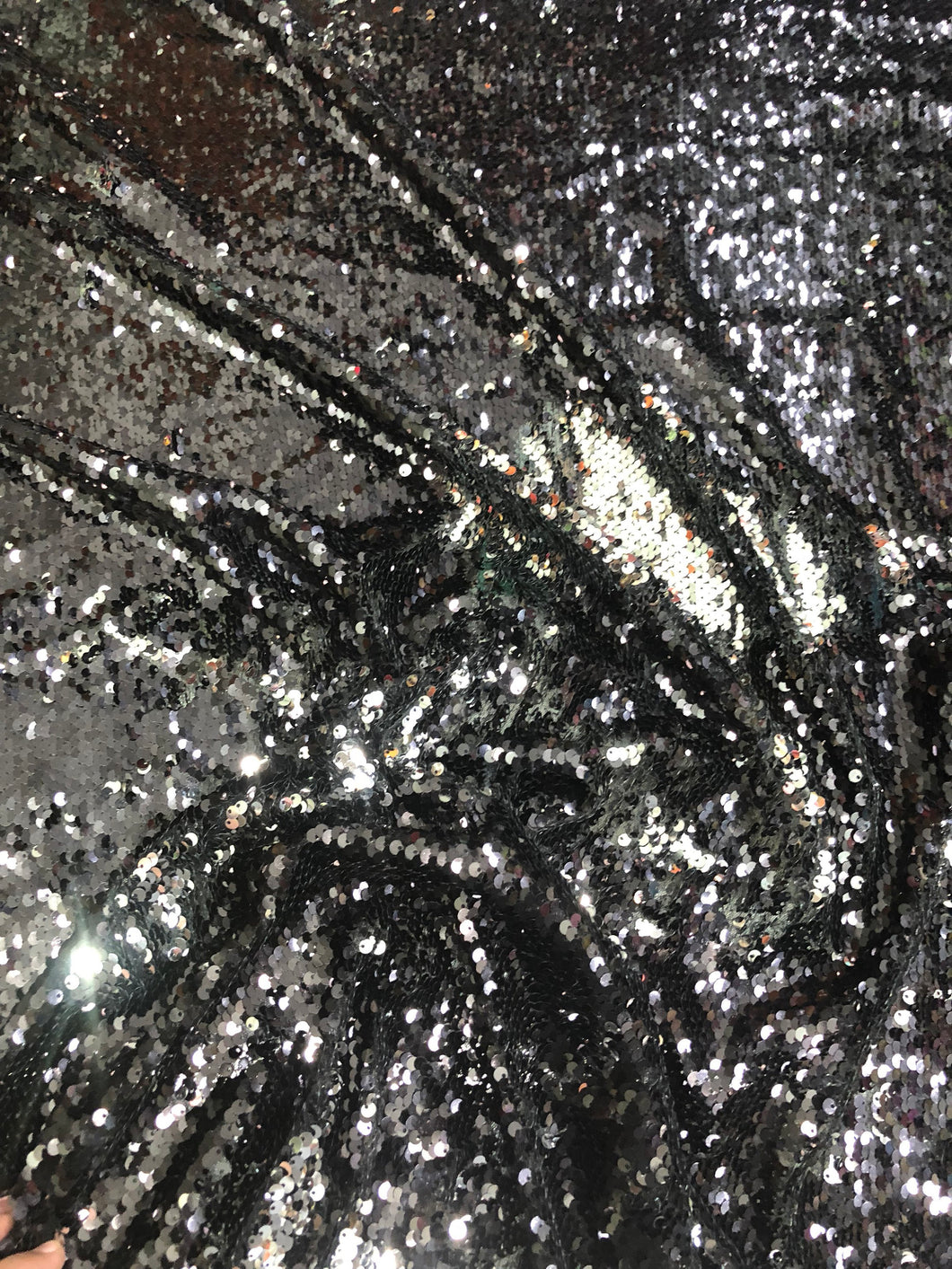 Reversible sequins fabric 54" wide Beautiful black silver color Fabric sold by the yard