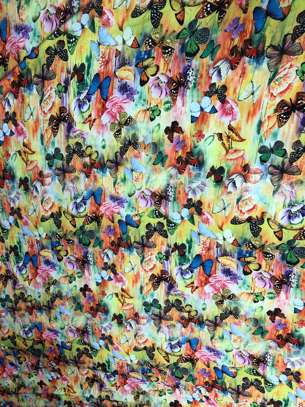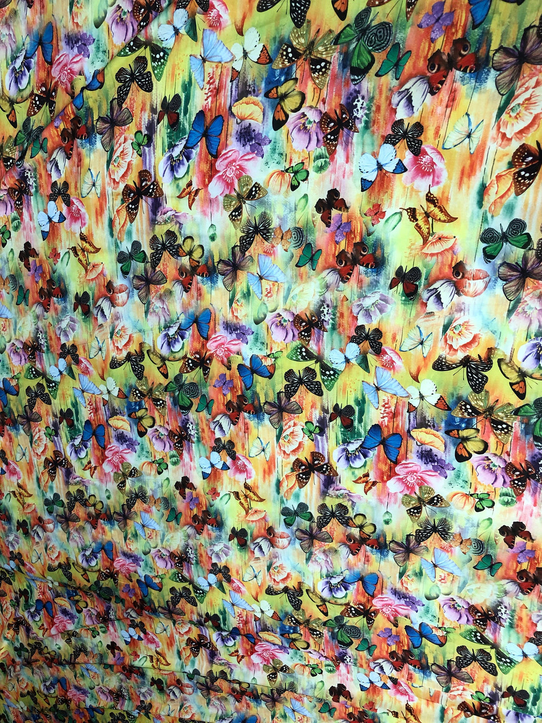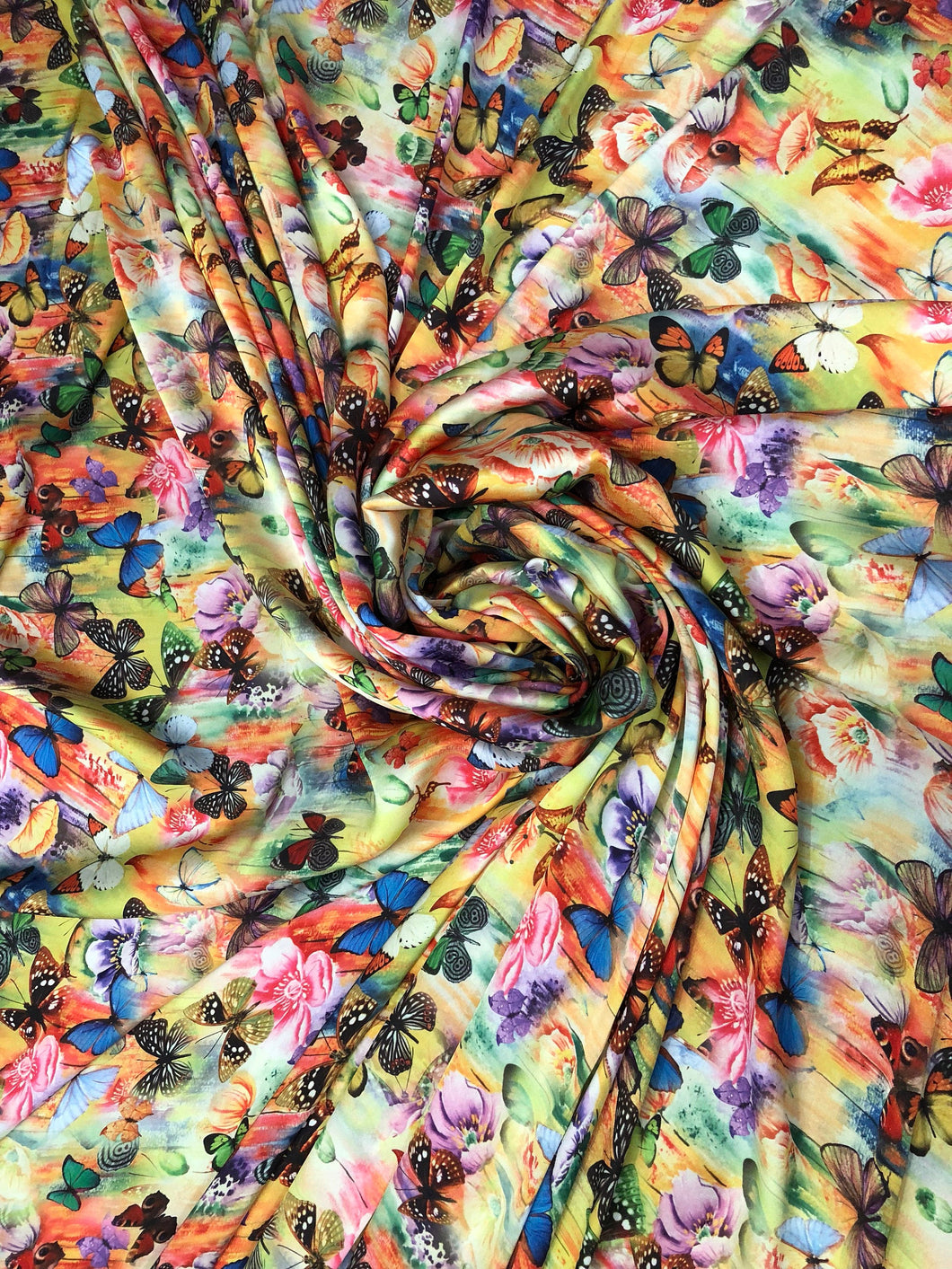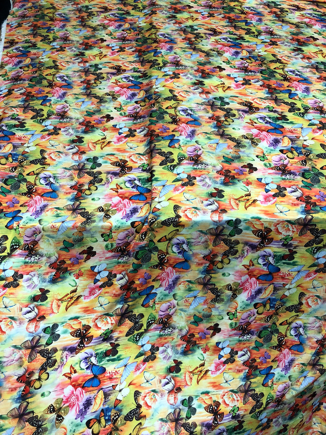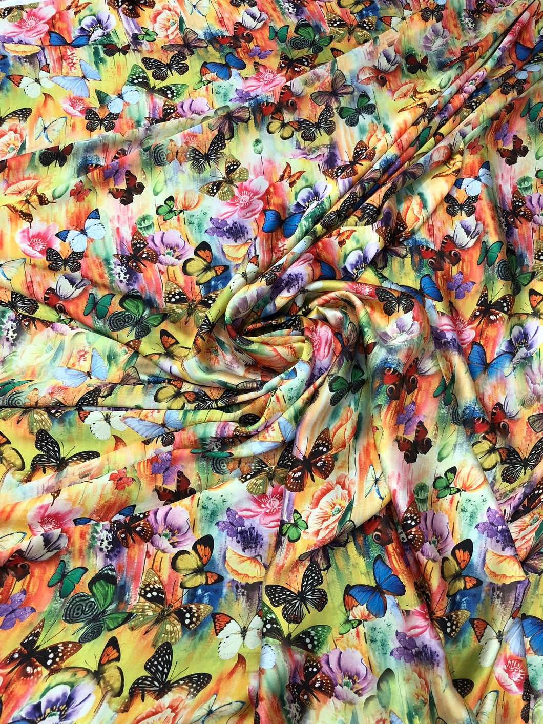 Satin charmeuse digital print 54" wide Beautiful butterfly design Soft silky favric sold by the yard