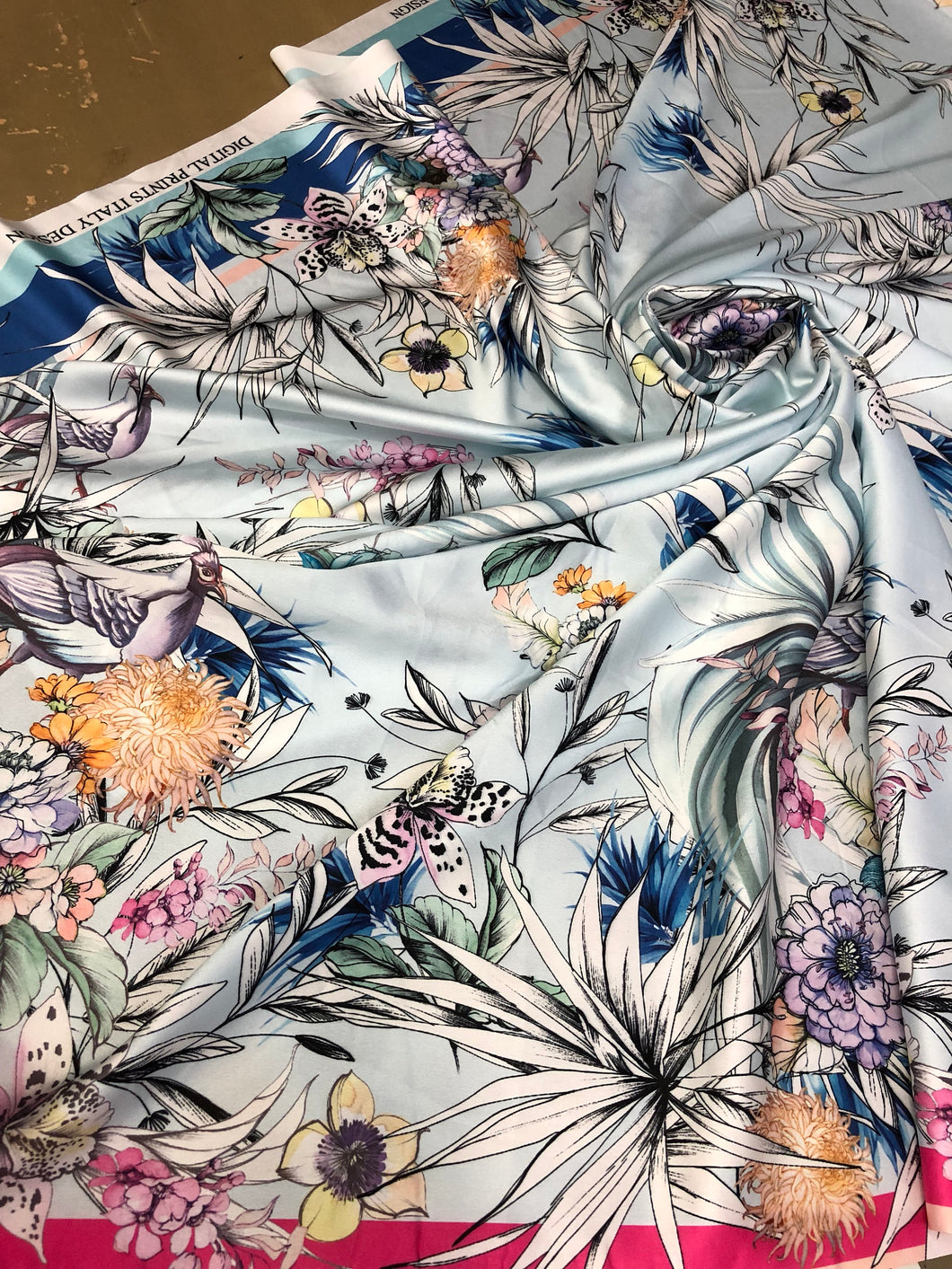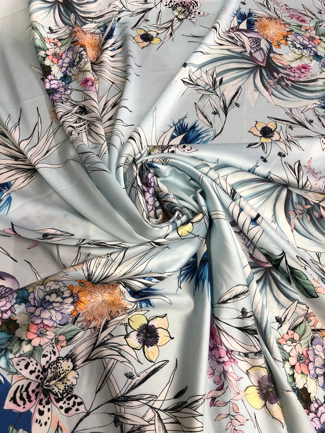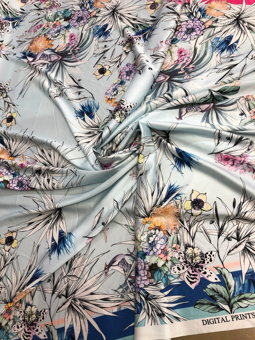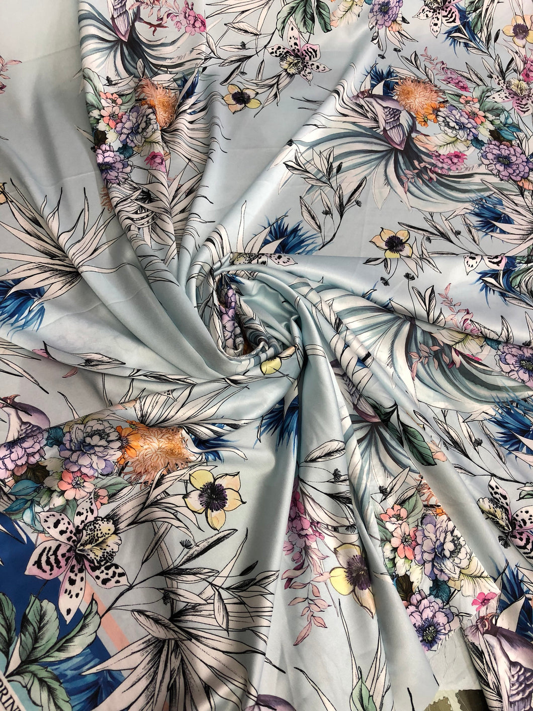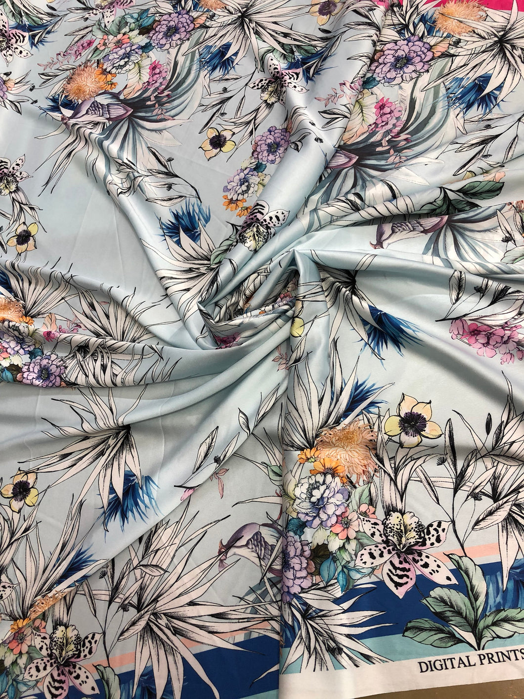 Satin charmeuse digital print 54" wide Beautiful floral design Soft silky fabric sold by the yard