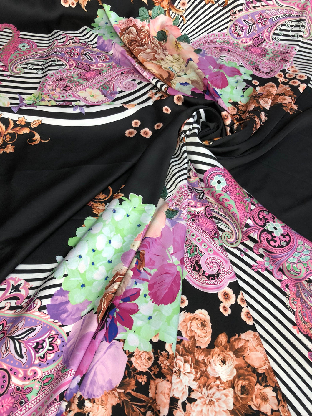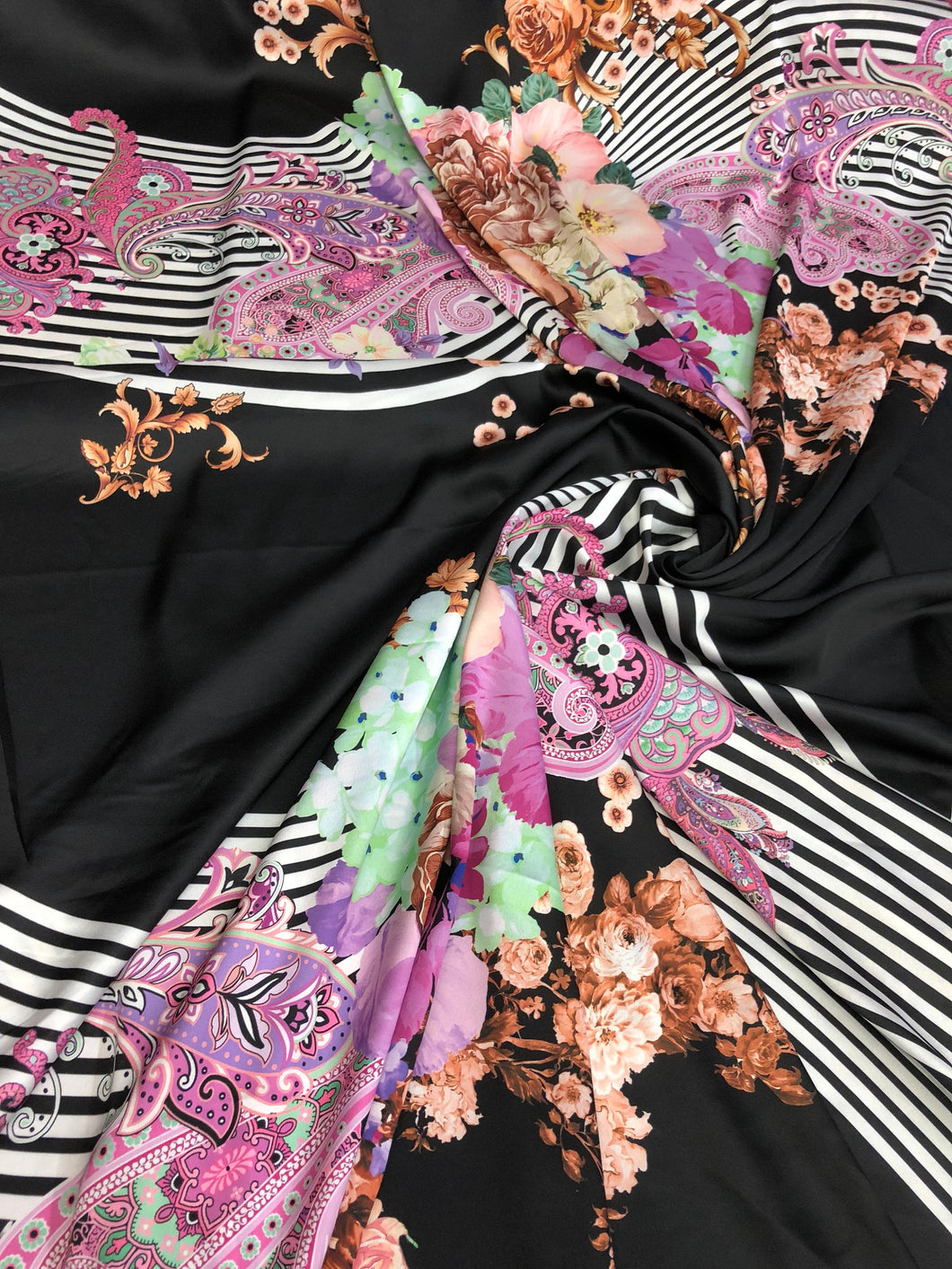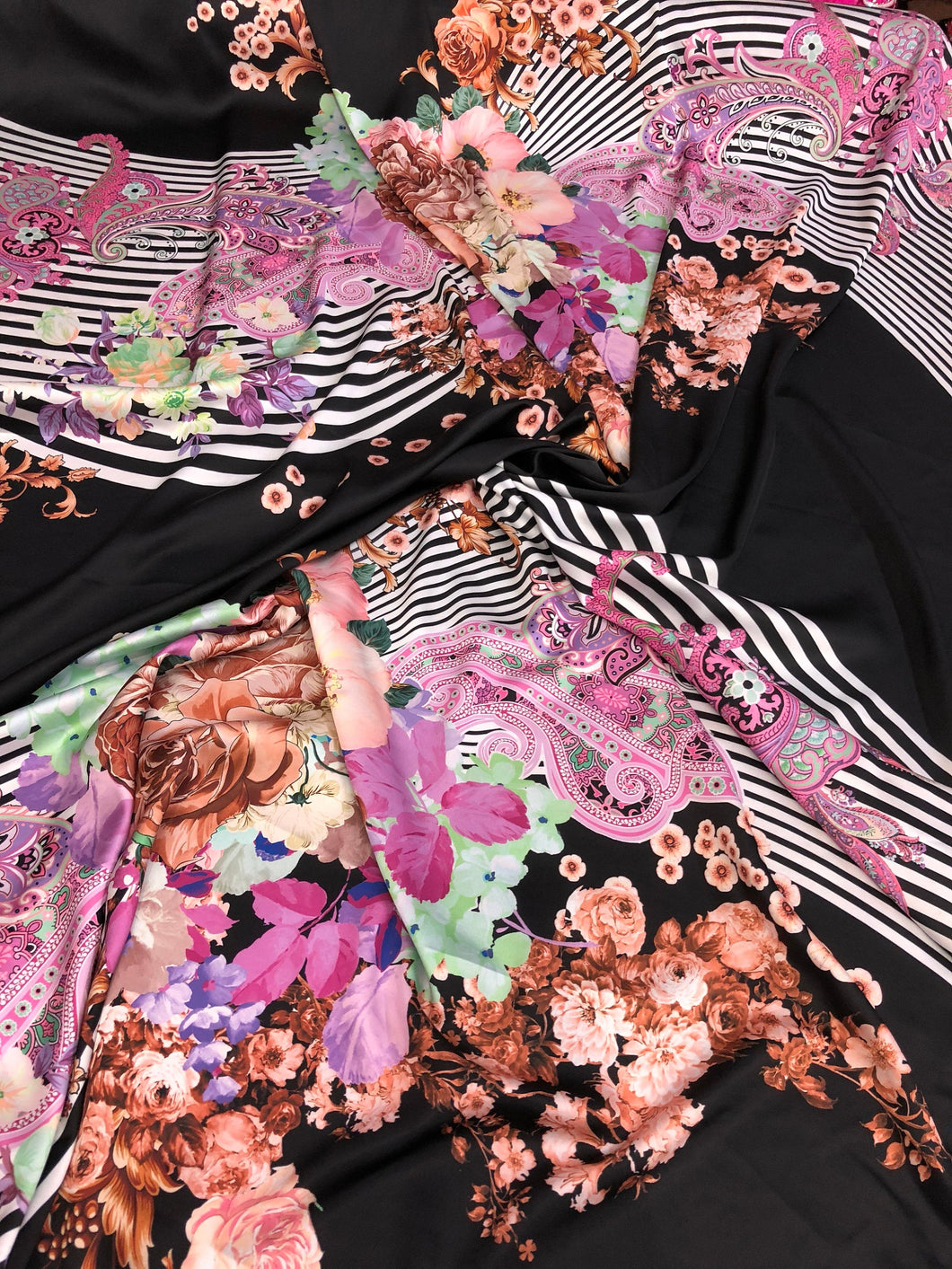Satin charmeuse digital print 54" wide Beautiful floral stripe print Soft silky fabric sold by the yard