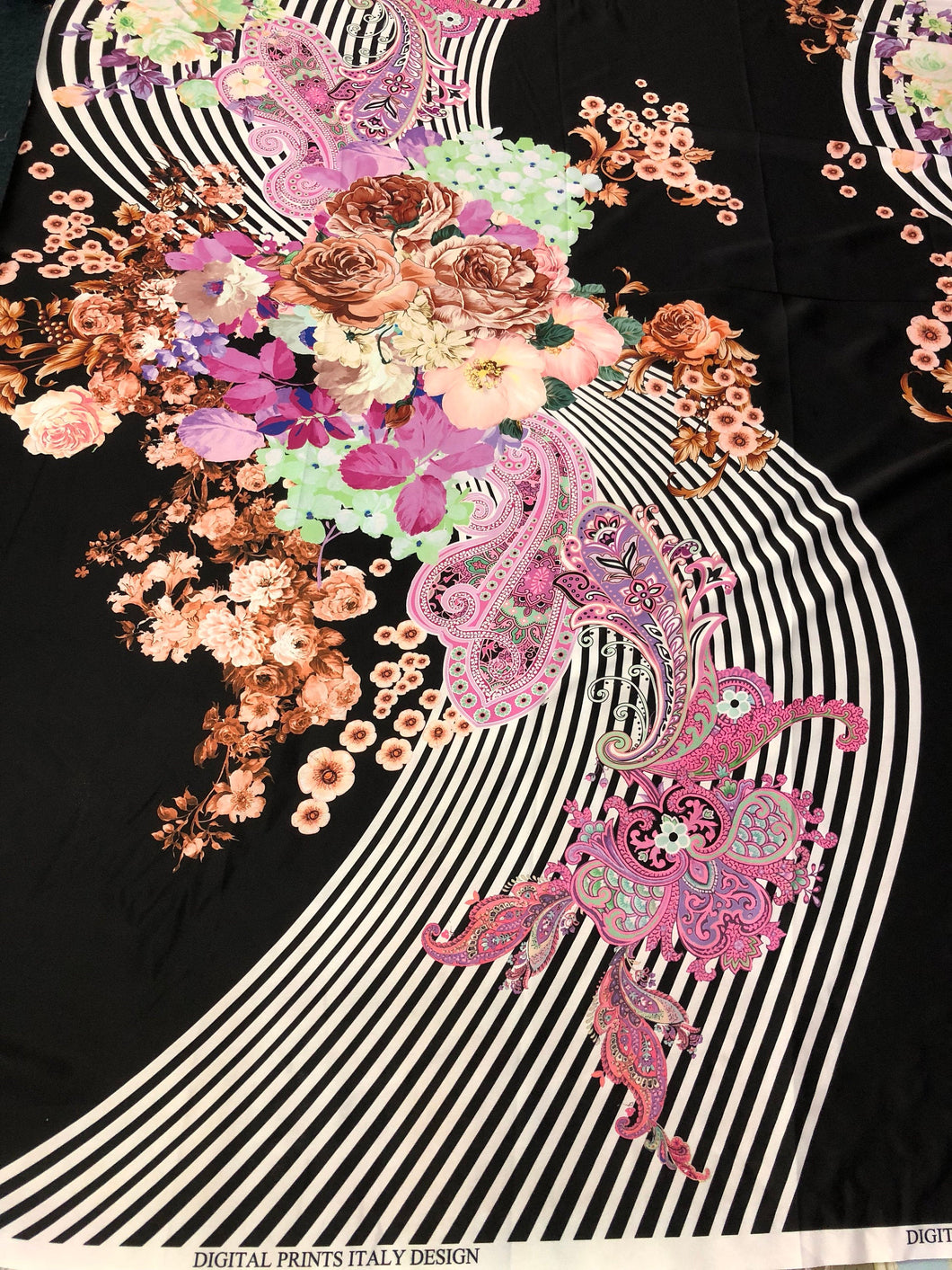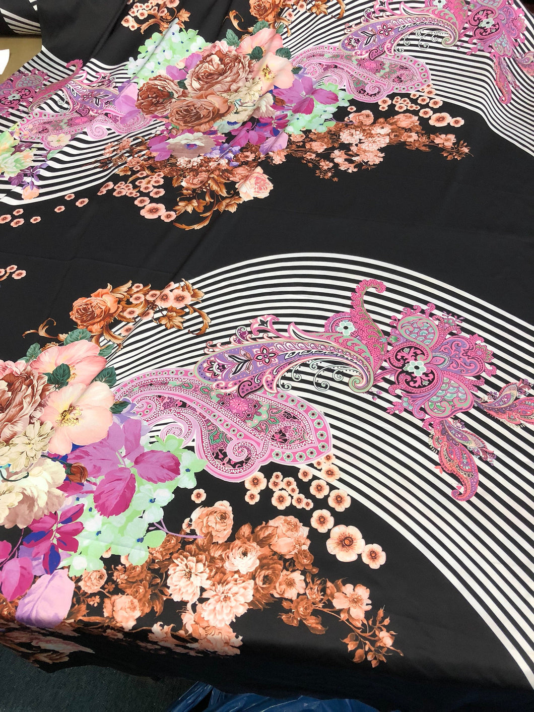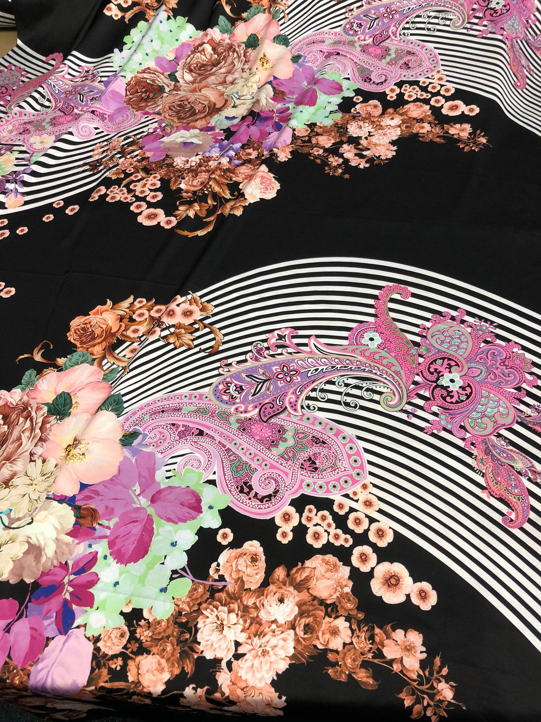 Satin charmeuse digital print 54" wide Beautiful floral stripe print Soft silky fabric sold by the yard