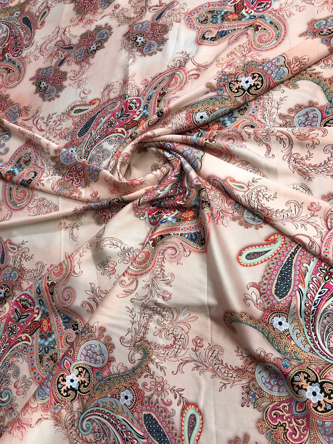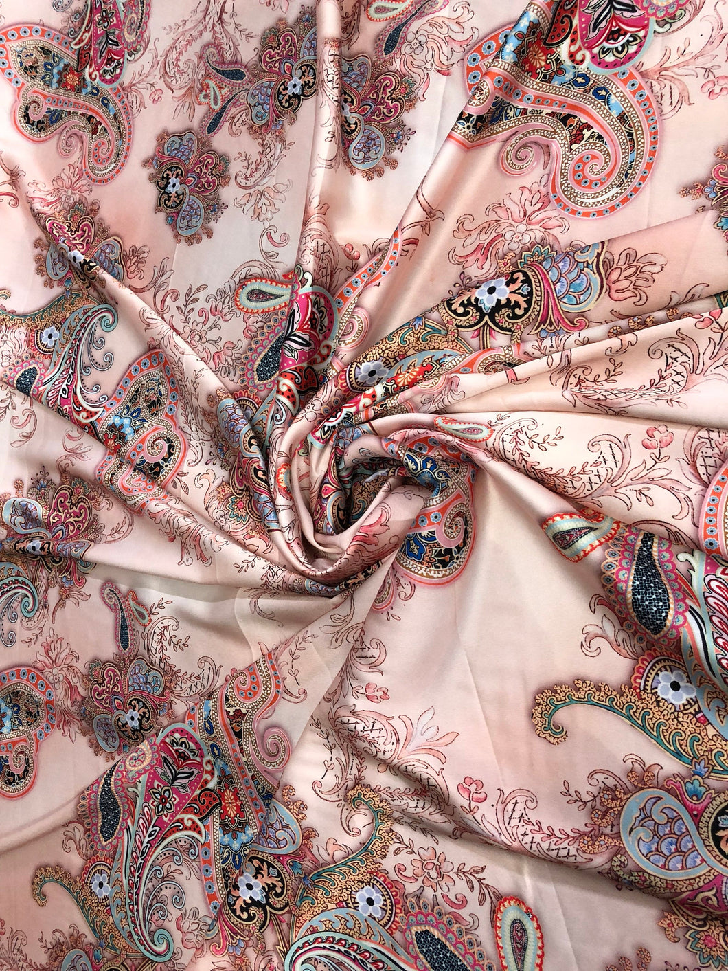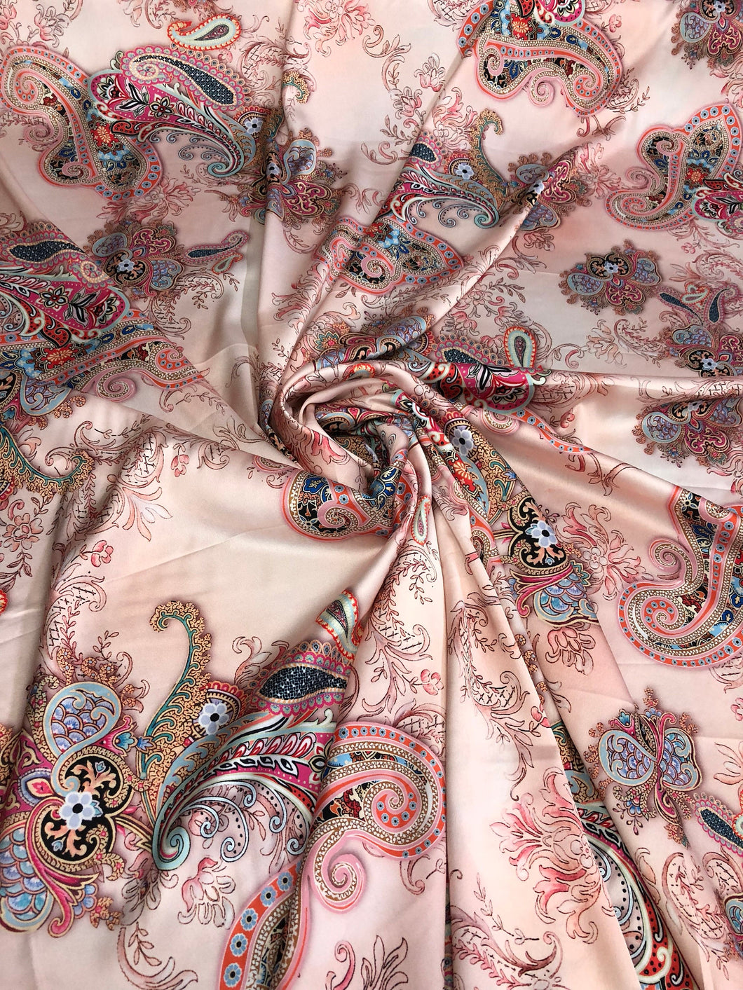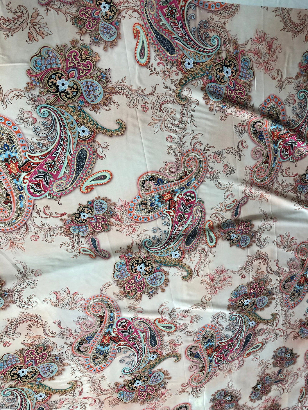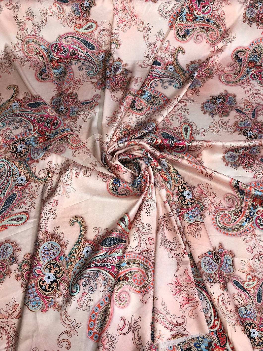 Satin charmeuse digital print 54" wide Beautiful paisley design Soft silky fabric sold by the yard