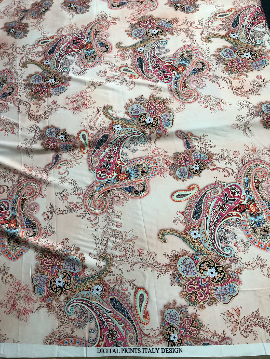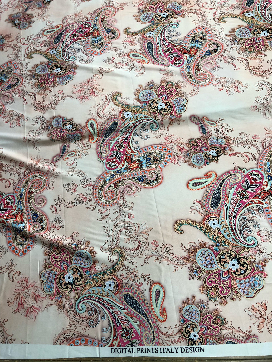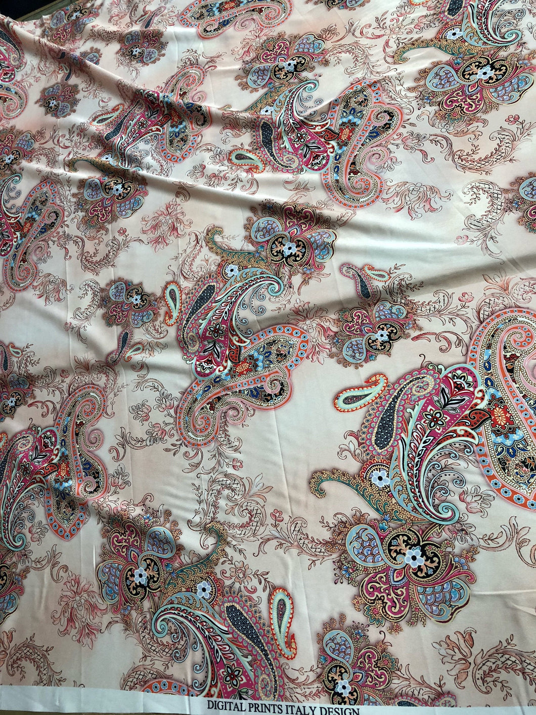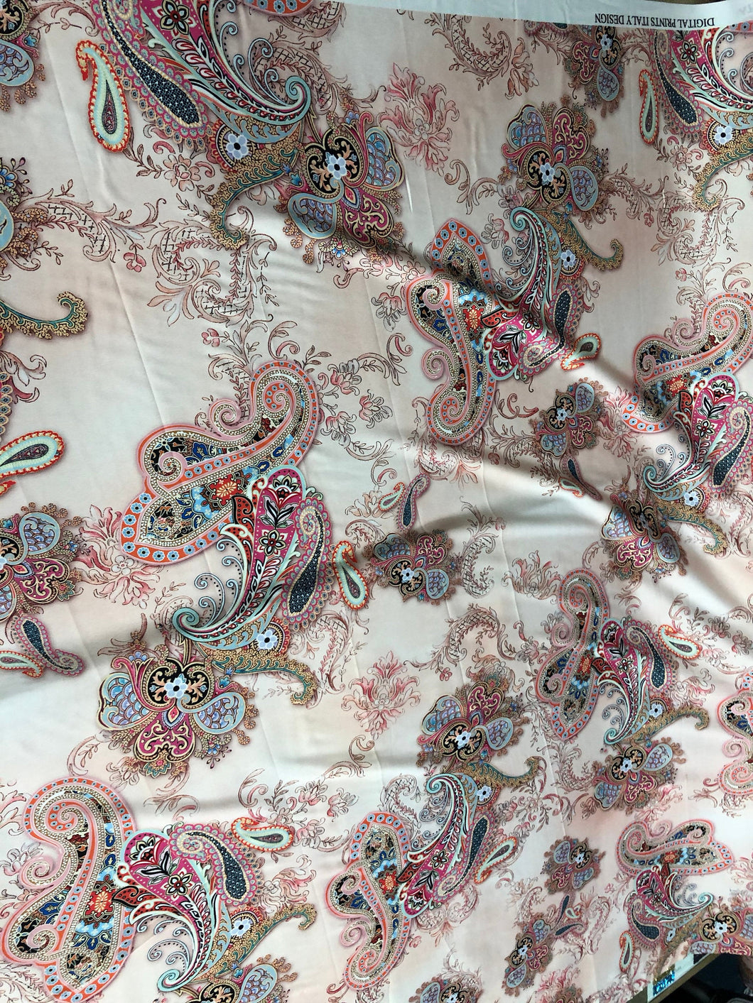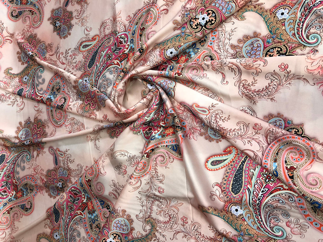 Satin charmeuse digital print 54" wide Beautiful paisley design Soft silky fabric sold by the yard