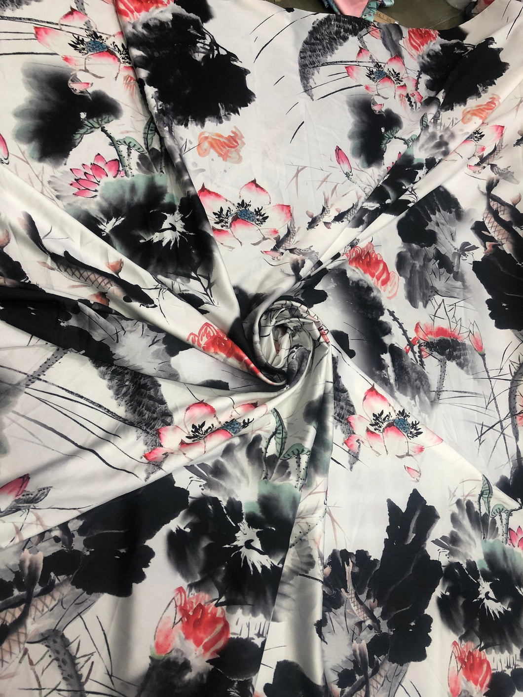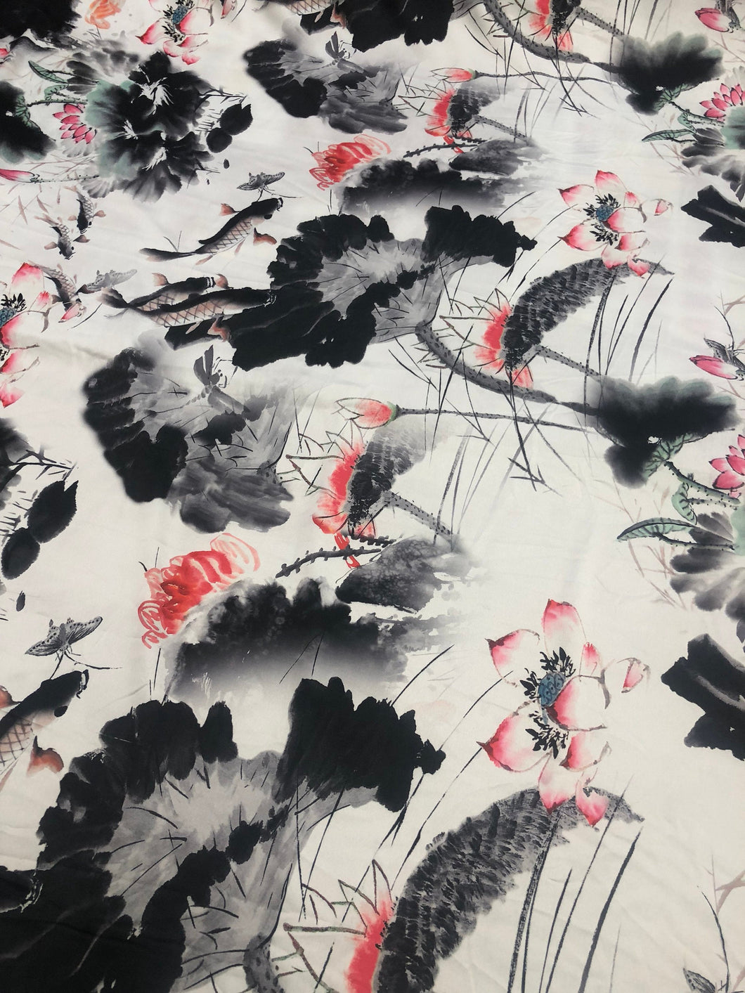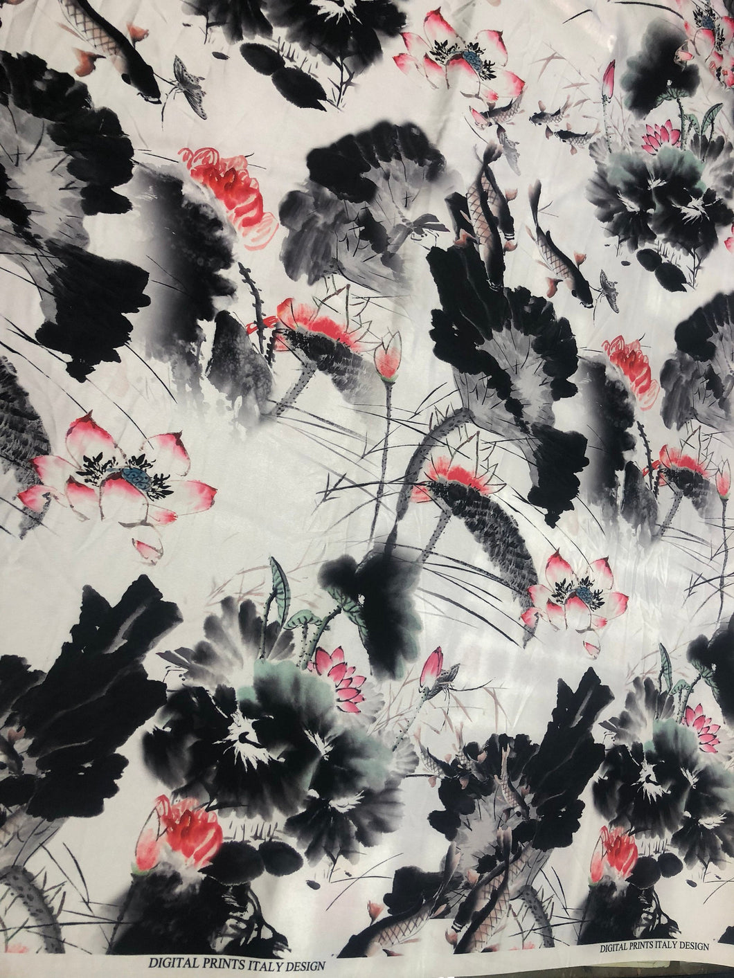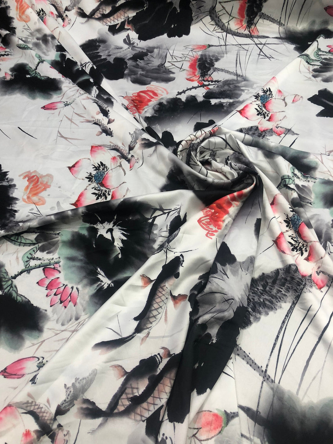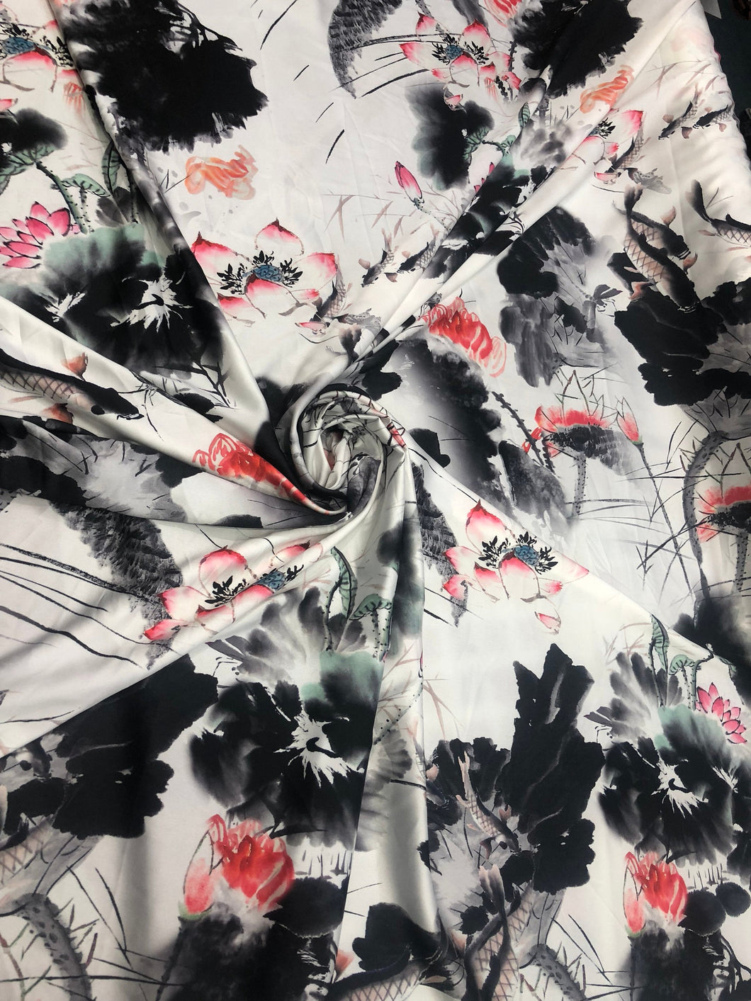 Satin charmeuse digital print 54" wide Beautiful white black red colors silky satin charmeuse fabric sold by the yard