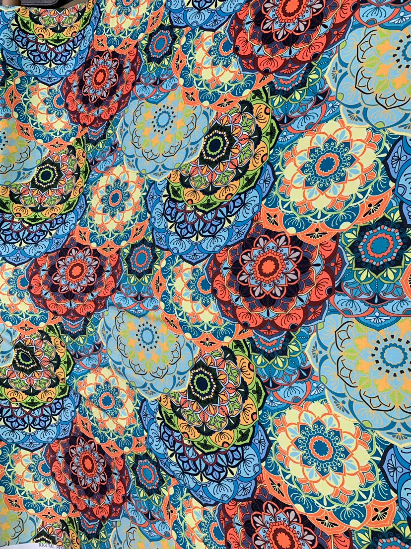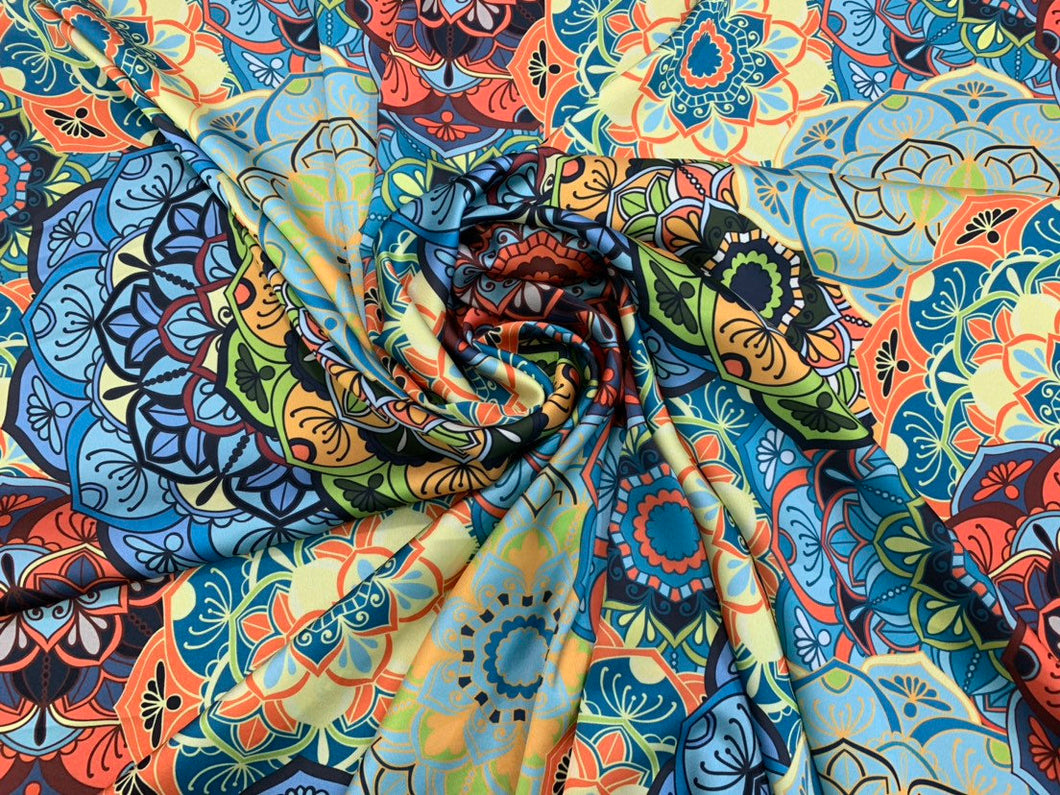 Satin Charmeuse digital printed fabric 54” wide. Beautiful soft silky colorful abstract design. Sold by the yard
