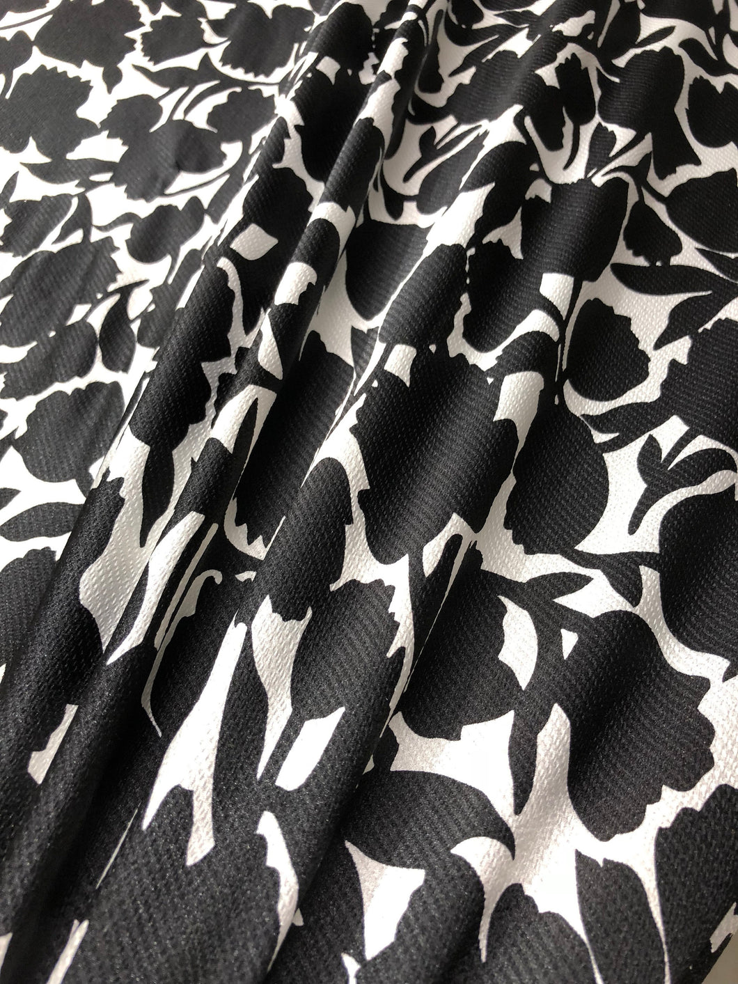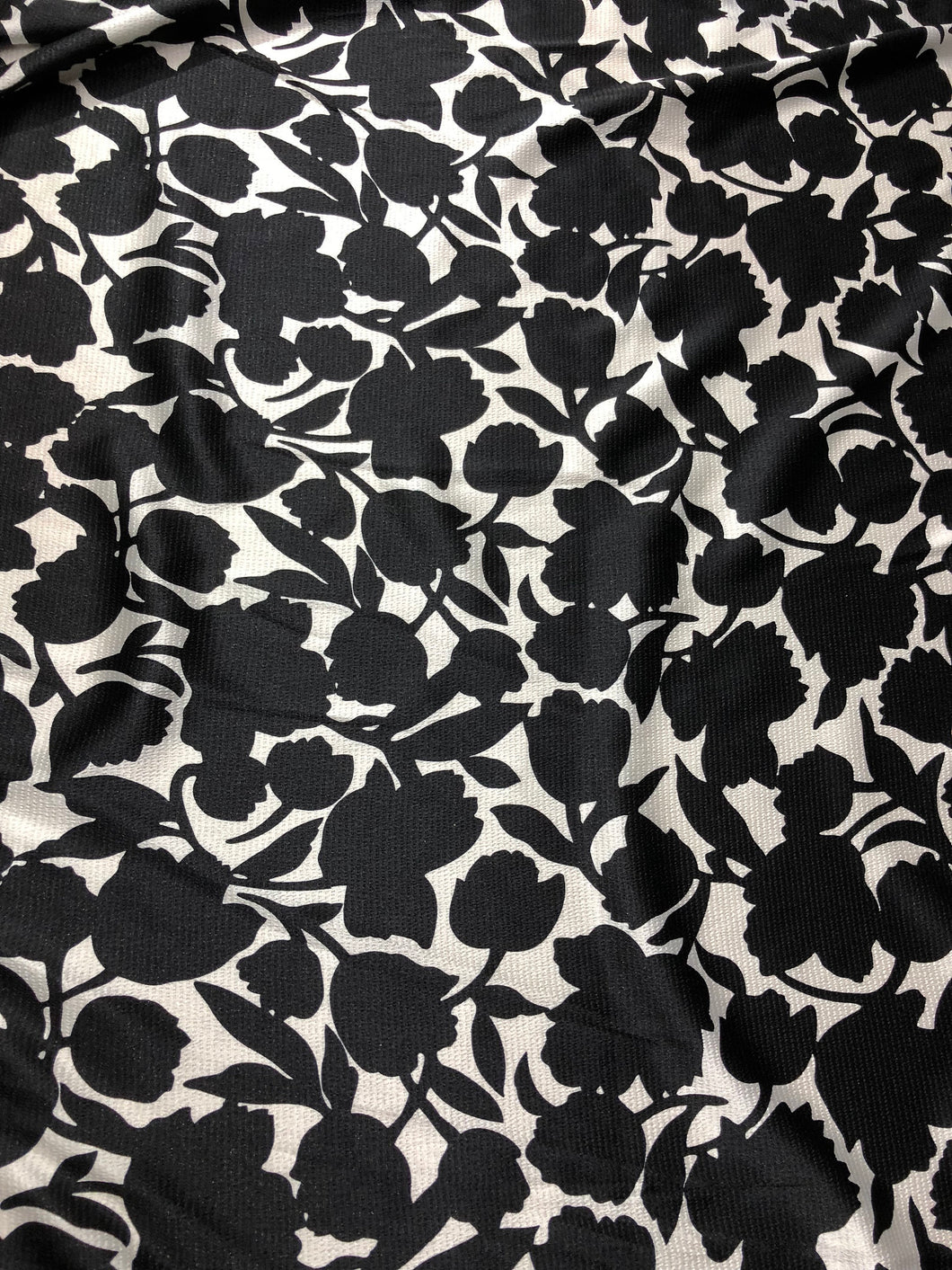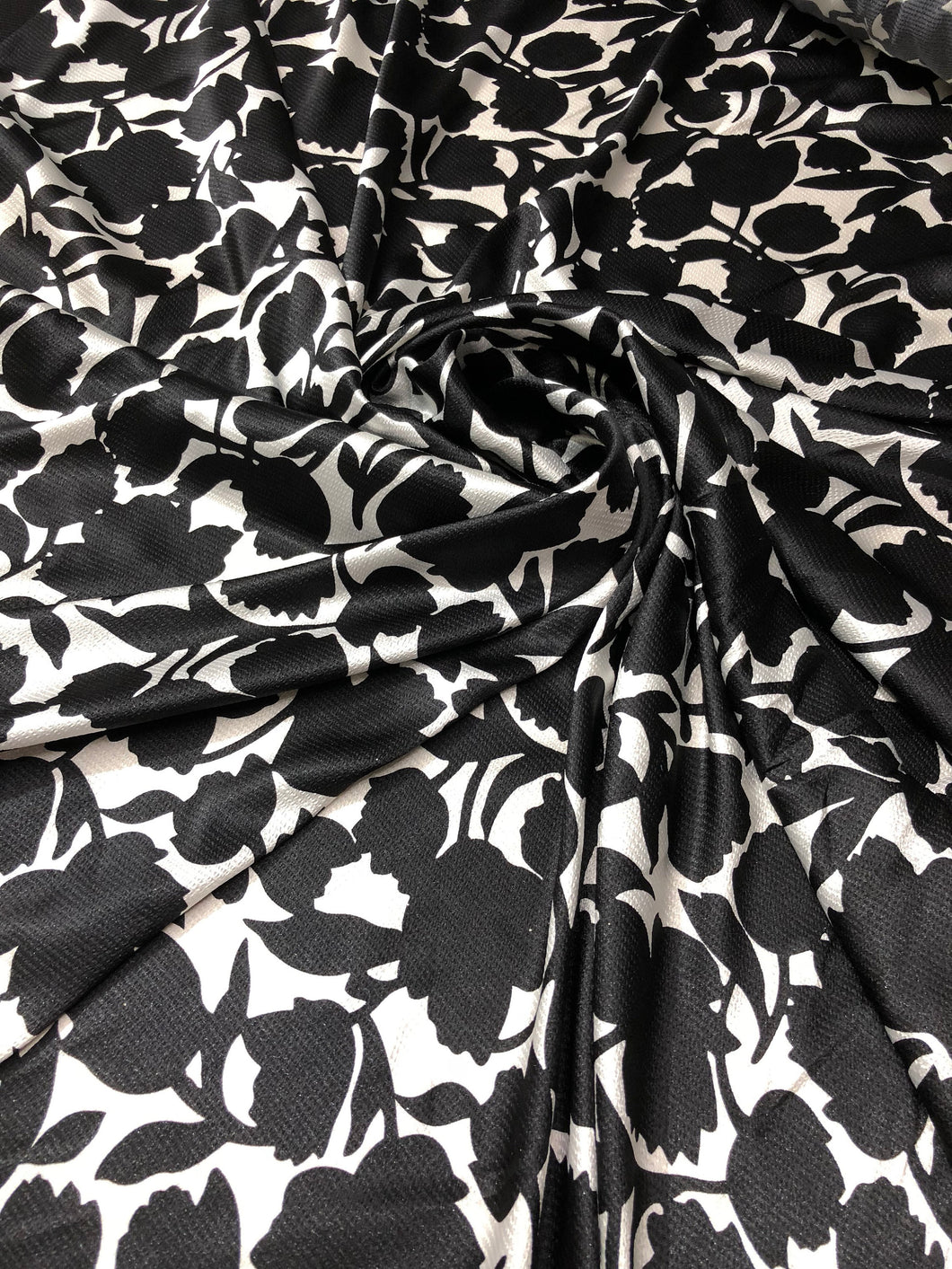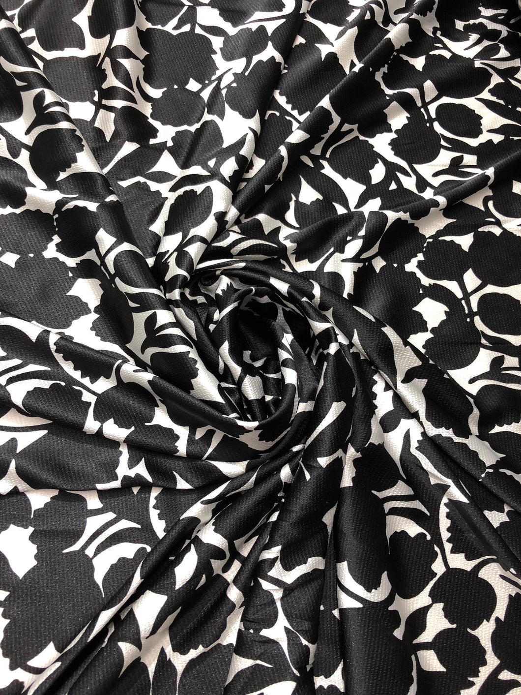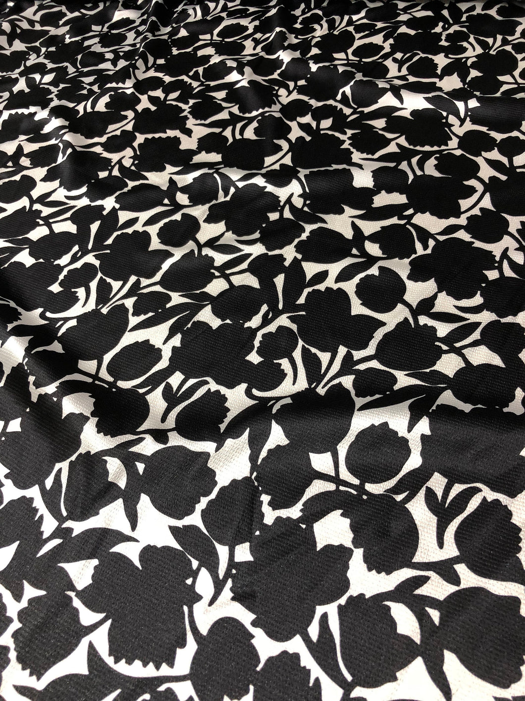 Satin charmeuse print 54" wide Beautiful black and white floral design Fabric sold by the yard