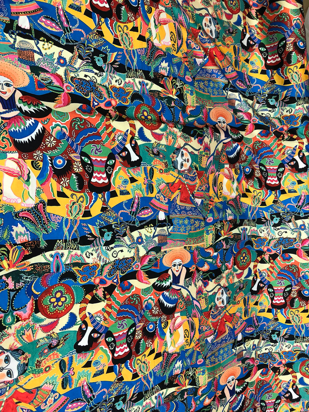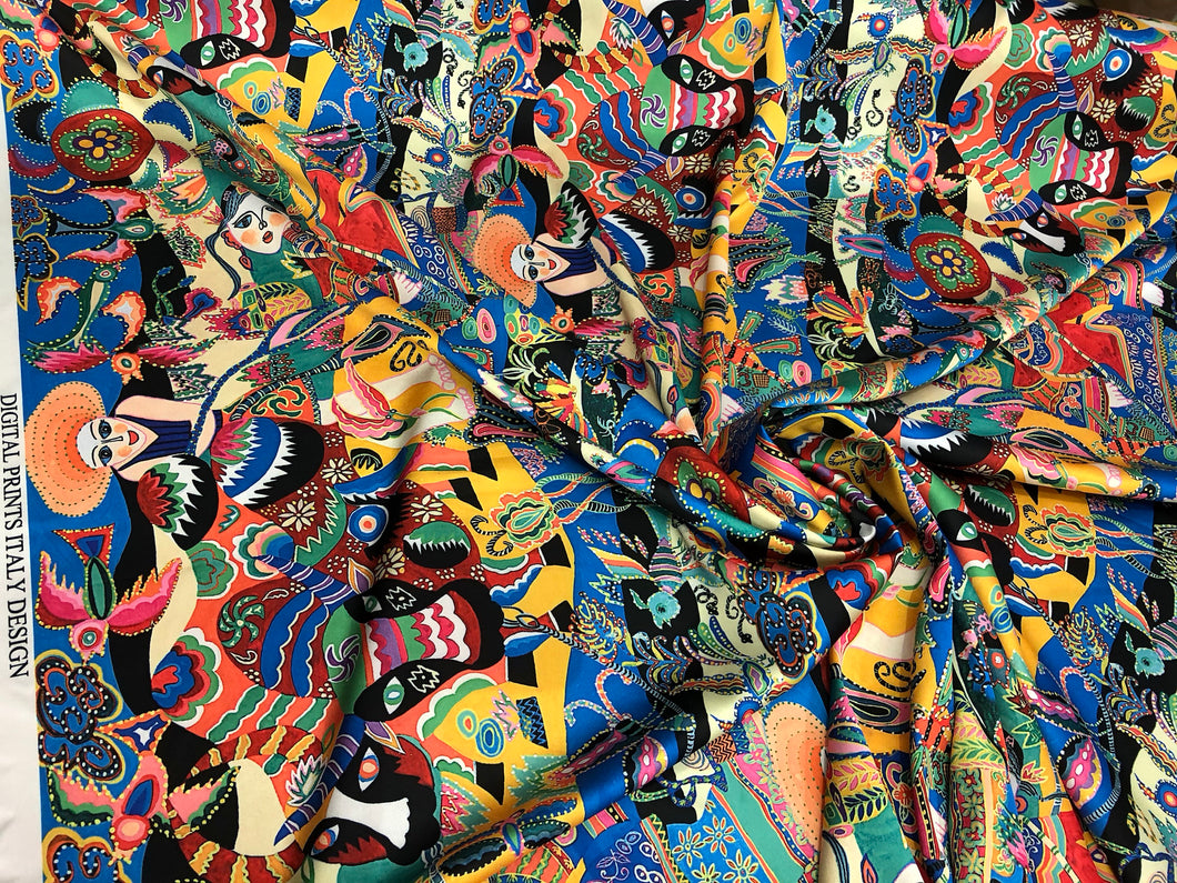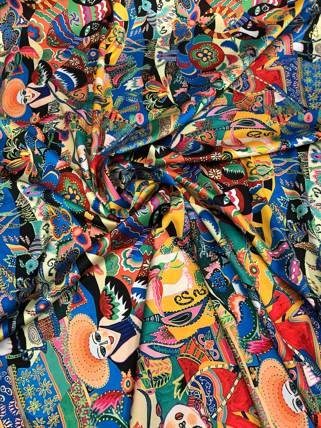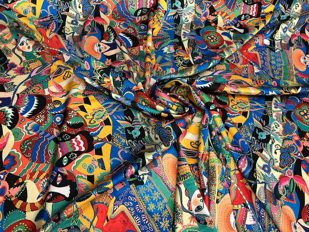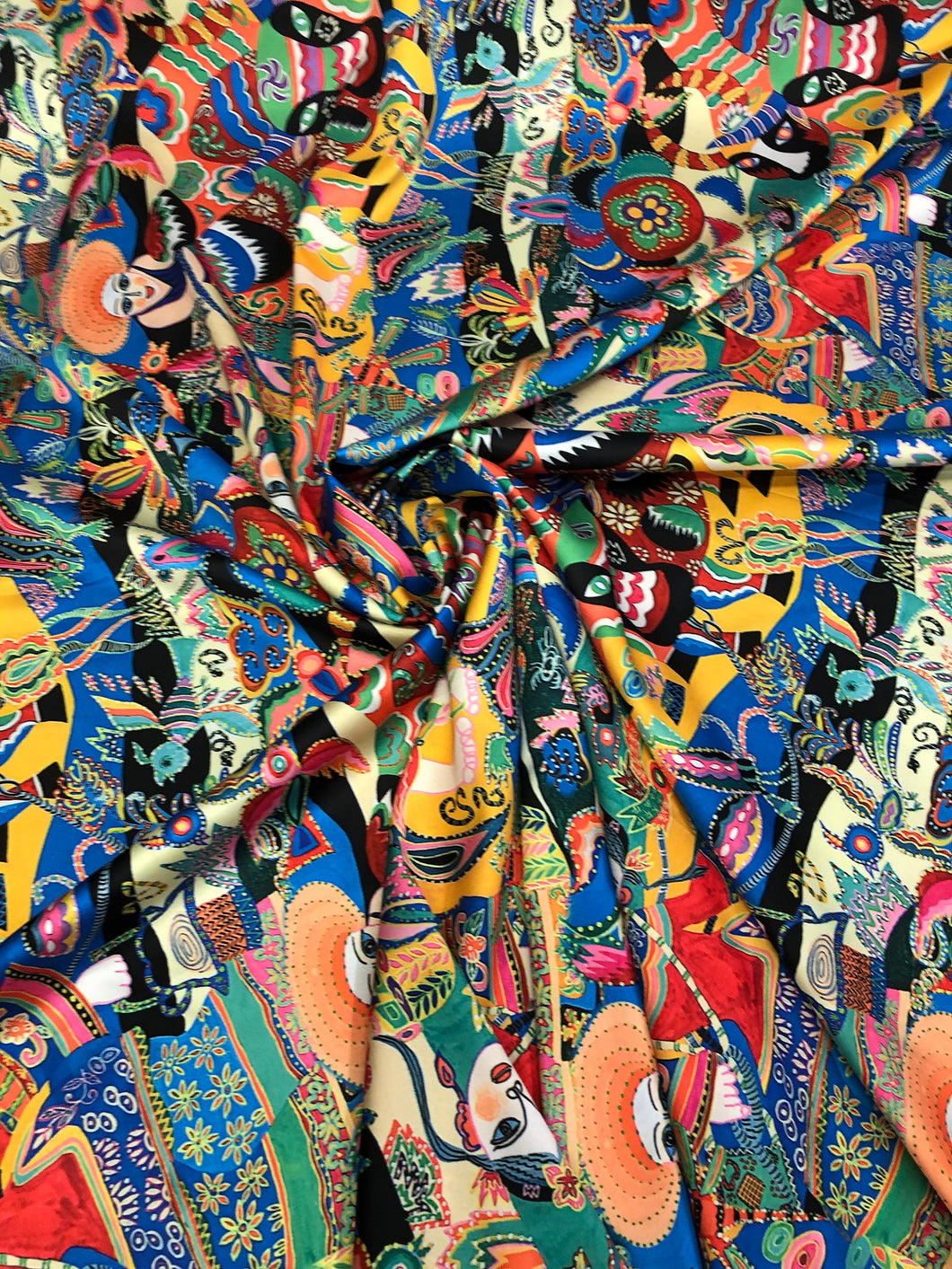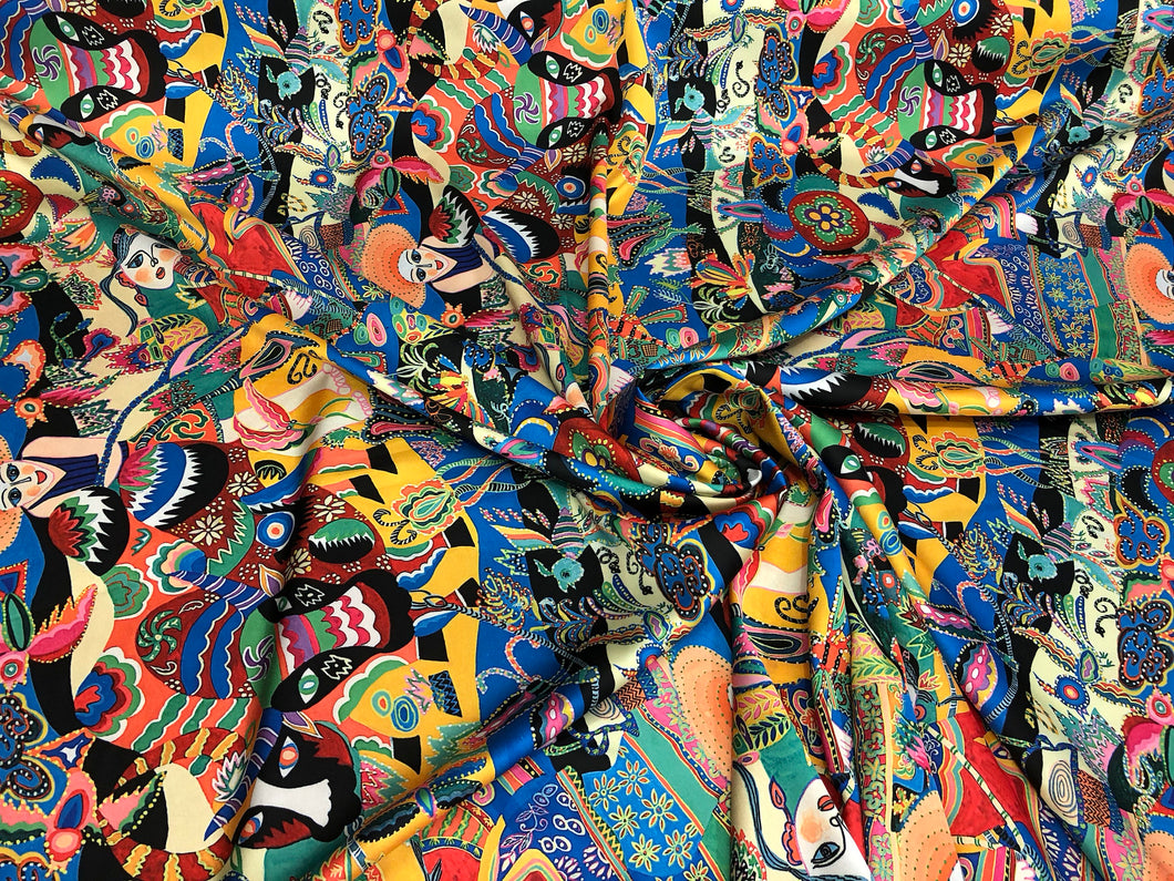 Satin charmeuse print 54" wide Beautiful bright colors Soft silky fabric sold by the yard