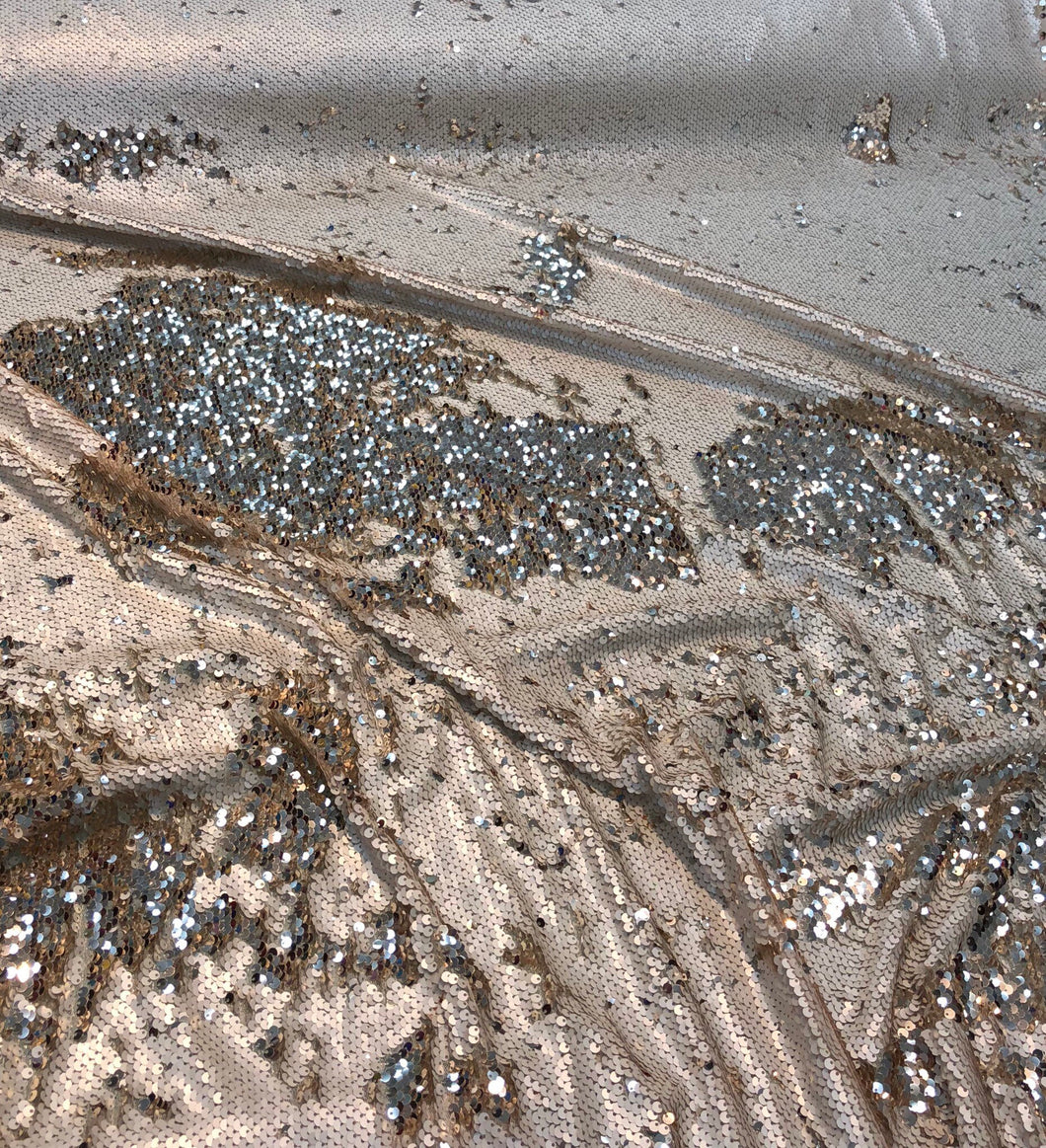 Sequence reversable gold with shinny silver mermaid sequence 54" wide Fabric sold by the yard