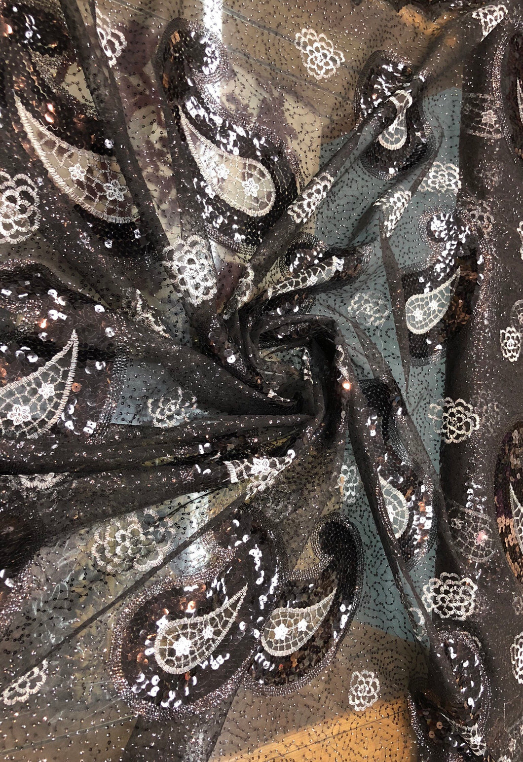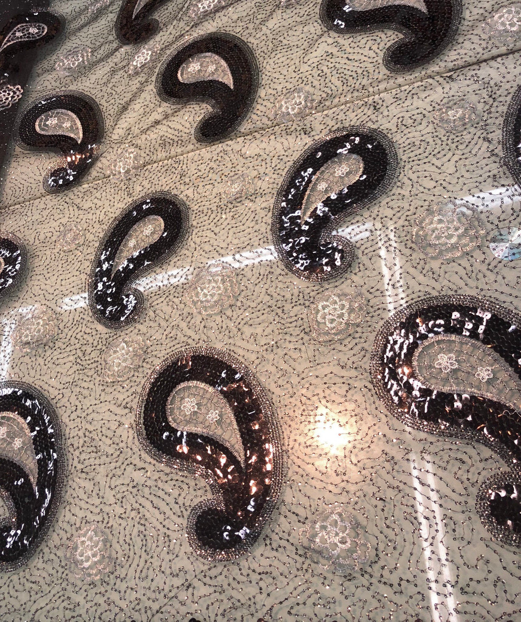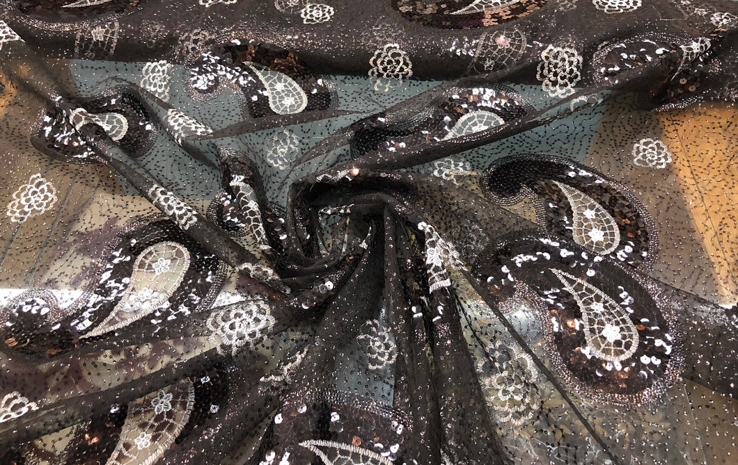 Sequins allover paisley design 54" wide Beautiful black on black paisley design sequins on net fabric sold by the yard