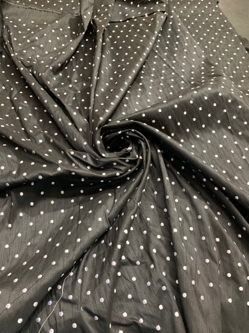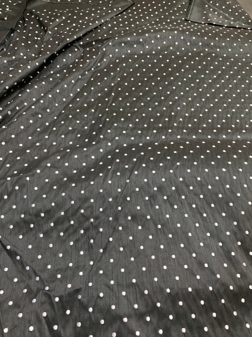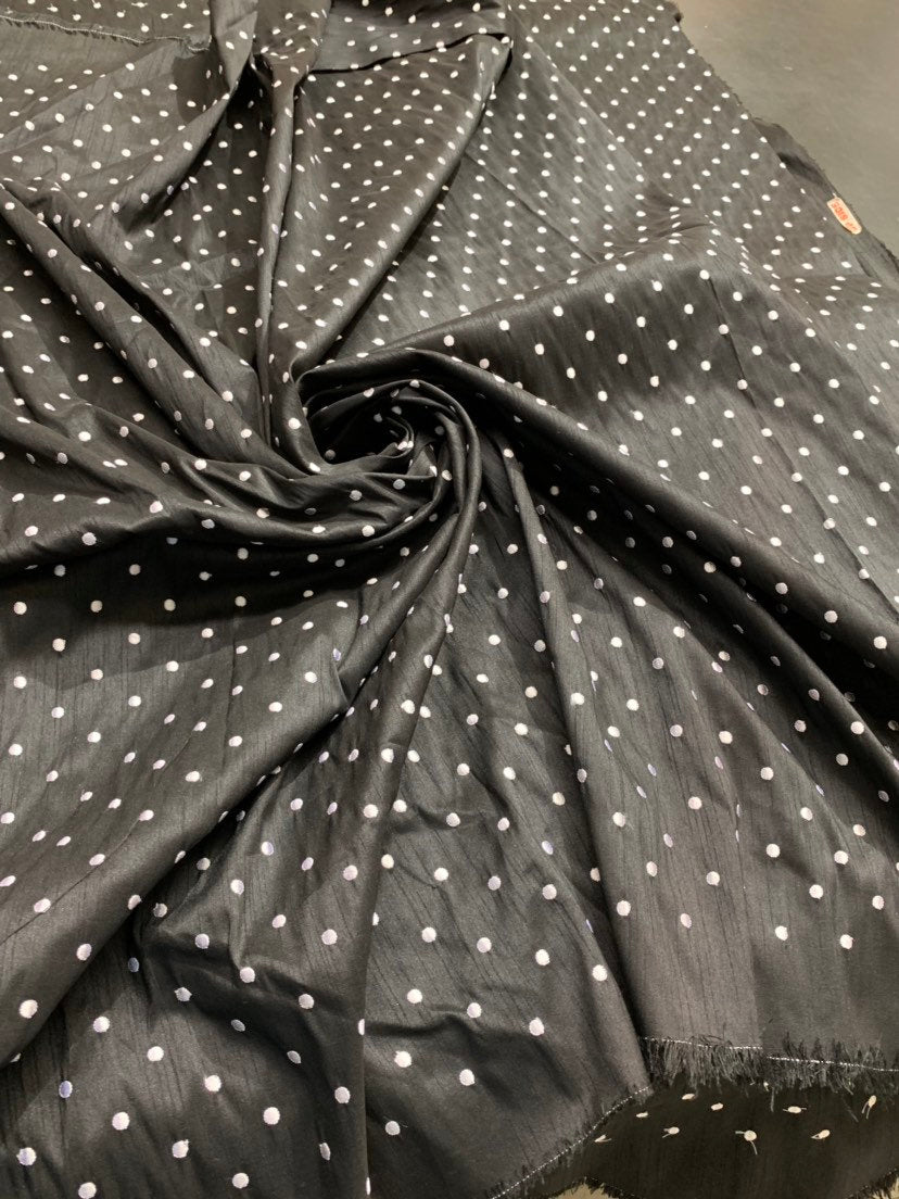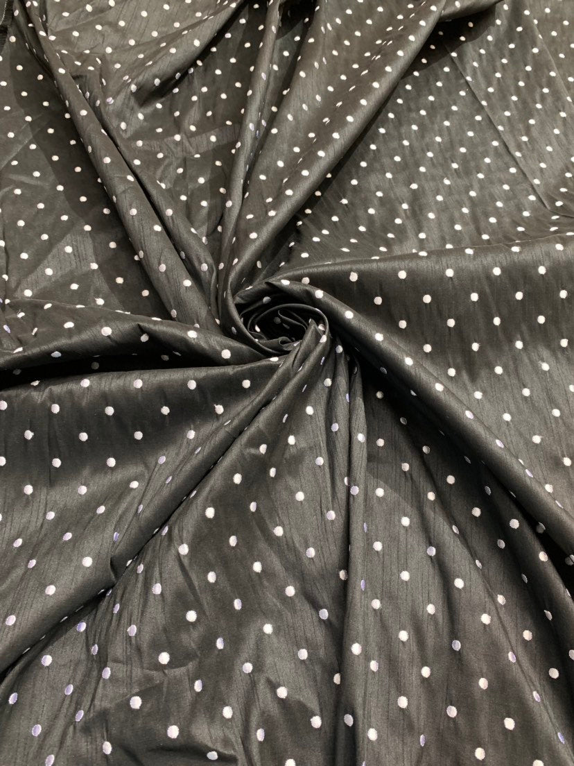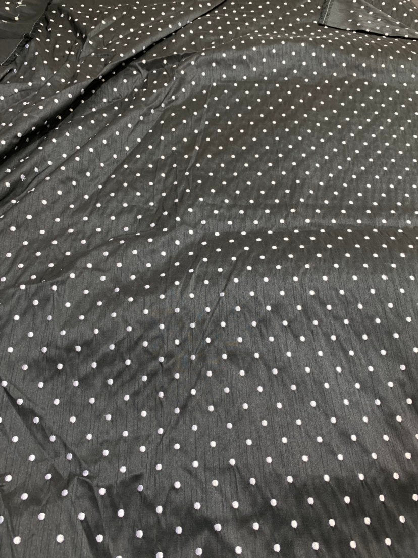Shantung embaroidery 54" wide Beautiful black shantung with white polka dots embroidered sokd by the yard