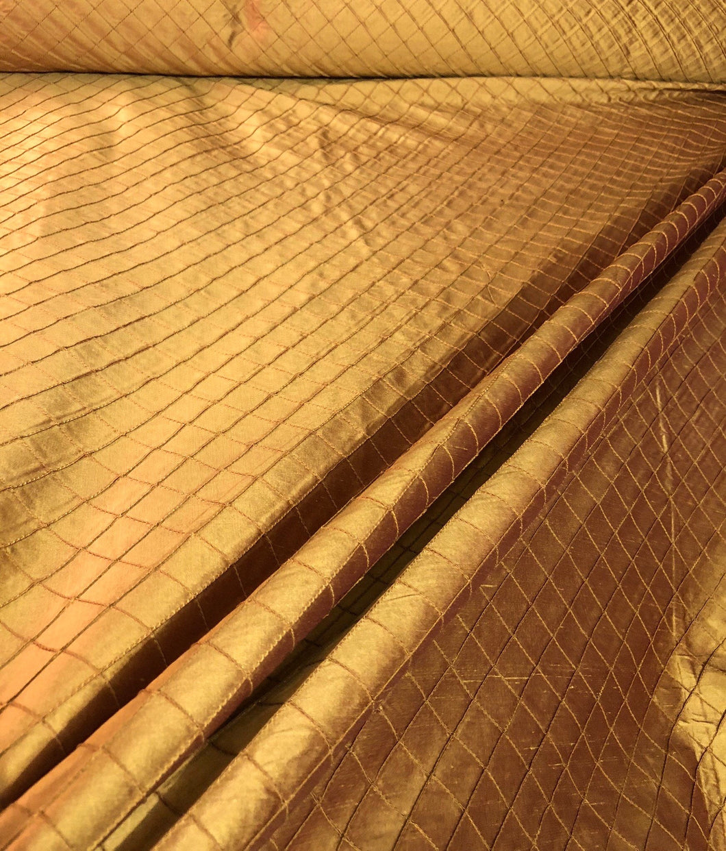 Silk dupion 52" wide Beautiful burnt orange diagonal pintick dupion fabric sold by the yard