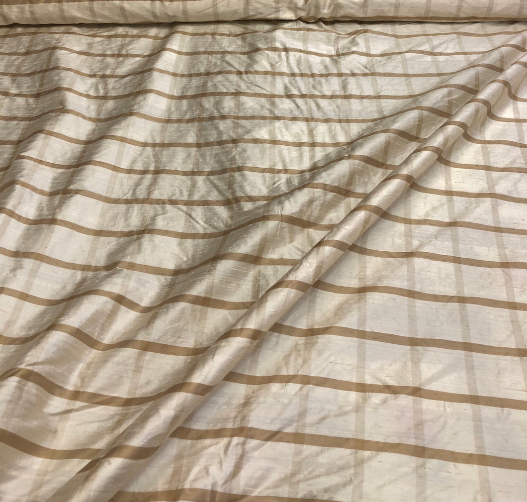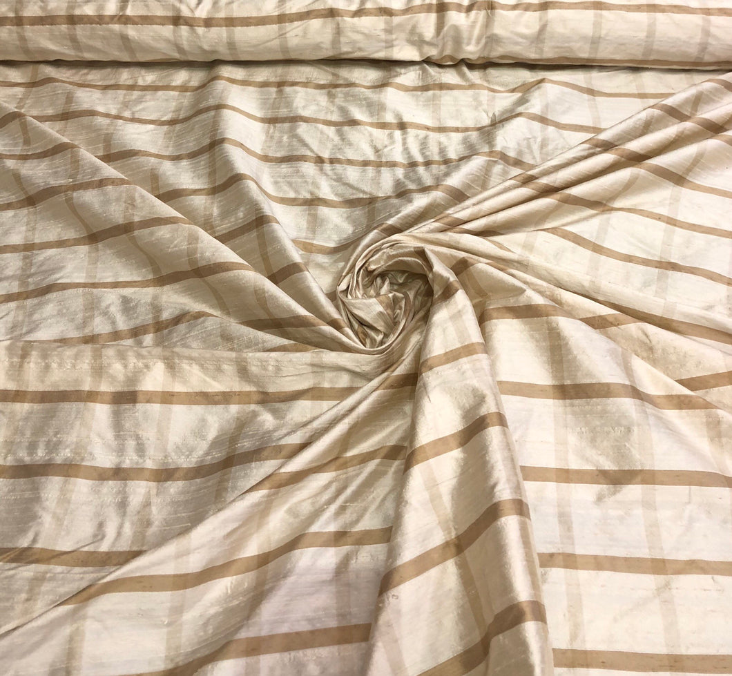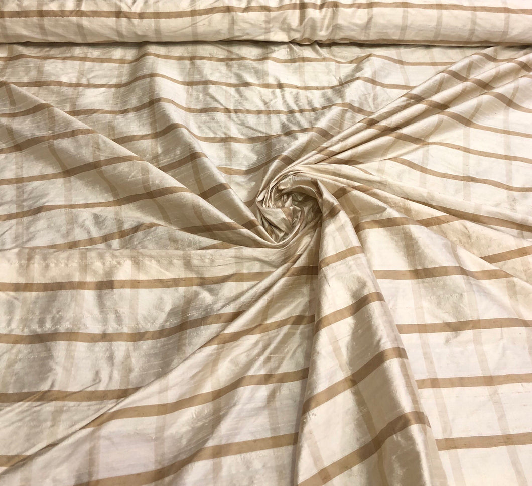 Silk dupion plaid 54" wide Beautiful beige tan plaid silk dupion fabric sold by the yard