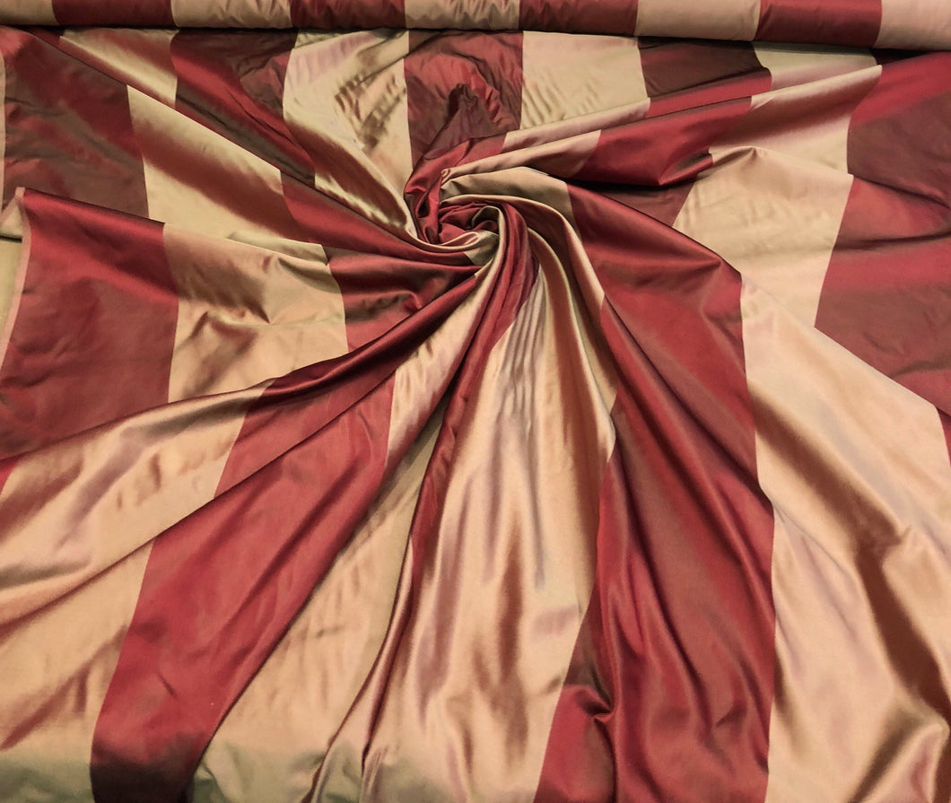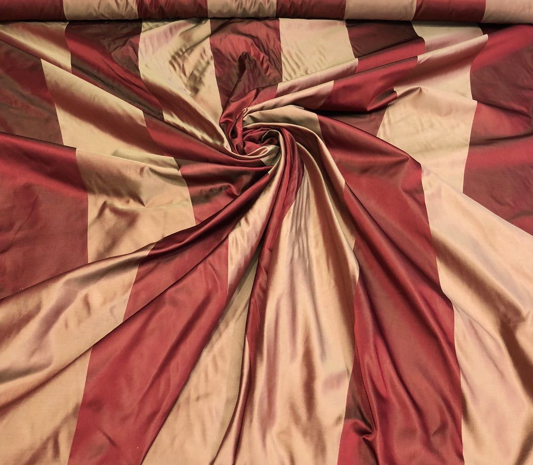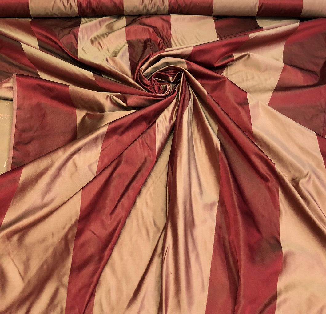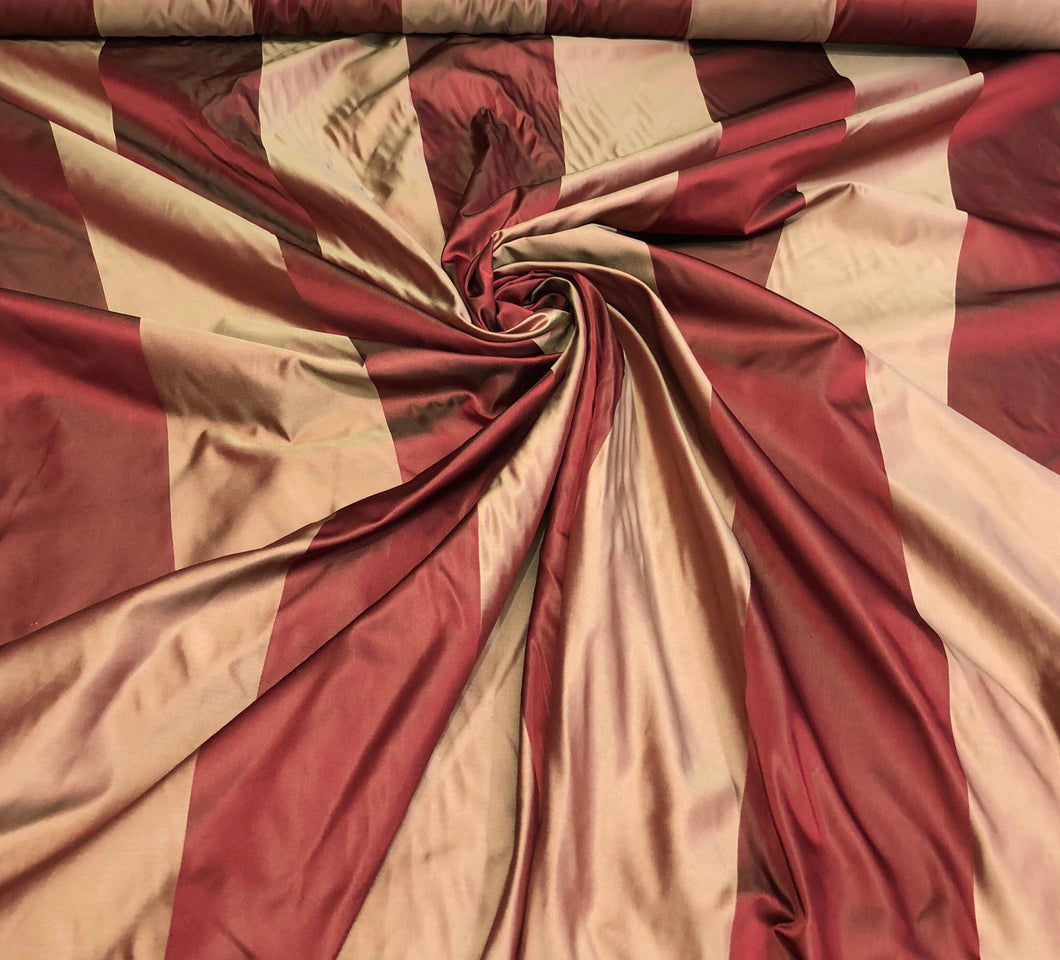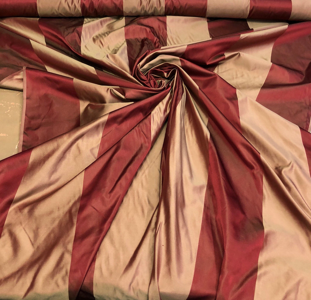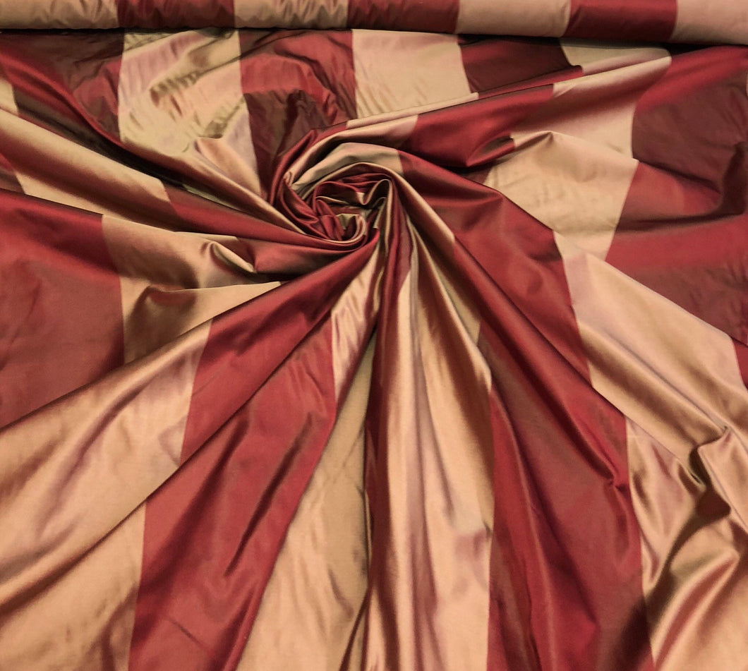 Silk satin taffeta 54" Beautiful wine gold silk satin taffeta stripe fabric sold by the yard