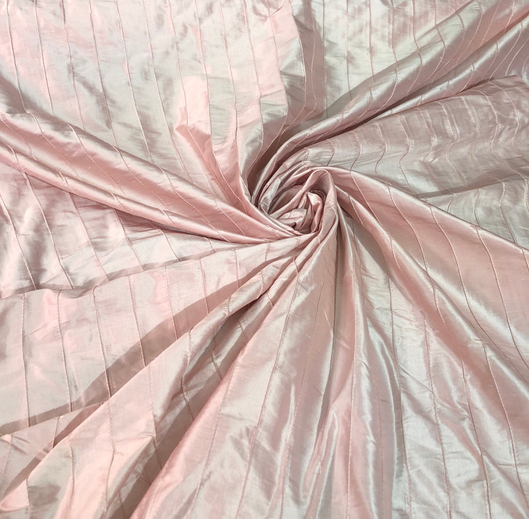 Silk shantung 52" wide    Beautiful baby pink stripe pintuck silk shantung fabric sold by the yard