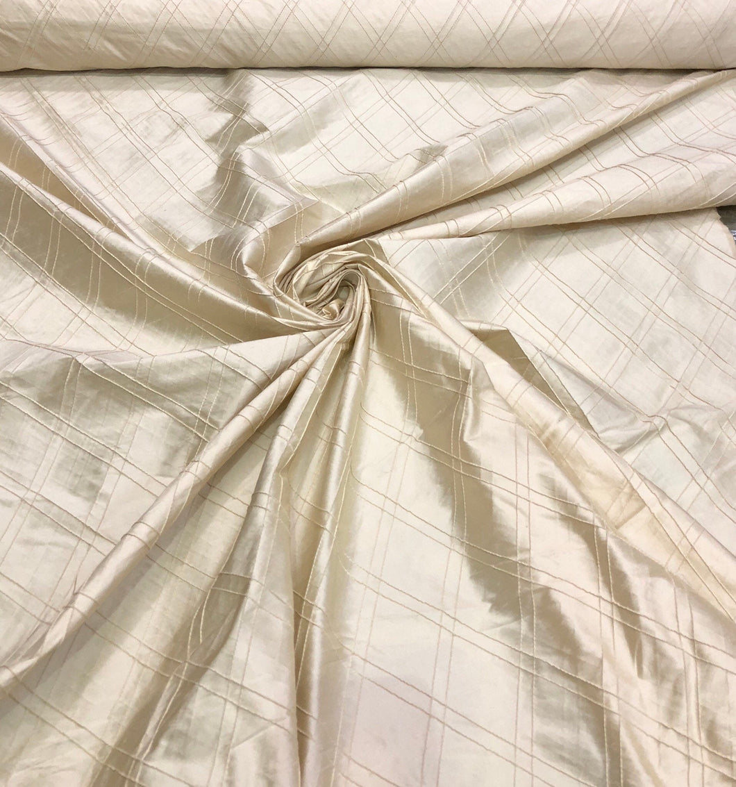 100% Silk Taffetta/Dupion stripe/plaids fabric by yard 52â wide. Can be used for Clothing and Interior Designing.