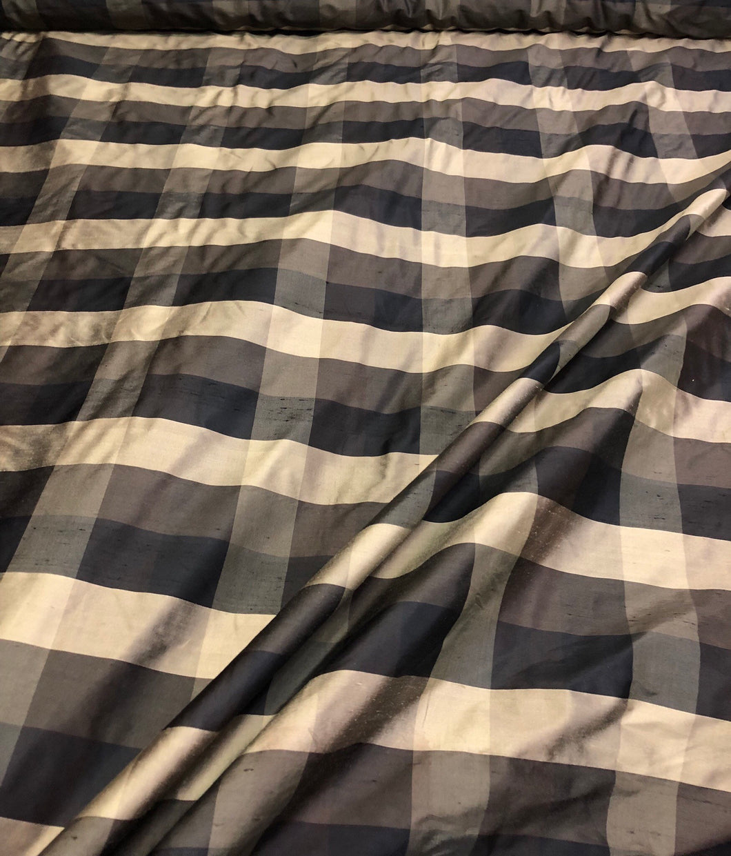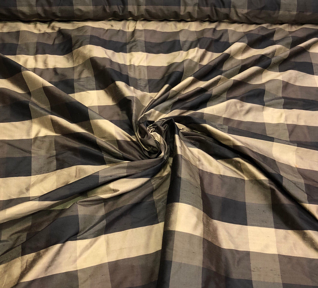 Silk shantung plaid 54" wide Beautiful black gold tan color silk shantung fabric sold by the yard