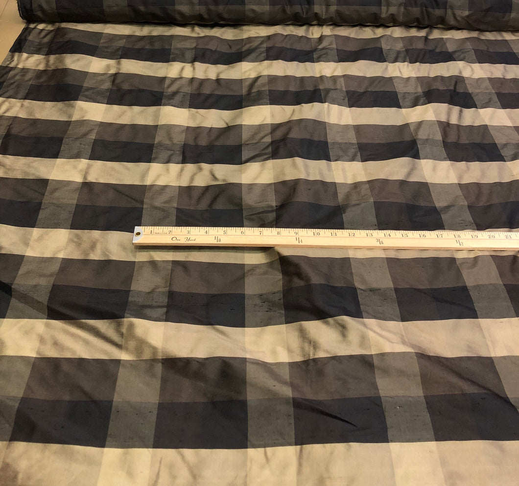 Silk shantung plaid 54" wide    Beautiful black gold tan color silk shantung fabric sold by the yard