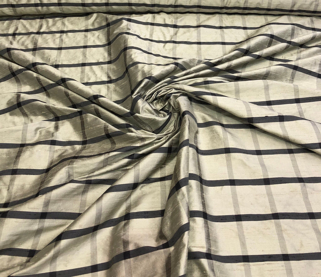100% Silk Taffetta/Dupion stripe. fabric by yard 54" wide. Can be used for Clothing and Interior Designing.