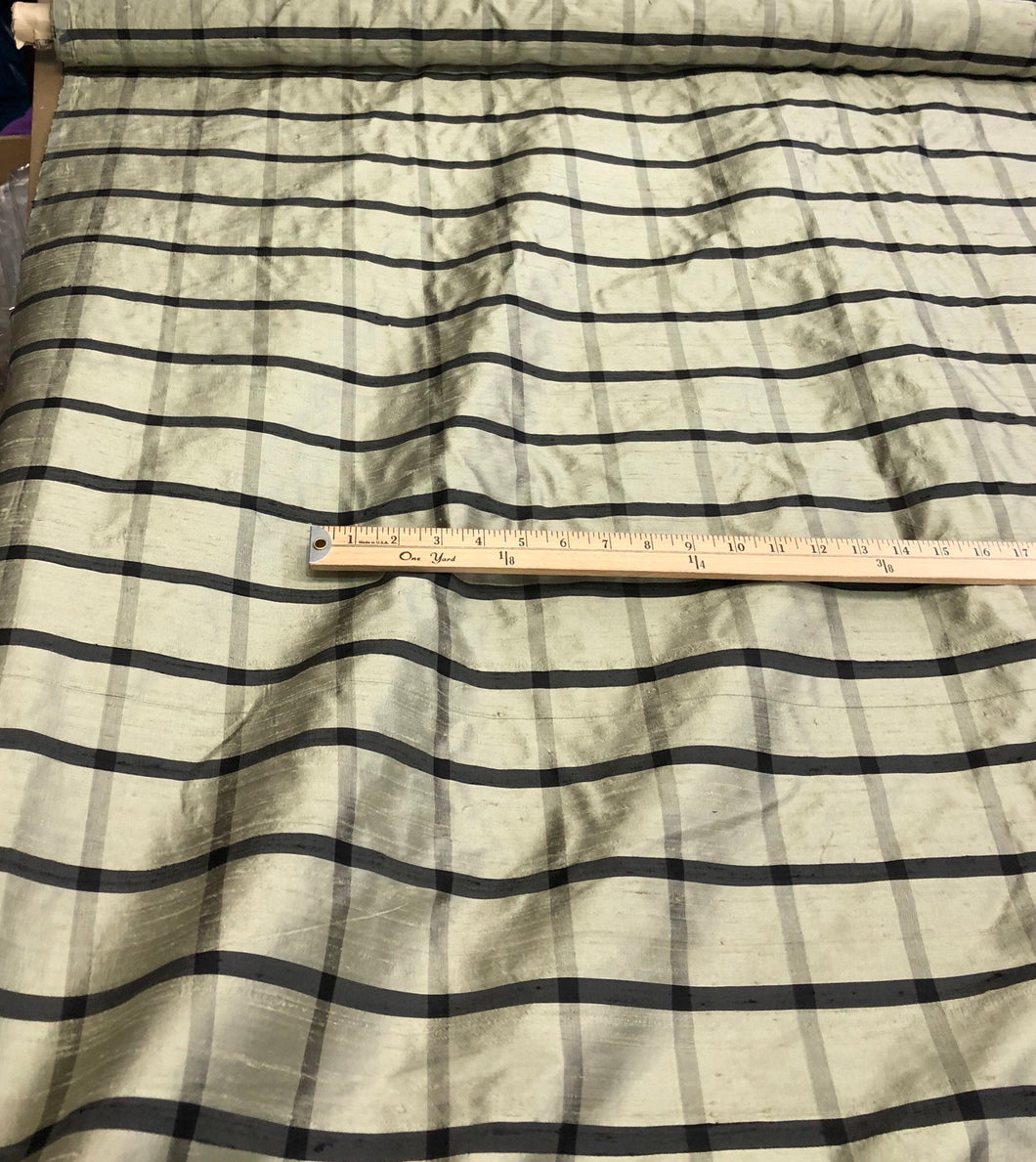 Silk shantung plaid 54" wide Beautiful save green black color silk shantung fabric sold by the yard