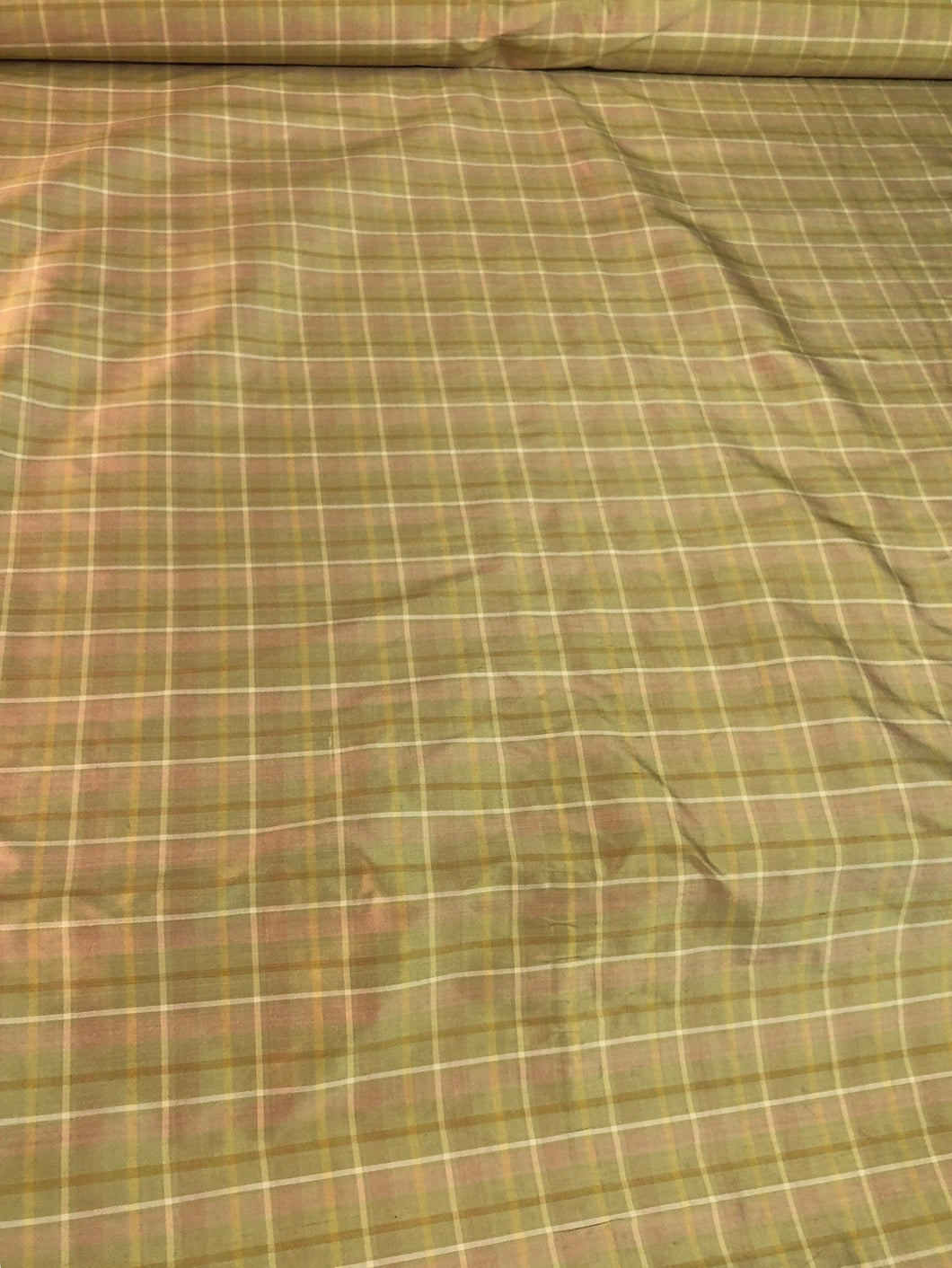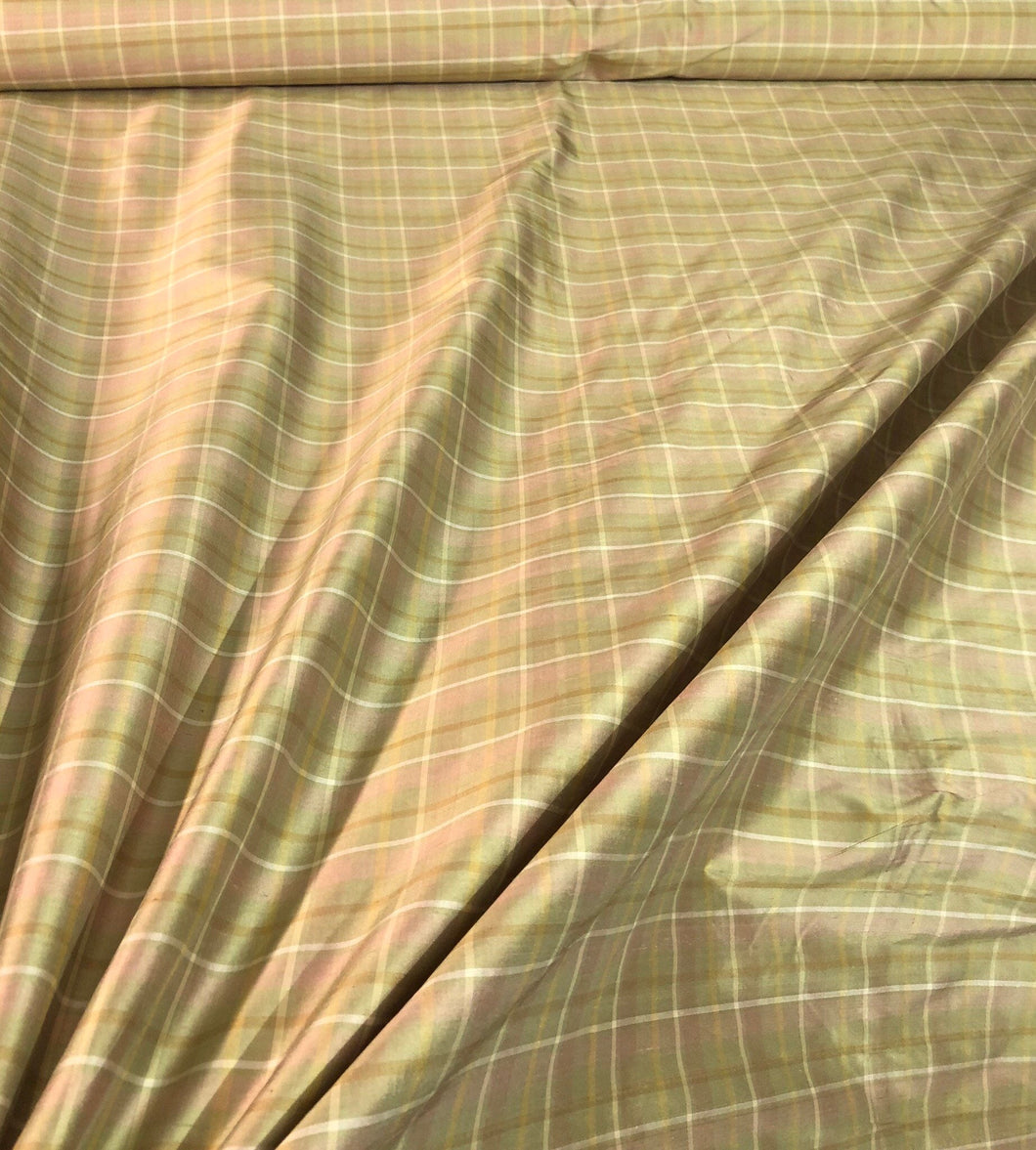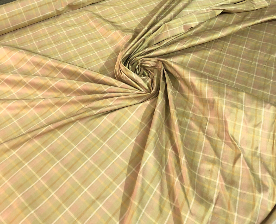 Silk shantung plaid 54" wide Beautiful tan pink shades Fabric sold by the yard