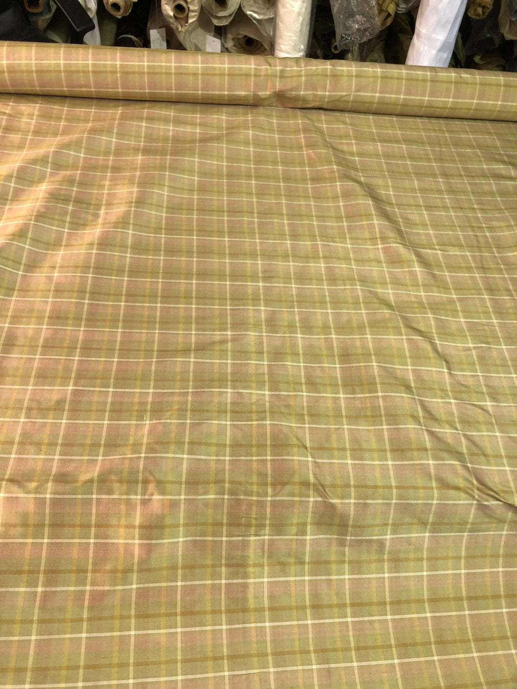 Silk shantung plaid 54" wide   Beautiful tan pink shades     Fabric sold by the yard