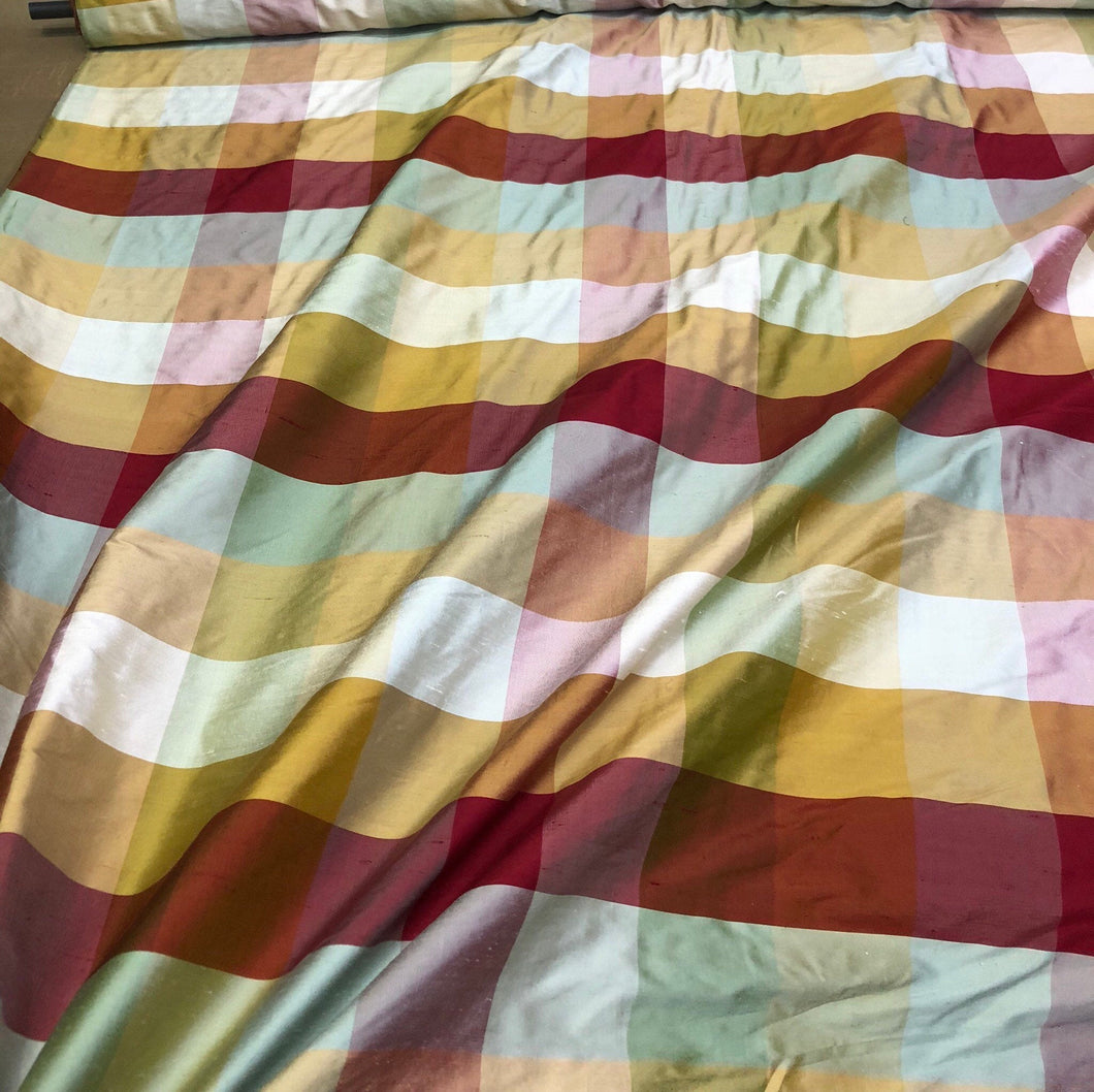 100% Silk Taffetta/Dupion plaid,stripe. fabric by yard 54" wide. Can be used for Clothing and Interior Designing.