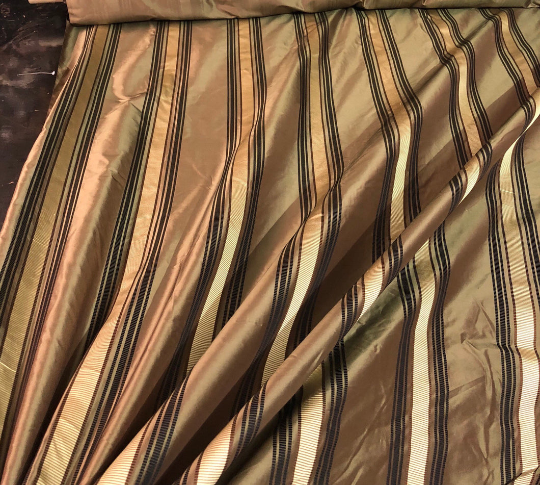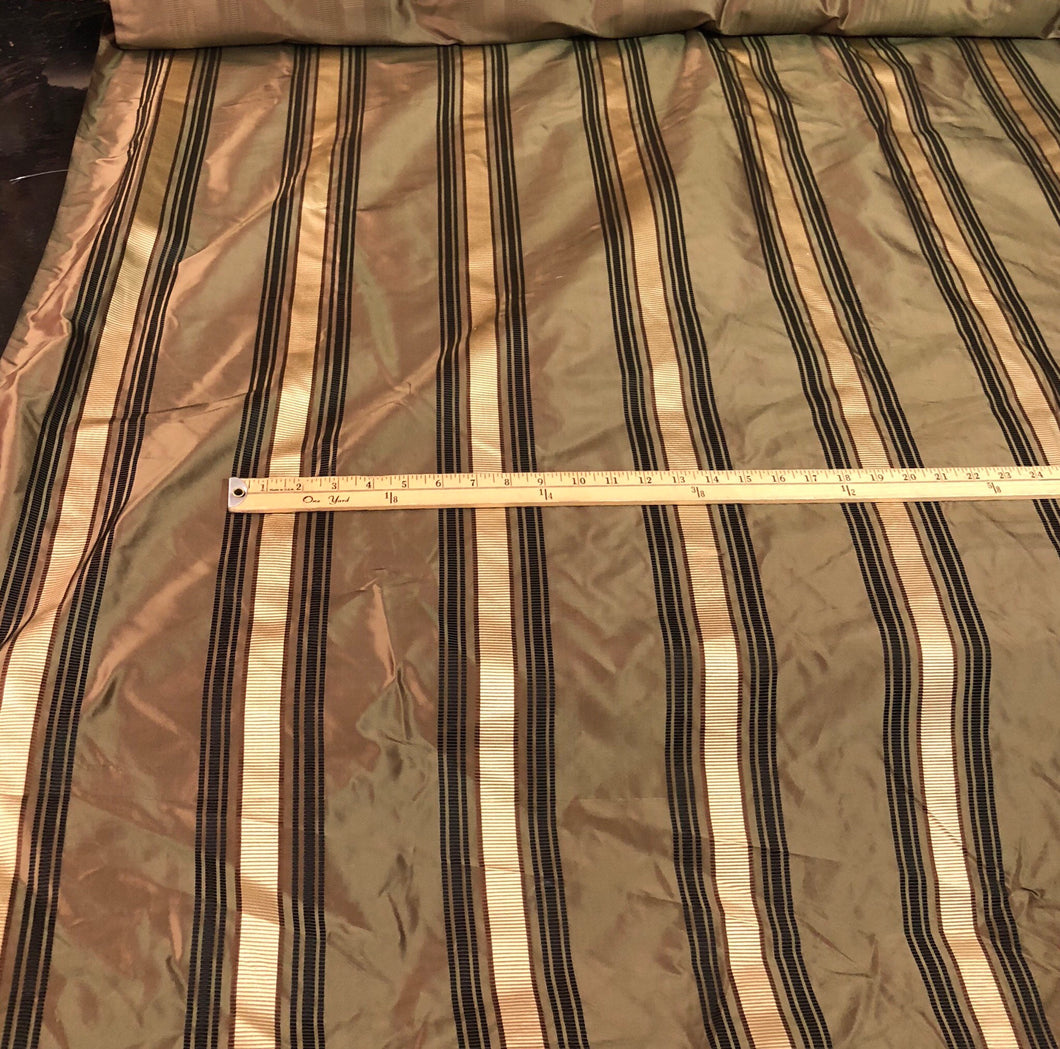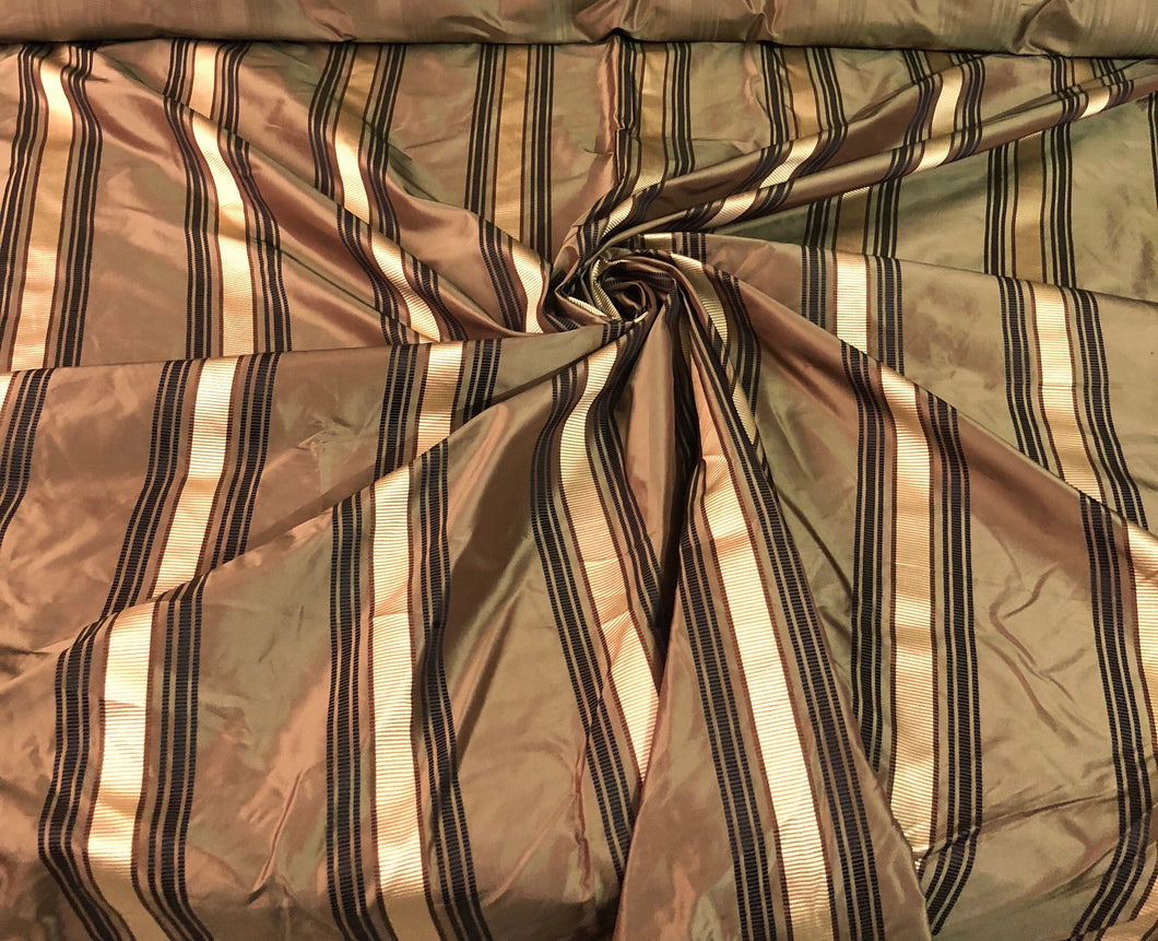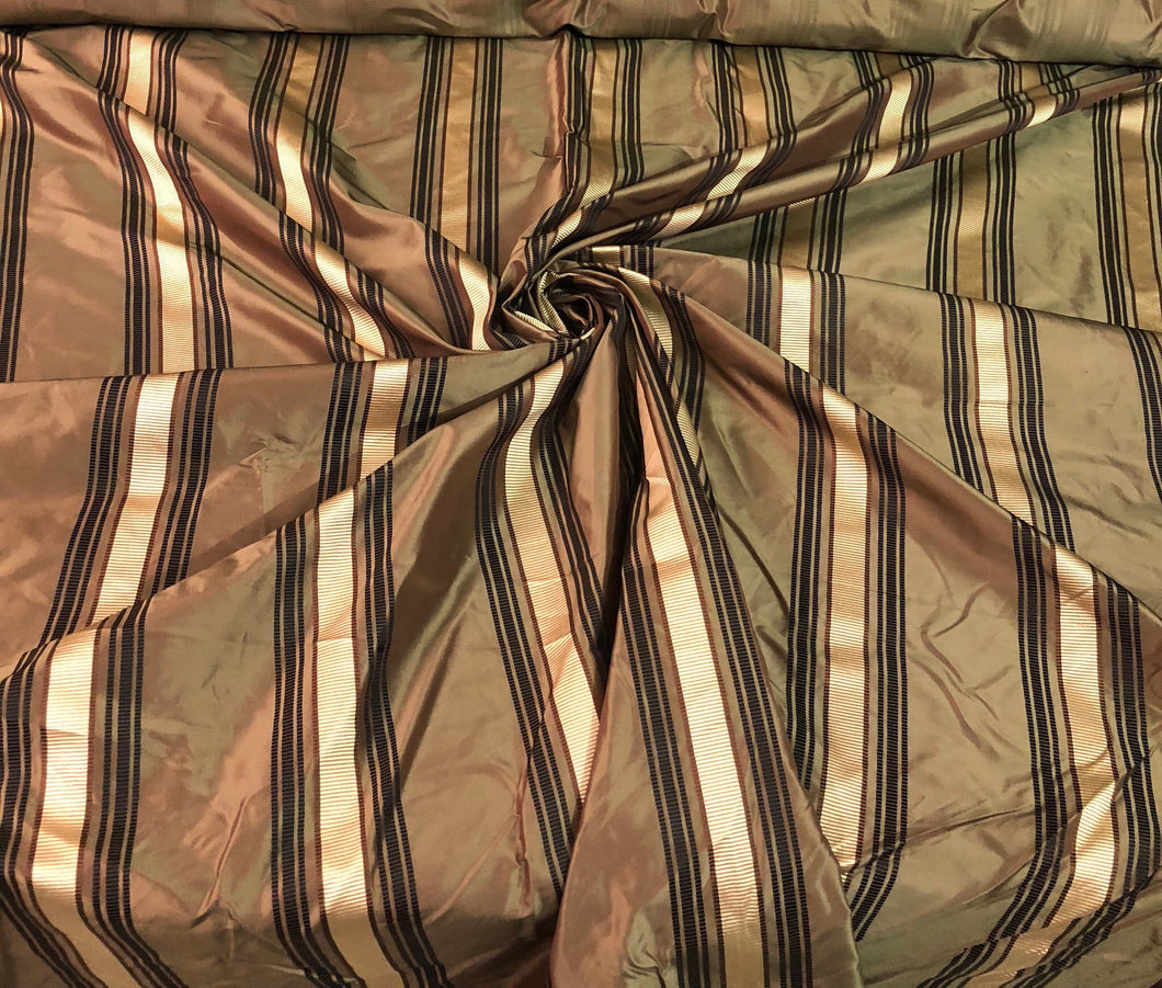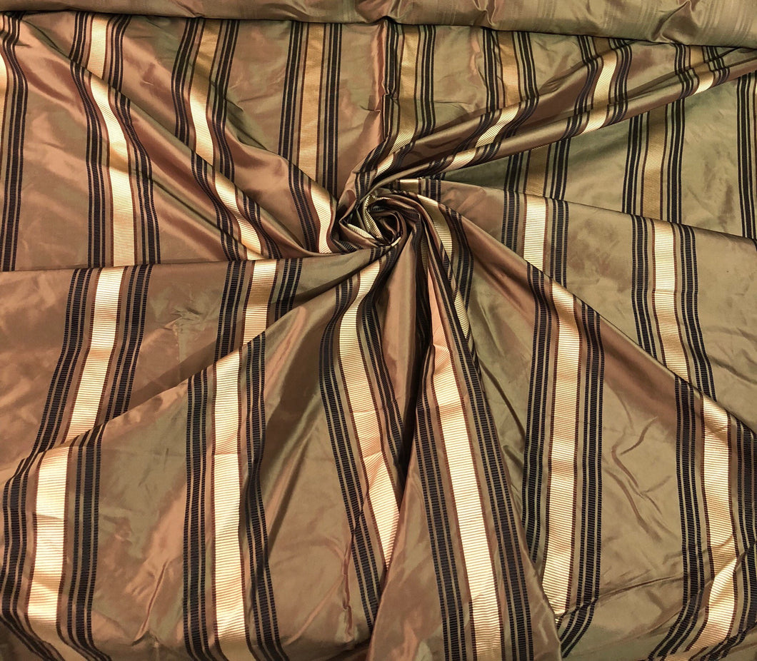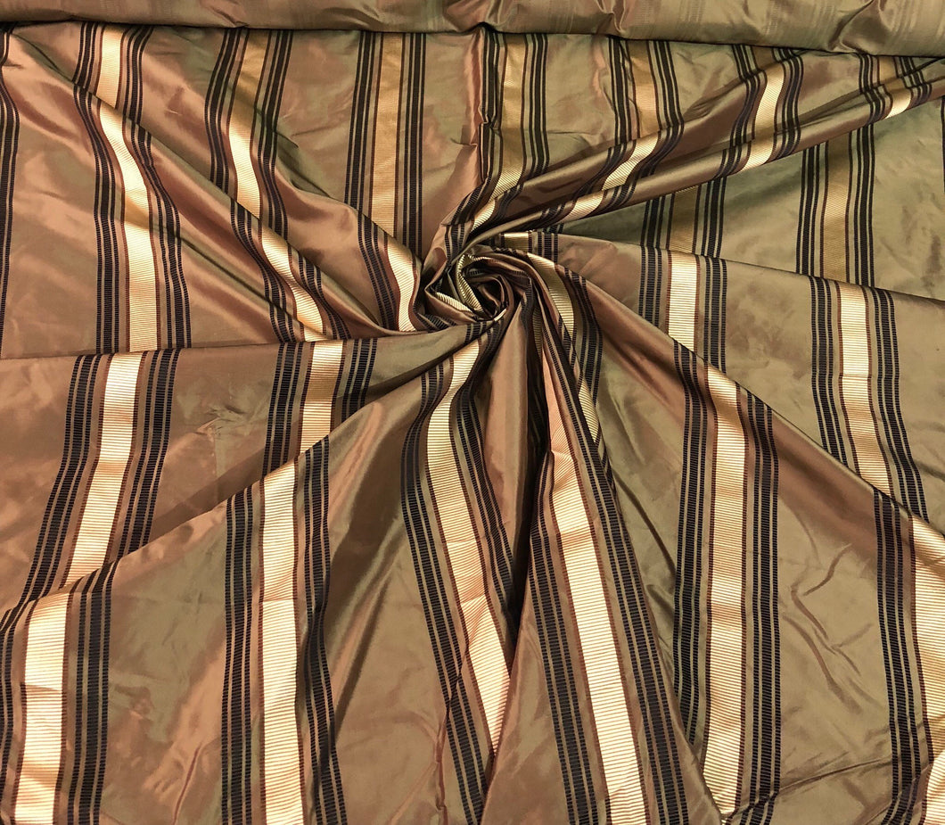 Silk taffeta 54" wide Beautiful bronze with black and gold ribbing stripe silk taffeta fabric sold by the yard
