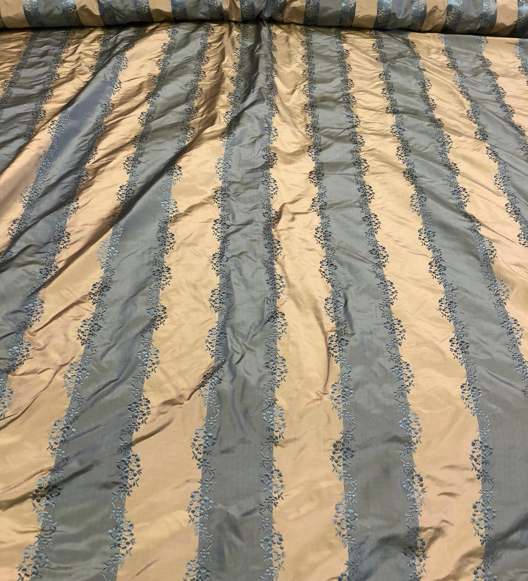 Silk taffeta 54" wide Beautiful teal blue with gold jaquard stripe silk taffeta fabric sold by the yard