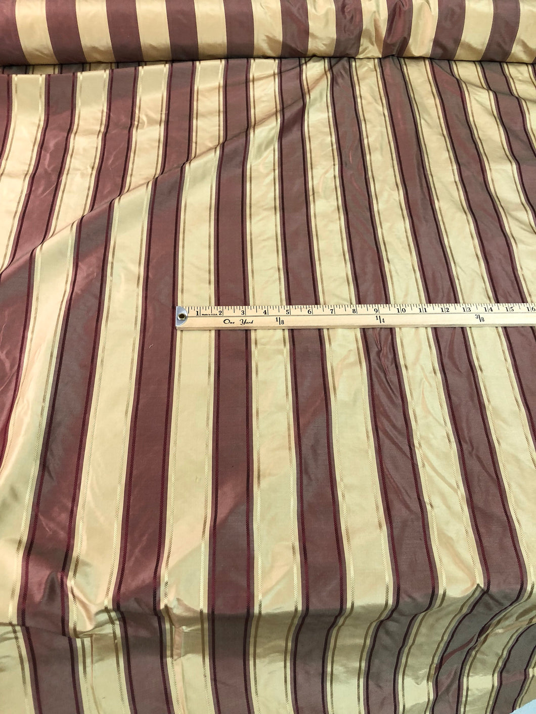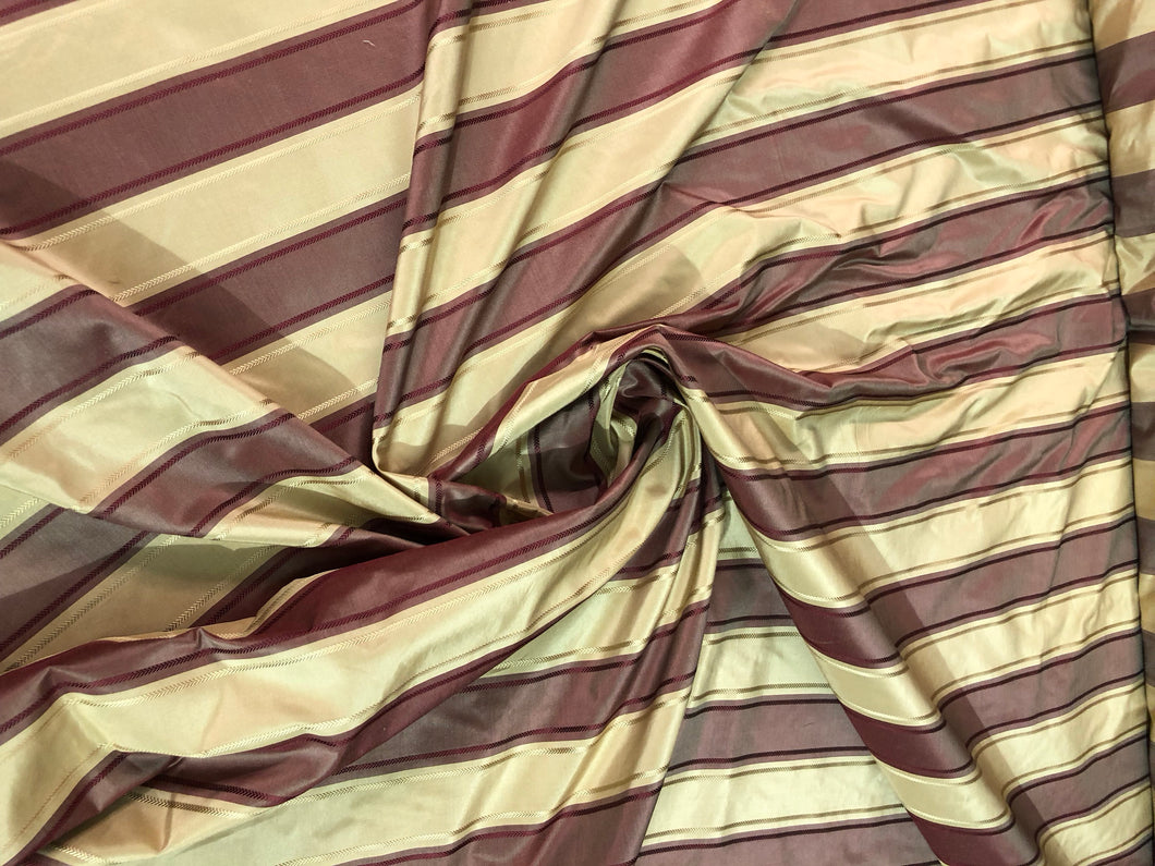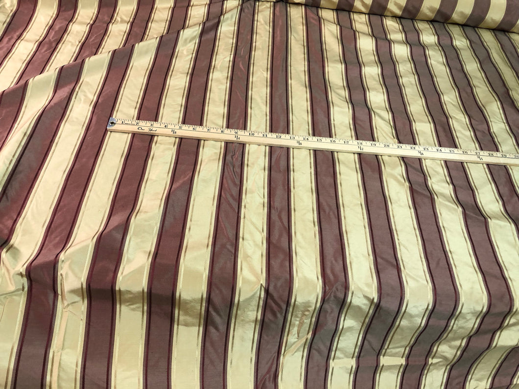 Silk taffeta jaquard stripe 54" wide Beautiful gold & wine color